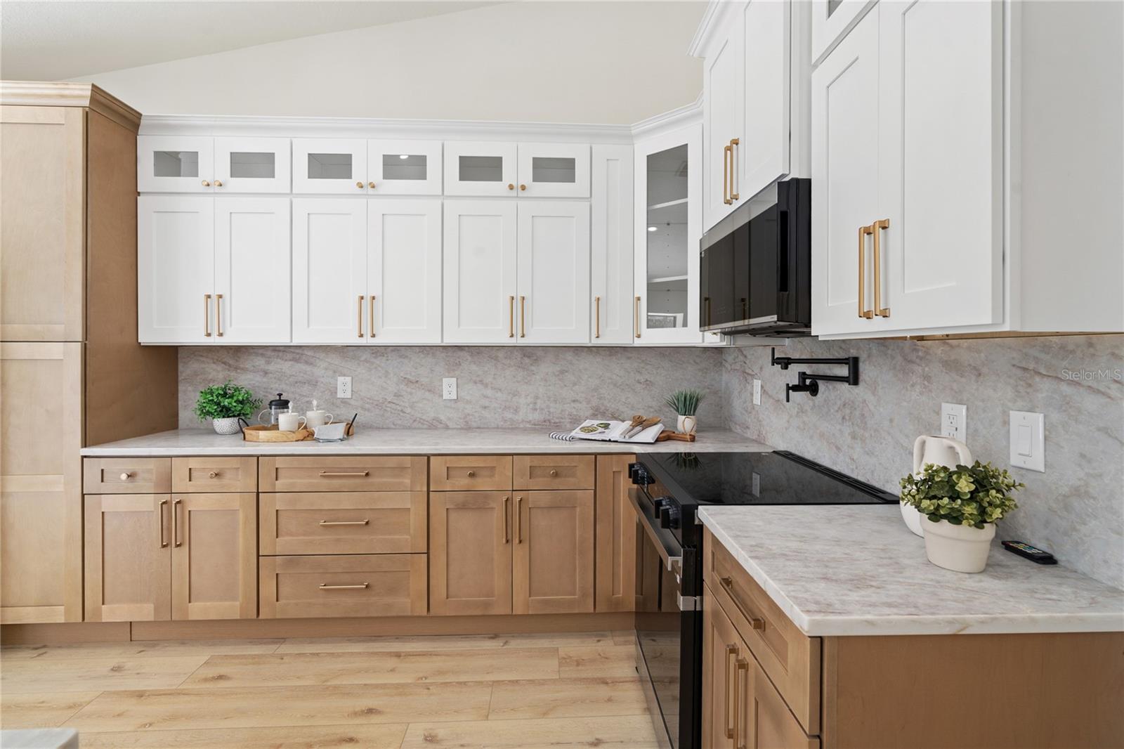 Arrive to a truly one-of-a-kind residence situated on a spacious half-acre lot tucked away in a quiet cul-de-sac within the highly desirable Village of Woodland Hills. This beautifully updated 3-bedroom, 2-bath POOL home offers exceptional comfort, style, and Florida living at its finest. The inviting light and bright interior features a seamless flow throughout the main living areas, offering multiple spaces thoughtfully designed for both everyday living and effortless entertaining. The eat-in kitchen is a standout, showcasing rich wood cabinetry, stunning Taj Mahal quartz countertops that extend into a full-height backsplash, stainless steel appliances, and a convenient breakfast bar. A formal living room highlights a striking feature wall, while the family room impresses with vaulted ceilings and custom built-in cabinetry, creating an ideal space for gatherings. The dining room overlooks the sparkling pool and lush backyard with private preserve views — the perfect backdrop for memorable meals and entertaining. The primary suite is a true retreat, featuring vaulted ceilings, sliding glass doors leading to the pool, a spacious walk-in closet, and a well-appointed ensuite bath complete with quartz countertops, dual sinks, magazine-worthy tilework from floor to ceiling, and an oversized soaking tub designed for relaxation. Two additional bedrooms provide flexibility, including one with direct pool access. The guest bathroom has been tastefully updated with a large quartz vanity and a beautifully modernized shower featuring timeless finishes, truly a work of art with high end craftmanship. Step outside to the expansive lanai, offering a generous covered area and a sparkling pool overlooking the private, naturally landscaped preserve — creating the ultimate Florida outdoor living experience. The 2-car garage includes a utility sink and pull-down attic access. Notable updates include a brand-NEW Roof with Owens Corning shingles (March 2026), Trane A/C (2018), and water heater (July 2023). With no rear neighbors, this home offers peaceful privacy while still being close to everything — giving you city convenience with a country feel. Residents of Woodland Hills enjoy tree-lined sidewalks, a community pool, tennis courts, scenic nature preserves, and easy access to top-rated schools, parks, restaurants, shopping, beaches, and beautiful Lake Tarpon just minutes away. This friendly and picturesque community is one of Palm Harbor’s most desirable places to call home. Schedule your tour today to see for yourself.