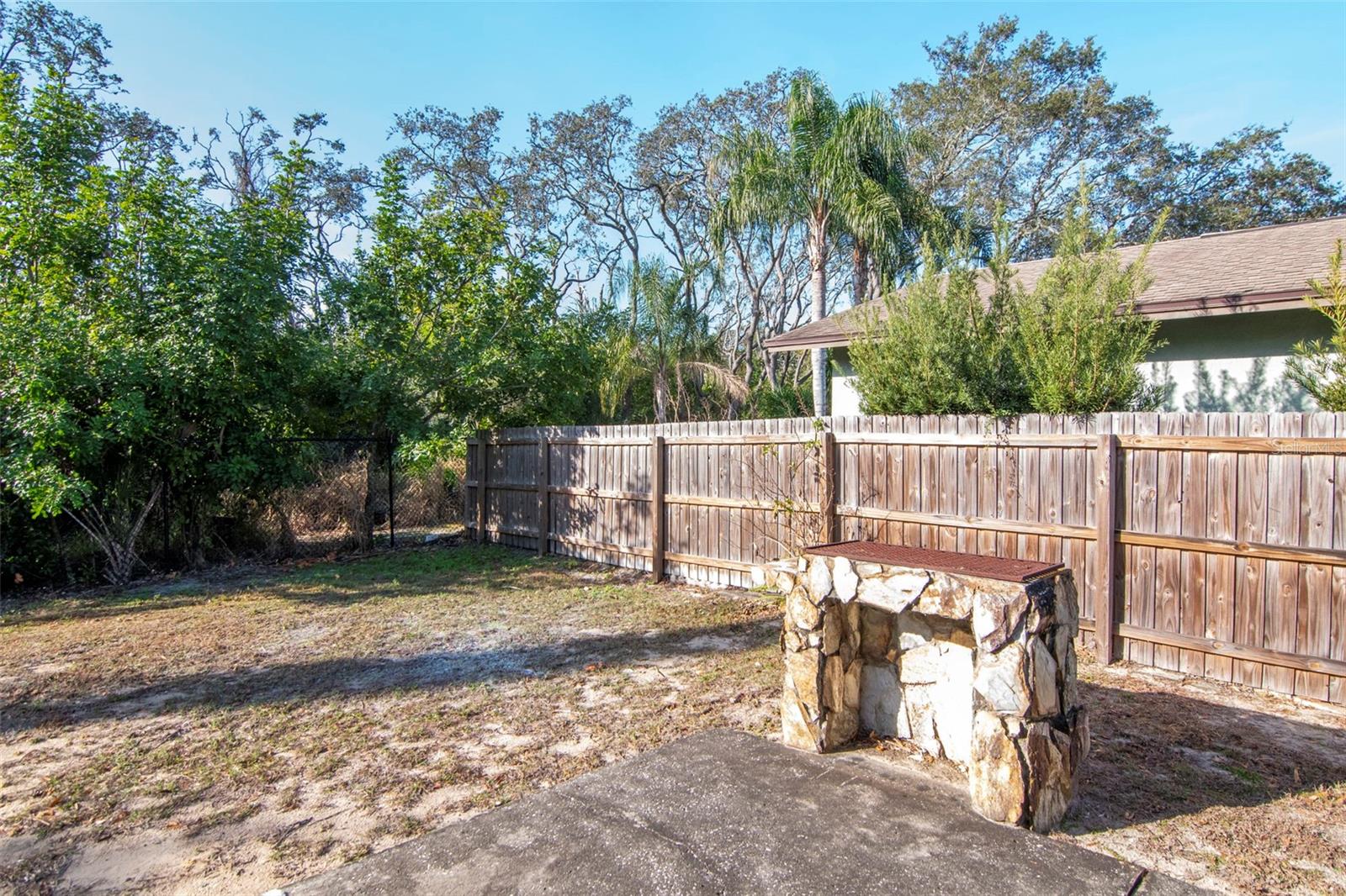 Located in the desirable Baywood Village community of Palm Harbor, this 2-bedroom, 2-bath home with a 1-car garage offers great potential in a sought-after neighborhood known for its waterfront homes and access to the Intracoastal Waterway. Built in 1979, the home has been well maintained and features important updates already completed, including a new roof (2023), water heater (2023), and fresh interior paint. The AC system is approximately 10 years old. While much of the interior remains original and ready for cosmetic updating, the home has been thoughtfully priced to reflect the opportunity to modernize and build value. The efficient 1,044 square foot layout includes a comfortable living space with a wood-burning fireplace, adding warmth and character. A washer and dryer are included and conveniently located in the garage. One of the standout features of this property is the serene backyard setting. The home backs up to county-owned park land (public park/forest/recreation area), providing privacy, natural views, and no rear neighbors. Additionally, the home did not experience flooding during the 2024 storms, offering added peace of mind. Surrounded by higher-priced homes — many on the water — this property presents an excellent opportunity to enter Baywood Village at an attractive price point and make it your own. Ideal for a primary residence, seasonal home, or investment.
