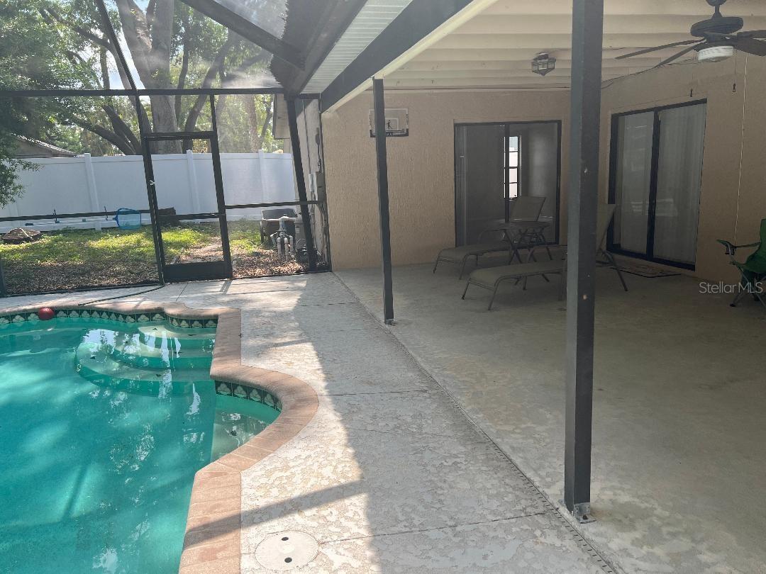 Welcome to this stunning home nestled in a centrally located neighborhood just minutes from top-rated schools and some of Florida's most sought-after destinations. Enjoy easy access to Honeymoon Island State Park, world-famous Clearwater Beach, and the charming Tarpon Springs Sponge Docks. Commuting is a breeze with quick access to Tampa International Airport or downtown Tampa, plus championship golfing, and a wide variety of dining and entertainment just down the road. As you step inside you will discover lofty vaulted ceilings, abundant natural light from skylights, and a beautiful cedar ceiling that adds warmth and character to the chef-inspired kitchen. Features include solid wood maple cabinetry, striking Black Galaxy granite countertops, eating space, and a convenient separate laundry room right off the kitchen. Designed for both comfort and entertaining, the spacious living areas open from the kitchen, living room and primary bedroom to an expansive covered porch area, and your private screened pool and lanai. You will enjoy spending time outside and creating memories with friends and family. Roof replaced 2025, new pool pump 2025, newer A/C.