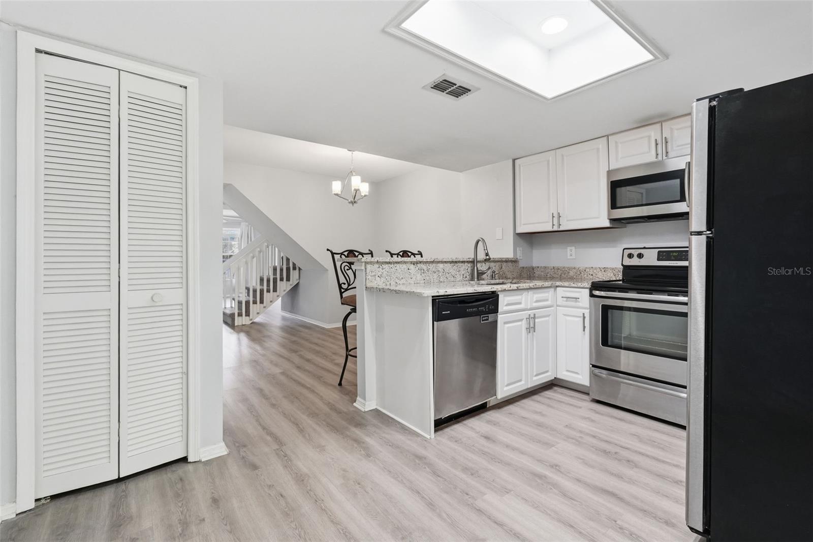 Welcome to this beautifully updated two-bedroom, two-and-a-half-bathroom townhome in the Fox Chase community in the heart of Palm Harbor. With a 2019 roof (maintained by the HOA) and tasteful upgrades throughout, this home offers low-maintenance living in a highly desirable location. Step inside to find wood-look laminate flooring and a spacious living room featuring a ceiling fan and comfortable layout for everyday living or entertaining. The updated kitchen features granite countertops, stainless steel appliances, a breakfast bar for casual dining, and ample cabinet space. A convenient half bath is located downstairs, along with an included washer and dryer for added ease. Sliding doors lead to a screened-in back patio overlooking peaceful trees - perfect for enjoying your morning coffee or relaxing in the evenings. Upstairs, both bedrooms offer privacy and comfort. The primary suite features a ceiling fan and a private en-suite bathroom with an updated vanity, mirror, and light fixture. The second bedroom is also generously sized with a ceiling fan and has access to a full bathroom with a walk-in shower and updated vanity and mirror. Additional highlights include an assigned parking space and access to a community pool. Conveniently located near zoned schools, numerous dining and shopping options, golf courses, and parks, this townhome combines comfort, updates, and location for easy Florida living. Schedule your tour today!