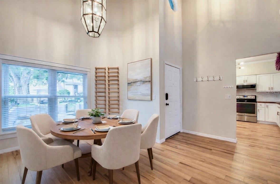 Price reduced..Welcome to this charming Steeplechase townhome featuring a private paved and gated courtyard that creates the perfect outdoor space for relaxing or entertaining guests.Inside, a stunning staircase greets you at the entrance, overlooking the dining room with cathedral ceilings and a spacious living room. A convenient half bath is located on the main level for guests.The updated kitchen features white cabinetry, solid walnut butcher block countertops, a pantry, and a prep island with additional storage. Stainless steel appliances and contemporary lighting complete the modern feel.The primary suite is located on the main level and features large windows along with sliding glass doors that open to a covered Florida room with classic jalousie windows; an ideal sunny retreat. Upstairs you'll find a loft-style family room overlooking the dining area, along with two additional bedrooms and a beautifully updated bathroom featuring new tile, cabinetry, and a tub/shower combination. Major updates include a brand new roof and hurricane impact windows installed in 2024, providing peace of mind, improved energy efficiency, and storm protection. Conveniently located near shopping, banking, restaurants, and highly desirable public schools, this home offers comfortable living in a fantastic location.The community also features a beautiful secluded swimming pool, tennis, and pickleball courts, with low HOA fees of just $240 per month."