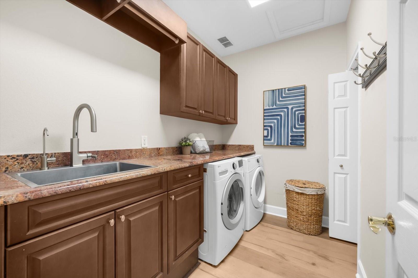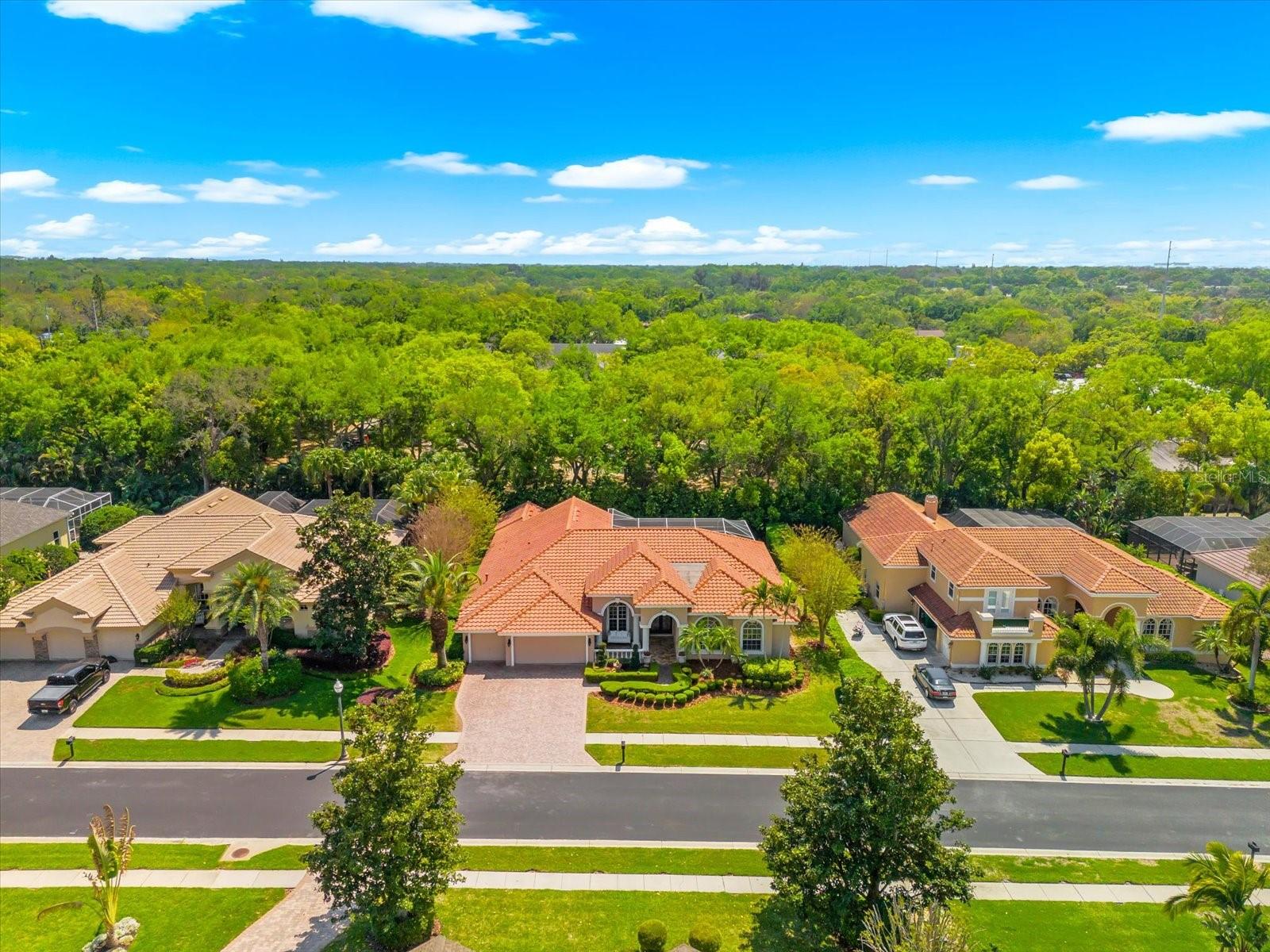 Welcome to 1560 Canopy Oaks Boulevard, an exceptional single-story Mediterranean-inspired estate crafted by acclaimed builder Marc Maconi, featuring architectural elegance, luxury finishes, and functional design. Located within the gated Manning Oaks community, this nearly one-third-acre property presents a rare opportunity to own a home where every detail has been thoughtfully curated for comfort and quality. The north-facing façade showcases a tile roof, block construction, and maintained tropical landscaping. Mature greenery and manicured lawns frame the home’s Mediterranean silhouette, creating a welcoming arrival while maintaining privacy. Underground utilities keep the streetscape unobstructed, and the three-car attached garage provides space for vehicles and storage. Step through the double entry doors into over 3,340 square feet of heated living space, where cathedral and vaulted ceilings, expansive windows, and an open floorplan create a light-filled environment. The interior combines seem less wood look luxury vinyl plank flooring throughout. Architectural millwork, including crown molding, archways, and trim, reinforces the home’s craftsmanship. The kitchen is outfitted with solid wood cabinetry, a built-in convection oven, gas cooktop, stainless appliances, trash compactor, and wine refrigerator. A high bar is perfect for afternoon snacks or meals. A whole-house reverse osmosis system supports water quality throughout. The kitchen opens to the family room with a masonry gas fireplace, while formal living and dining spaces provide flexibility for everyday use or entertaining. The main-floor primary suite features cathedral ceilings, dual walk-in closets, and access to the screened lanai and covered patio. The en-suite bath is designed for daily comfort. Four additional bedrooms provide flexible space for family, guests, or home offices, along with three full bathrooms. Step outside to a screened lanai and covered patio overlooking a private in-ground pool. The .32-acre lot provides outdoor space while maintaining privacy. Additional features include a whole-house water softener and reverse osmosis system. Located in Flood Zone X, the property provides added peace of mind and is connected to public water, sewer, electricity, and natural gas. Situated within the Palm Harbor University High School zone, this home is zoned for well-regarded schools. Residents also benefit from the gated Manning Oaks homeowners association, which maintains community standards. Nearby access includes Gulf Coast beaches, parks, and local amenities. The layout, finishes, and indoor-outdoor connection support both everyday living and entertaining. With its location, construction quality, and thoughtful design, 1560 Canopy Oaks Boulevard presents a well-rounded opportunity for buyers seeking space, privacy, and long-term value.