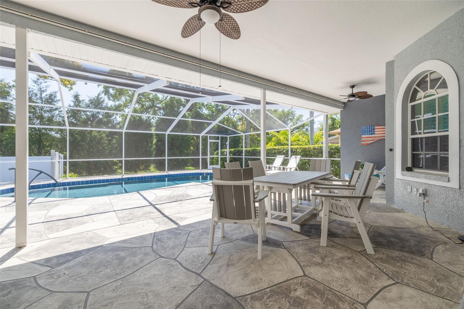 EXTRA EXTRA read all about it! Rare opportunity in Palm Harbor! Have you been looking for a quiet serene home within 5-10 minutes of the beach, shopping, downtown and restaurants? Then make an appointment for this exceptional home that is set on an expansive corner lot just shy of half an acre, with privacy, space, and abundant upgrades throughout. Surrounded by lush landscaping, swaying palm trees, and a peaceful wooded backdrop, the setting feels like your own private retreat, yet you’re just a quick golf cart ride to downtown Palm Harbor and Ozona, where you can enjoy local restaurants, shopping, live music, and more. With only 20 homes in the community, this property offers space and exclusivity without sacrificing location. Inside, an open, light-filled layout features soaring cathedral ceilings, expansive windows, and wood plank tile flooring throughout, while a soft, neutral color palette enhances the bright, coastal ambiance. The main living area is truly a showstopper, featuring a stunning granite accent wall with a remote-controlled gas fireplace. Three pocket sliding glass doors fully disappear, seamlessly blending indoor and outdoor living while offering uninterrupted views of the sparkling pool and expansive lanai with the tranquil sound of the pond fountain and views of nature. The kitchen is designed for gathering and entertaining, offering quartz countertops, a spacious island, gas cooktop, stainless steel appliances, and abundant cabinetry. Designer pendant lighting, a beautiful stylish tile backsplash in coastal hues, and a convenient closet pantry complete the space. Best of all, the kitchen overlooks the great room, making it easy to stay connected while hosting. The primary suite is your private sanctuary, featuring dual walk-in custom closets and a spacious en suite bathroom complete with a soaking tub and a large stand-alone shower. The guest bedrooms are generously sized with ample closet space, while the guest bathroom offers a walk-in shower for added comfort and convenience. The entire south end of the home has views of the outdoor entertainment pool lanai area! Step outside to your own private oasis, where the pool was beautifully refinished in 2026 (19K), with tropical blue tones, and includes a shallow bench seating area for relaxing seating 6+. The expansive 1,300-square-foot screened lanai provides ample room for lounging, dining, grilling and entertaining year-round. Additional highlights include a massive three-car garage with epoxy flooring 2025, plantation shutters throughout 2021, a whole-house generator connected to natural gas 2022, and a large interior laundry room with a utility sink and storage cabinets. HVAC SYSTEM 2021, NEW ROOF 2019, NEW Interior wood plank tile flooring 2020, Water Heater 2020, Dish washer, Water Softener, all 2021, Pool Deck Stamping 2021, Granite Wall Gas Fireplace 2022, Pool Pump 2023, Permanent Accent Holiday outdoor lighting with remote control 2025, Security System & Camera's 2025, Pool Refinished 2026, Custom Hurricane shutters and hurricane screen for lanai, Fenced in yard, Corner lot close to a 1/2 Acre all in a NON FLOOD ZONE! With space, privacy, thoughtful upgrades, and an unbeatable location, this home delivers the very best of Florida living. Schedule your private showing today!