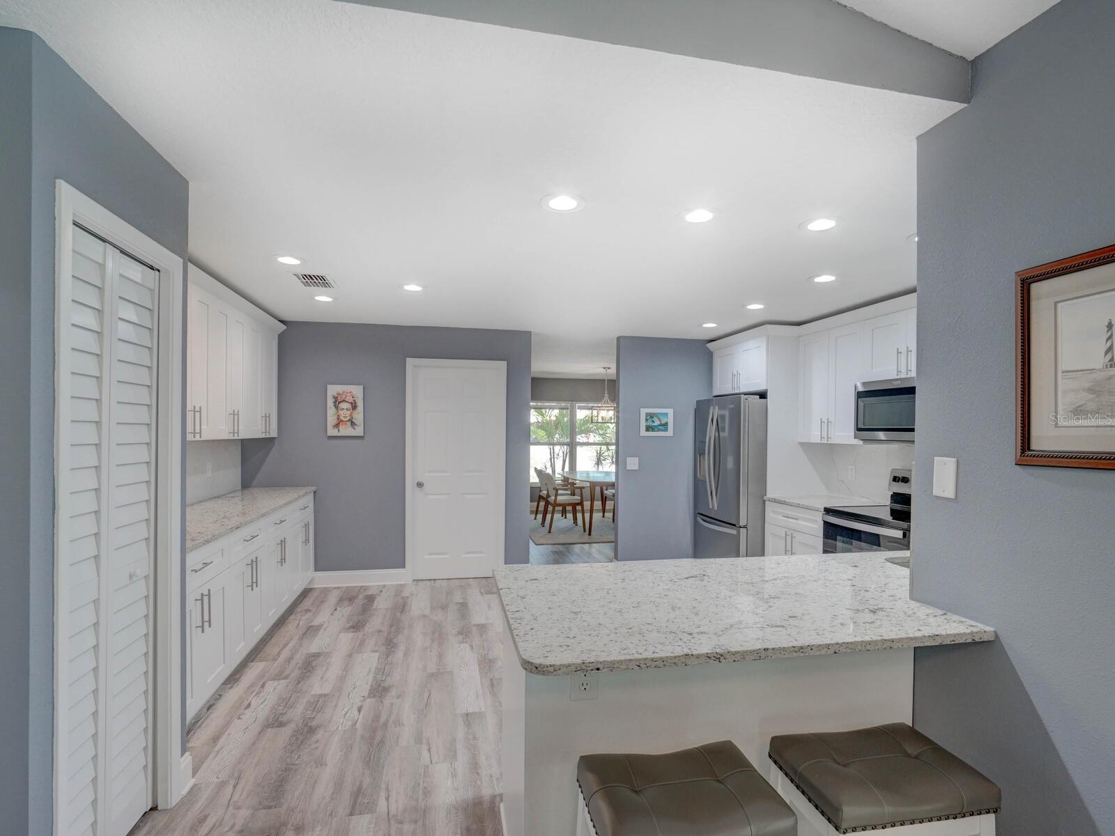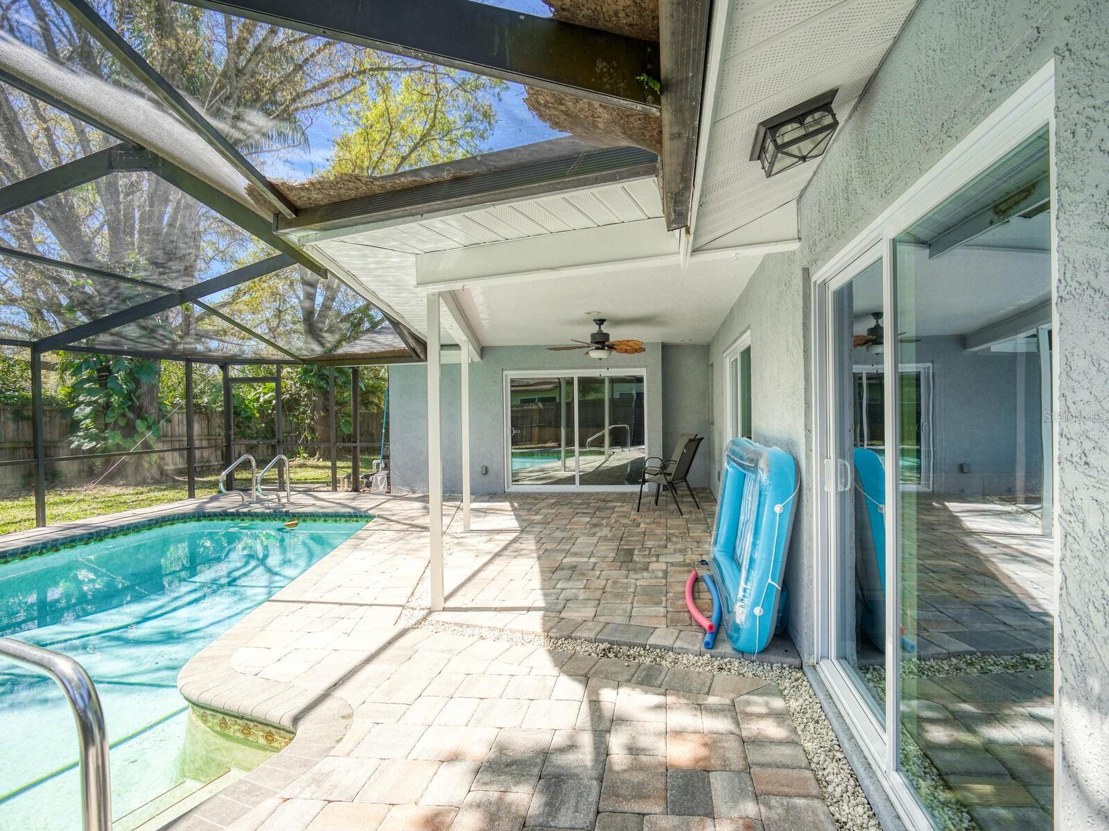 Four bedroom two bath pool home ideally located in the highly desirable North Countryside community of Palm Harbor. The home features a split floor plan which has been completely updated! ALL hurricane impact windows and sliders. Kitchen w/ wood cabinets, granite counter tops & SS appliances overlooks a cozy family room with wood burning fireplace. Luxury vinyl floors flow throughout the home with matching "wood look" tile in the remodeled bathrooms. Primary bedroom complete with walk-in closet and en suite bathroom. Five and one quarter inch baseboards throughout, upgraded lighting fixtures and fans! Step out onto your pavered lanai and enjoy the pool on a warm day. Fully fenced backyard. The home is in evacuation zone D, in a non flood zone. Just a fifteen minute drive to beautiful Florida beaches, thirty minutes to Tampa and Clearwater airports, near many shopping and dining options and hospitals. The community is adjacent to the newly extended Pinellas Trail offering miles of trails for biking and walking.