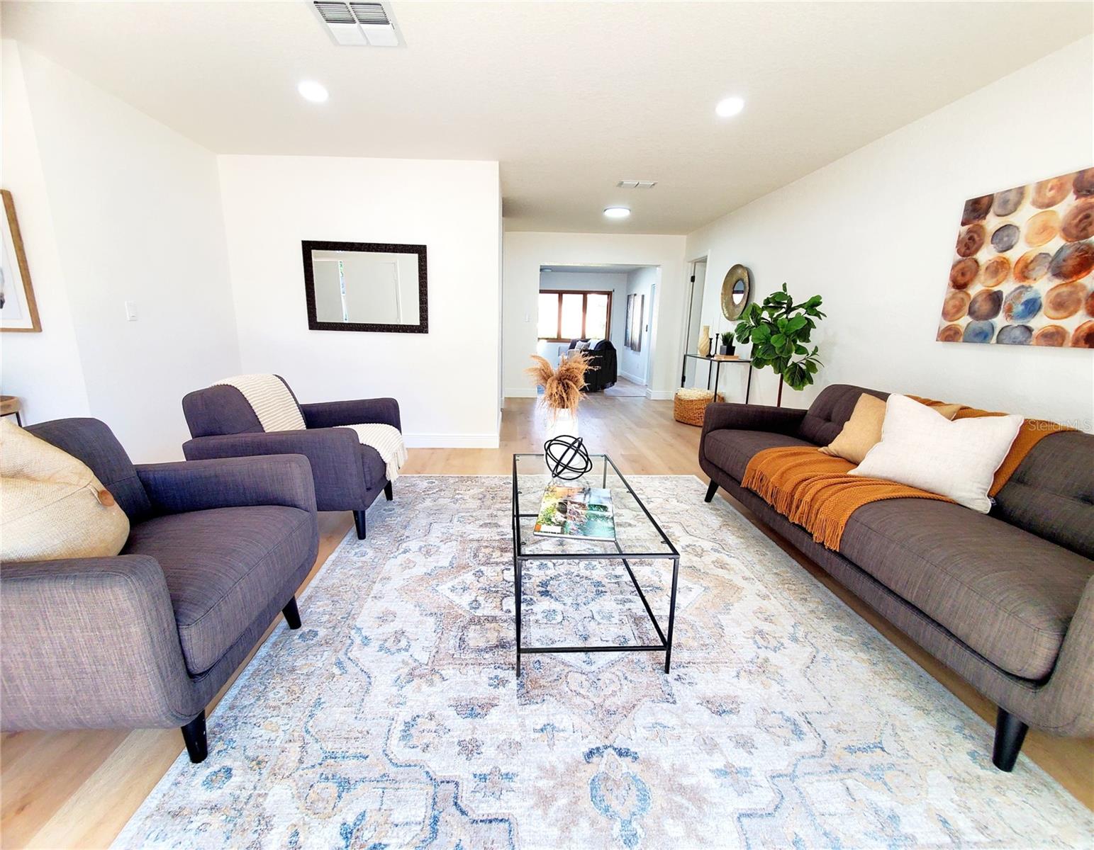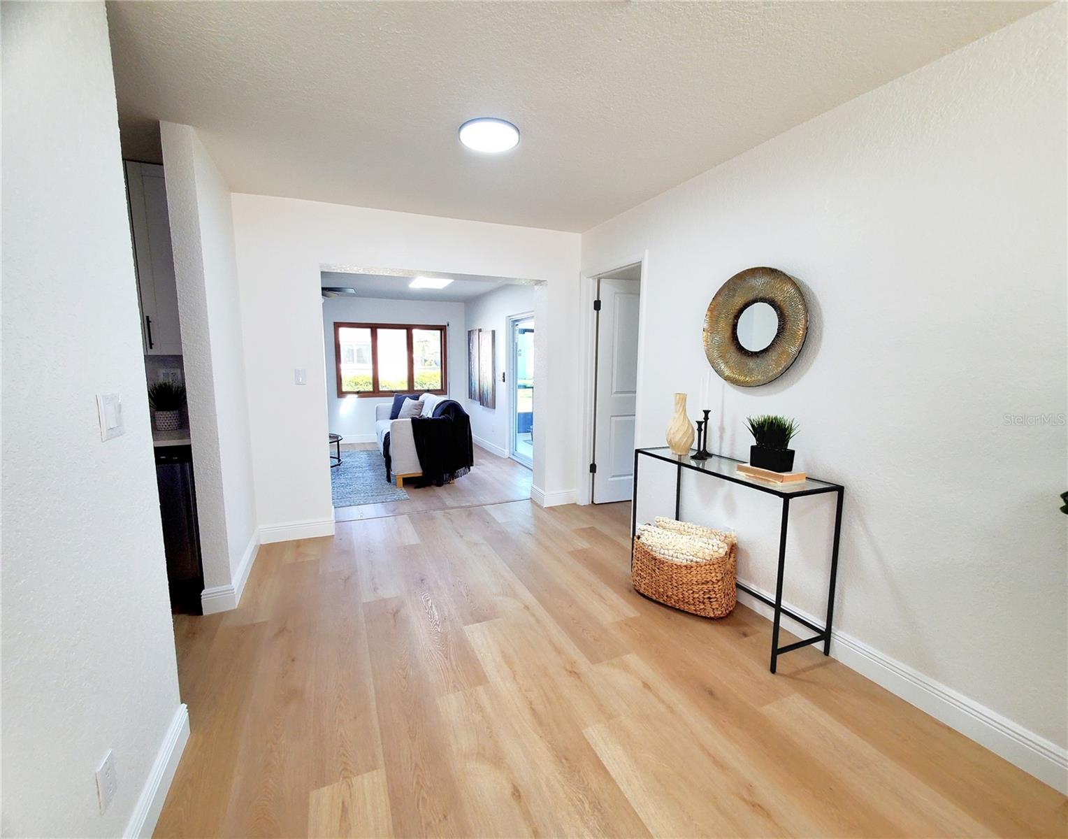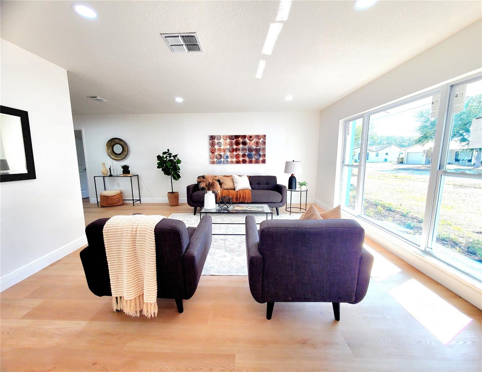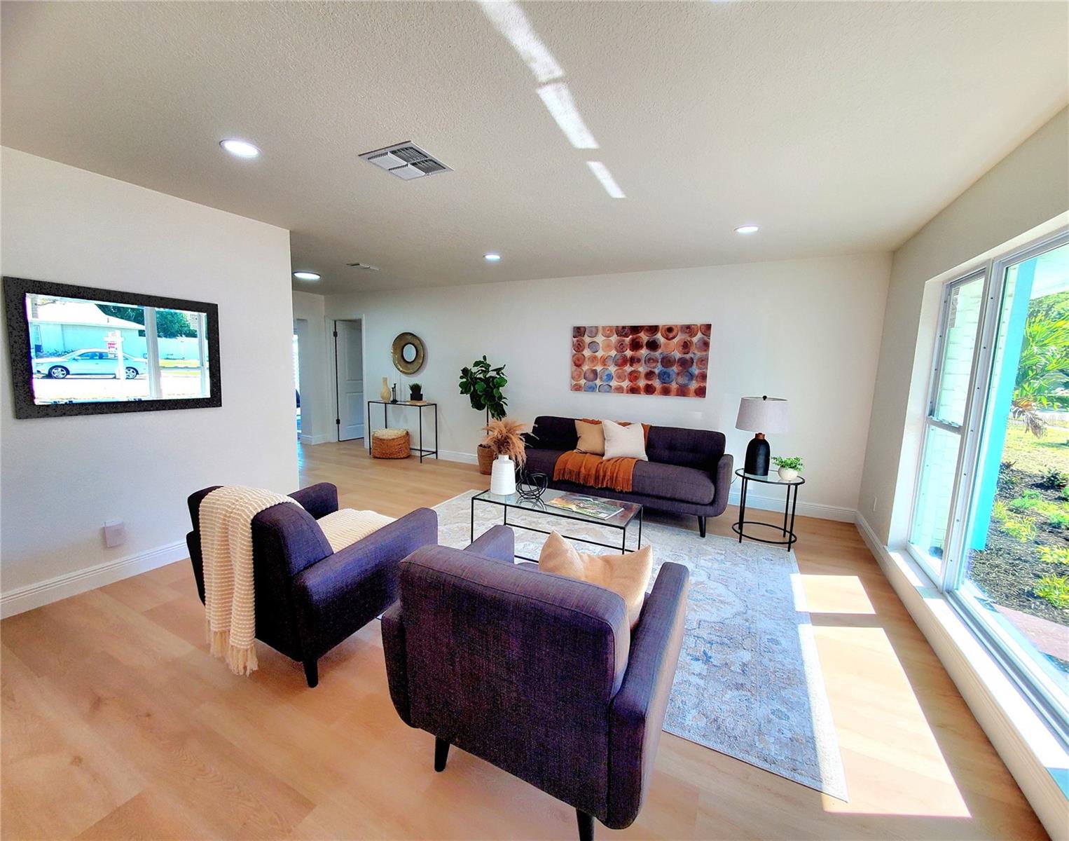 ** Totally Remodeled Palm Harbor Home! ** The Anchorage at Lake Tarpon is a charming neighborhood nestled next to John Chestnut Park along the East Lake corridor. You’ll fall in love with this beautifully renovated 3-bedroom retreat! From the moment you arrive, the fresh paint and new landscaping give it standout curb appeal. Step inside to an even more impressive interior, professionally designed and staged to showcase its full potential. The spacious open layout offers both a living room and a bright bonus family room, filled with natural light from a wall of windows, a sliding glass door, and two skylights. The brand-new kitchen features 42" cabinets, quartz countertops, a subway tile backsplash, and stainless-steel appliances. Recessed lighting runs throughout, along with new lighted ceiling fans, doors, and hardware. Waterproof vinyl flooring with high baseboards flows seamlessly through the home. Both full bathrooms boast resort-style finishes. The split-bedroom design includes a master suite with its own bathroom and a huge walk-in closet! 2 more bedrooms on the other side of the home, with the 2nd bedroom having its own walk-in closet. Freshly textured and painted walls give the feel of new construction. A large laundry room leads to an oversized garage with an extra storage room perfect for a mini workshop. New windows and a sliding door open to a covered screened lanai. With a newer roof (2023) and A/C (2021), this home is as practical as it is beautiful. The neighborhood clubhouse and pool are just a short stroll or golf cart ride away! This 55+ neighborhood only requires a quarterly fee of $125.