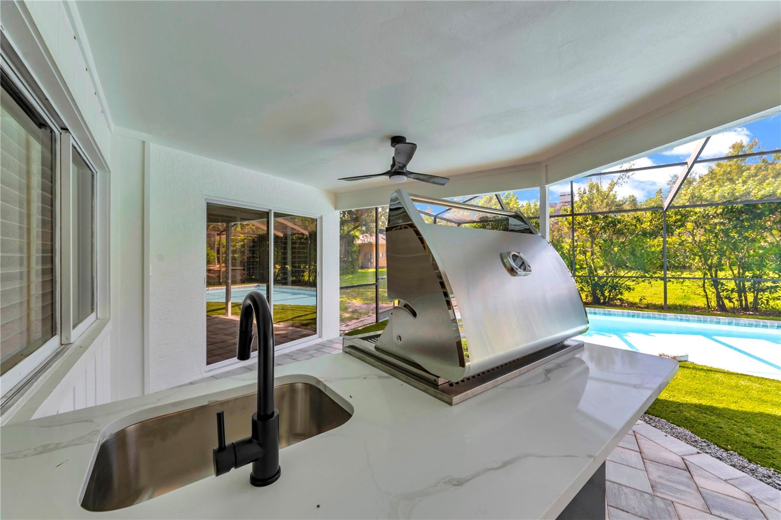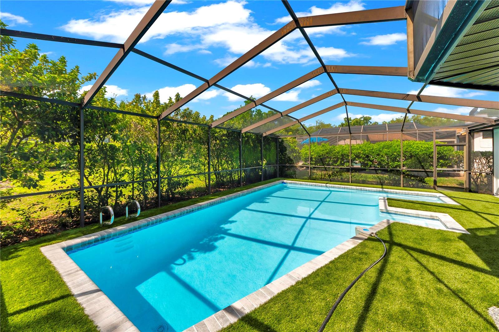 Welcome to 3262 Westcott Court, a fully renovated 4 bedroom, 3 bath residence located in the coveted community of Cobbs Landing in Palm Harbor. Positioned on a quarter acre homesite and offering 2,696 square feet of thoughtfully designed living space, this home delivers timeless style, elevated finishes, and true move in ready convenience.A striking modern front entry opens to soaring vaulted ceilings, wide plank engineered hardwood flooring, and a dramatic floor to ceiling black brick fireplace that anchors the main living area with architectural presence. Natural light fills the interior, enhanced by plantation shutters and a seamless open concept layout designed for both everyday living and refined entertainingThe designer kitchen has been completely reimagined with custom two tone cabinetry, quartz countertops, floating shelves, a statement range hood, and all new stainless steel appliances. Each bath has been beautifully updated, while the private primary suite offers a spa inspired retreat featuring a soaking tub, frameless glass rain shower with thermostatic controls, and marble finishes. Outdoor living is equally impressive with a screened pool retreat featuring refreshed surfaces, new pool equipment, artificial turf, and a dedicated grilling area ideal for year round enjoyment.Additional upgrades include a new AC in 2024, pool bath, and spacious 2 car garage. Located within one of Palm Harbor’s most sought after neighborhoods, Cobbs Landing is known for its mature tree lined streets, community amenities, and prime location near top rated schools, golf, beaches, dining, and shopping. A rare opportunity to own a beautifully curated home in one of Palm Harbor’s premier communities.