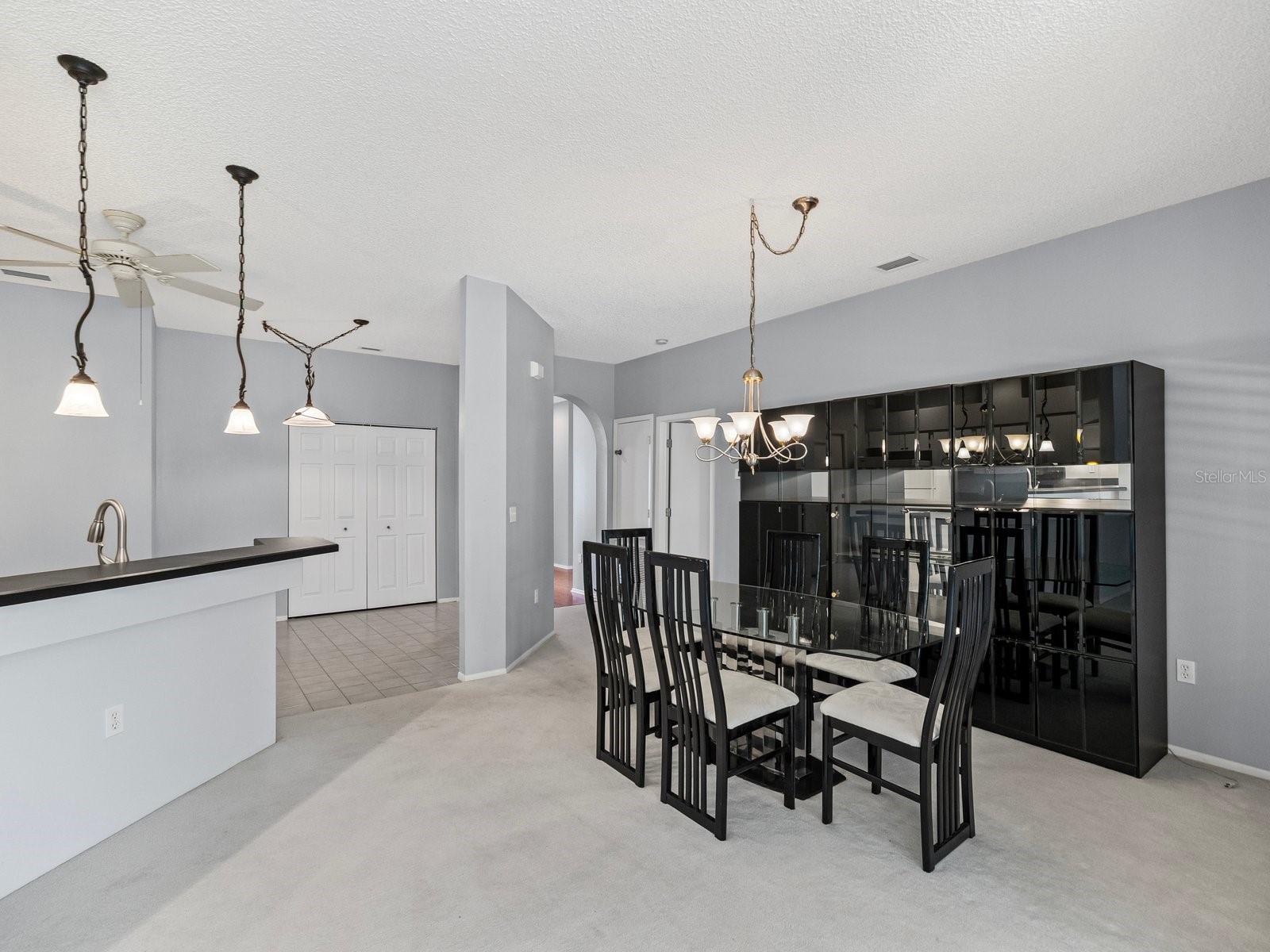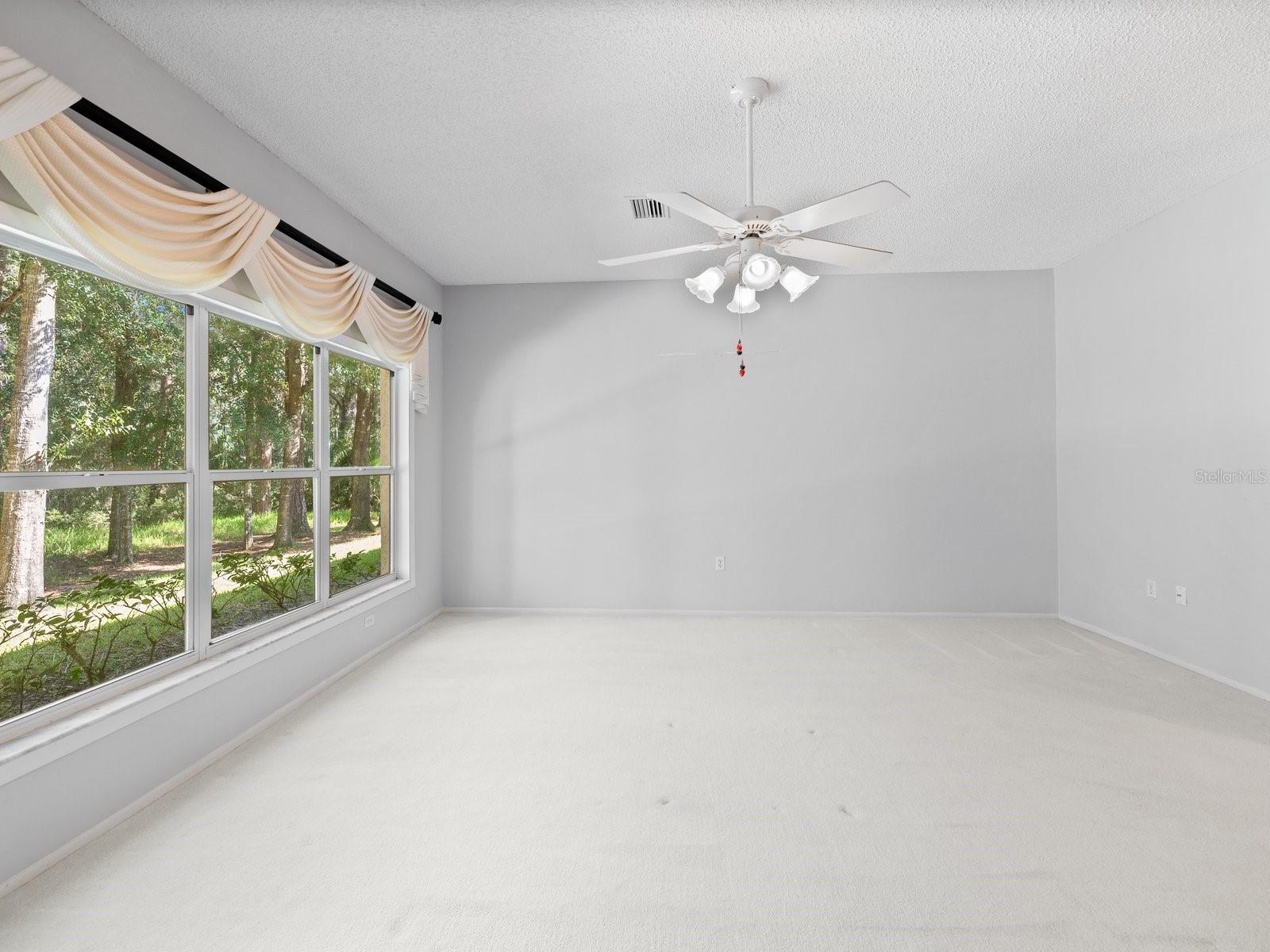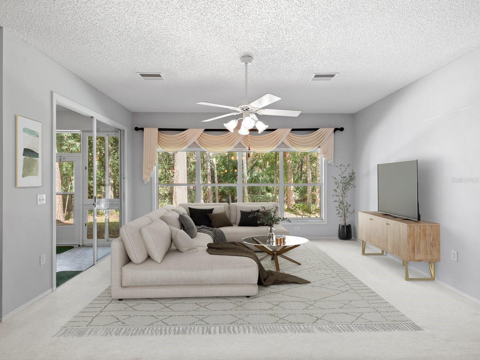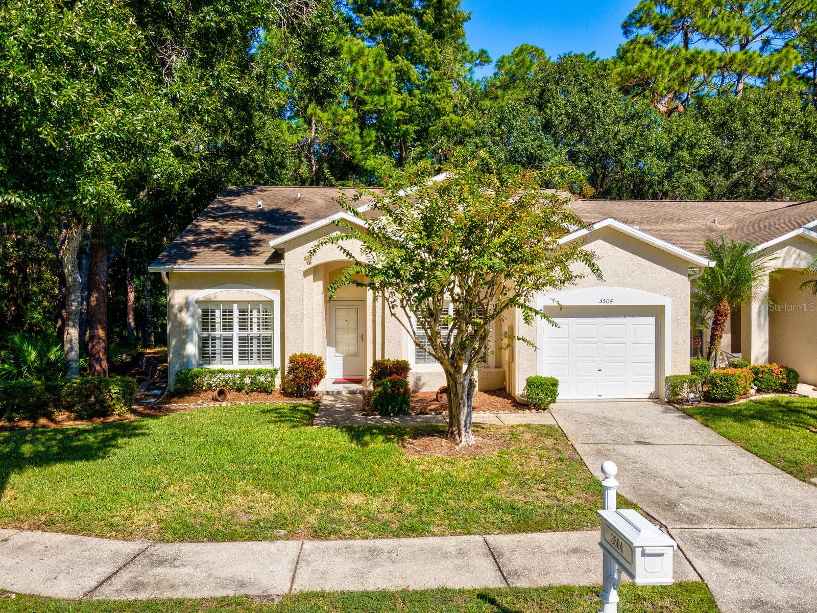 One or more photo(s) has been virtually staged. *Home interior recently painted/Seller highly motivated and wants SOLD* Stunning Corner Villa with Scenic Wooded Views in Tealwood Step into this beautifully maintained 3-bedroom, 2-bath corner unit villa that truly feels like home from the moment you enter. The open floor plan welcomes you with a spacious entryway that flows seamlessly into the living and dining areas — perfect for relaxing or entertaining. Enjoy peaceful evenings in the remodeled, fully enclosed back patio featuring large windows that frame a serene, wooded backdrop where deer and wildlife visit nightly. The kitchen offers an abundance of cabinetry and overlooks the main living space, creating a bright and connected feel throughout. The primary suite is a true retreat, complete with a large walk-in closet featuring professionally built custom cabinetry and a spa-inspired bathroom with a resort-style shower and separate soaking tub. Additional highlights include a dedicated laundry room with washer and dryer, a one-car garage, and a brand-new HVAC system installed in 2023 for added peace of mind. Located in the desirable Tealwood community, residents enjoy access to a screened-in community pool, park, and well-maintained common areas. Perfectly situated close to shopping, restaurants, and top-rated healthcare, this home offers the best of comfort, convenience, and natural beauty. Don’t miss your chance to make this exceptional villa your next home!