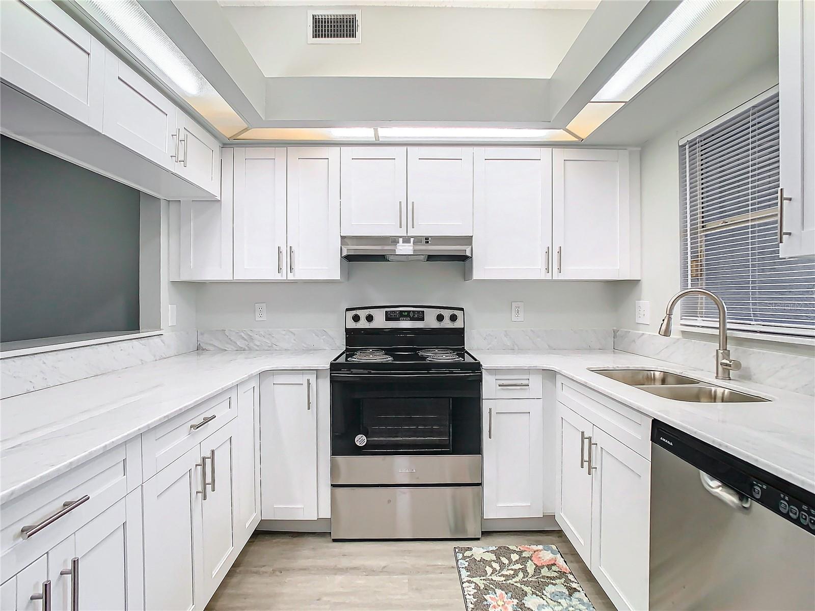 What an opportunity to own this beautifully updated townhome located in the sought-after Townhomes of Countryside. This home has been updated from top to bottom with classy and modern finishes. You will immediately be impressed with the new luxury vinyl flooring throughout. The living room features bench seating and new lighting and leads to a separate dining area. The dining room has a pass-thru window to the kitchen for easy convenience and perfect to host family gatherings or for entertainment. The kitchen features new cabinets, granite counters, stainless-steel appliances and has sliding doors leading to the screen enclosed lanai. There is a convenient updated ½ bath downstairs. Make your way upstairs to find the expansive master bedroom with new carpet, new blinds, new fan and a sizeable walk-in closet. The master bath features new tile floors, new vanity with granite counters. The generous second bedroom with new carpet and fan and has its own updated en-suite bathroom with a new vanity with granite counters, new toilet and new tile floors. Upstairs you will also find a dedicated laundry closet with a brand-new washer/dryer. Step outback into the screen enclosed lanai to enjoy your morning coffee or to relax and unwind. The community is pet-friendly and offers a community pool and scenic walking trails that’s perfect for the outdoor enthusiasts. Walk across the street to the pool.