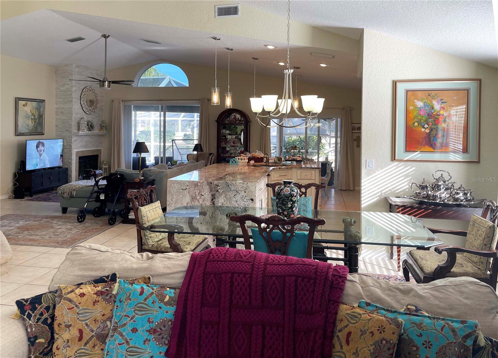 Updated, 2 story, 3 bedroom, 2 and ½ bath pool home located in highly-desirable Palm Harbor on East Lake Corridor. You will love the spacious, open floorplan with high, cathedral ceilings and a wood burning, travertine, dual fireplace from living room to master bedroom. Recently repainted exterior; top-of-line, walk-in Kohler “spa tub/shower” in master bath. Designer travertine front walkway. Updated kitchen includes newer stainless-steel appliances, granite countertops, island with granite waterfall, travertine backsplash, solid wood cabinetry, breakfast bar, and large pantry. Upstairs includes 2 bedrooms, bath, and a LOFT now used as an office, or spacious enough to enclose for an additional bedroom! Screened in-ground pool and covered lanai with private entrances from main living area and master bedroom to your pool and lanai. Privacy fenced back yard with firepit. Large, attached, 2 car garage. Lush landscaping, excellent condition “high and dry” with no hurricane damage, assumable VA loan at low interest rate, minutes away from shopping centers, restaurants, two golf courses, tennis courts, YMCA, and healthcare (excellent hospital, dental, other). Zoned for top rated schools including East Lake HS (with Engineering Academy, Biomedical Sciences Academy, Performing Arts Academy, and Academy for Business Careers). Eagle Cove subdivision is a private, single-entry subdivision to minimize through traffic. Minutes Lake Tarpon and US- 19. Seller is a licensed real estate agent.