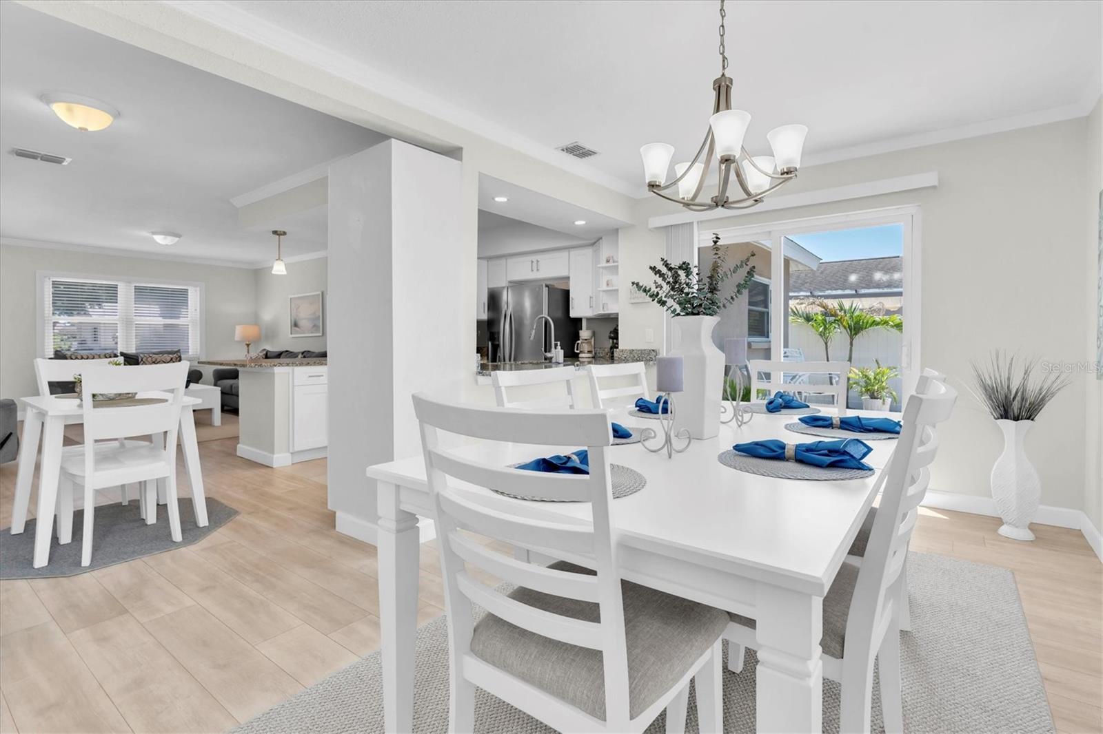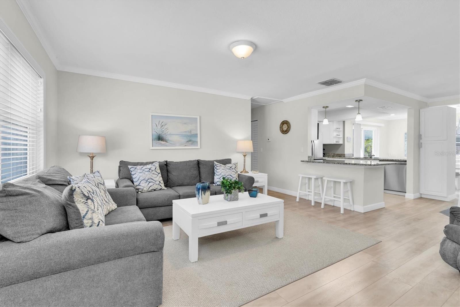 Welcome to Green Valley Estates! This beautifully remodeled 3-bedroom, 2-bathroom home with a bonus room and 2-car garage is truly turn-key and ready for its next owner. With no HOA, it offers the freedom and flexibility that today’s buyers are looking for—including the opportunity to operate as a short-term rental. Whether you're seeking a primary residence, vacation home, or investment property, this one checks all the boxes. Step inside to discover a bright and spacious split-floor plan, filled with natural light and elegant touches throughout. The open-concept living room flows seamlessly into the dining area and kitchen, all featuring light natural hardwood flooring. Crown molding and updated baseboards add a refined finish. The kitchen is a chef’s dream, complete with shaker-style cabinets, granite countertops, a custom pantry, and stainless steel appliances—all newly installed in 2021. The large primary suite offers a relaxing retreat, highlighted by a generous walk-in closet and plenty of space to unwind. The additional bedrooms are well-sized, and the bonus room provides endless possibilities—whether as a home office, gym, playroom, or guest space. Major system updates include a new AC unit, water heater, and water softener in 2021, as well as a roof replacement in 2015. The home also boasts newer windows and doors, and a newer fence that provides privacy for the fully landscaped backyard. Step out through the sliding glass doors onto the inviting patio and deck area—ideal for entertaining or simply enjoying a peaceful evening outdoors. For added convenience and value, this property can be sold fully furnished for an additional $20,000, making it truly move-in or rental-ready from day one. Conveniently located near the Palm Harbor Library and J. Stephen Putnam Park, this home is also close to top-rated schools, shopping centers, popular restaurants, and offers easy access to US-19. Whether you're looking for a forever home, a seasonal getaway, or a smart investment, this home delivers. Don’t miss your chance to own this stunning, fully upgraded property!