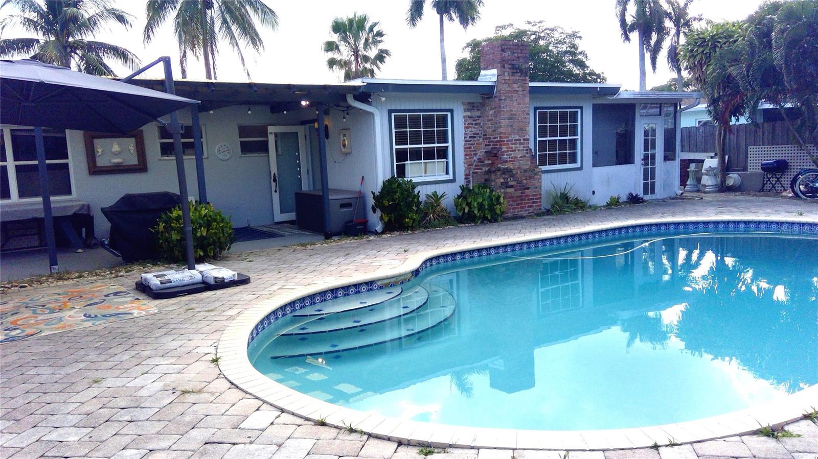 SOLAR PANELS, 2024 ROOF , LARGE INGROUND POOL , BUILT-IN CHEMMEY , IN-LAWS'S APARTMENT, UPDATED ELECTRICITY AND PLUMBING This pool home stands out with its large, open living spaces and abundant natural light. There are many updates, extras, and special features including a modernized kitchen w/plenty of pantry space, pull out shelves and stainless-Steel appliances. The kitchen overlooks the family and dining room, offering an elegant centerpiece. Great backroom overlooking the pool and patio area with an original built in working Chimney. Spacious primary suite with plenty of space for office room. All ceiling lights and fans add a unique look and cozy ambience to the house. New Roof and Solar Panels were installed for the entire house in 2024. An in-law's attached apartment is completely updated with finest touch and a private entrance. A large in-ground pool surrounded by a garden, back porch and deck for entertainment year-round. Enjoy the premier location close to some of Florida’s finest beaches 6 minutes distance by car, and shopping. With all these convenient amenities, the house is also well suited for someone looking to use the house as primary residence or a vacation rental. This home will keep your family safe and comfortable, built with a slab foundation, solid block walls, and in a flood-free area. Renovated Electricity and plumbing. Hurry and schedule your showing of this true gem of Palm Springs.