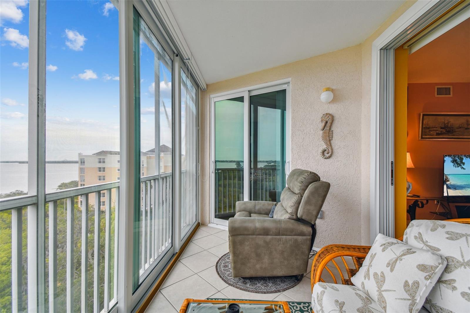 Breathtaking views of Terra Ceia Bay! This 2 bedroom, 2 bathroom waterfront condo on the 7th Floor features a split bedroom floor plan, hurricane sliders / windows, newer appliances, inside utility with washer and dryer hookups, storage closet, and under building assigned parking space. Enjoy watching the wildlife and incredible sunsets from your private screened and glass-enclosed lanai. The waterfront community of Terra Ceia Bay Golf & Country Club offers beautiful grounds, a gated community, public golf course, a community pool, a clubhouse, a restaurant, a boardwalk, nature trails, and a fishing pier. Conveniently located near I-75 and I-275 for an easy commute to St. Petersburg/Tampa or Bradenton/Sarasota. Near shopping, restaurants, and a short drive to our beautiful Gulf beaches. Don't wait, call Today