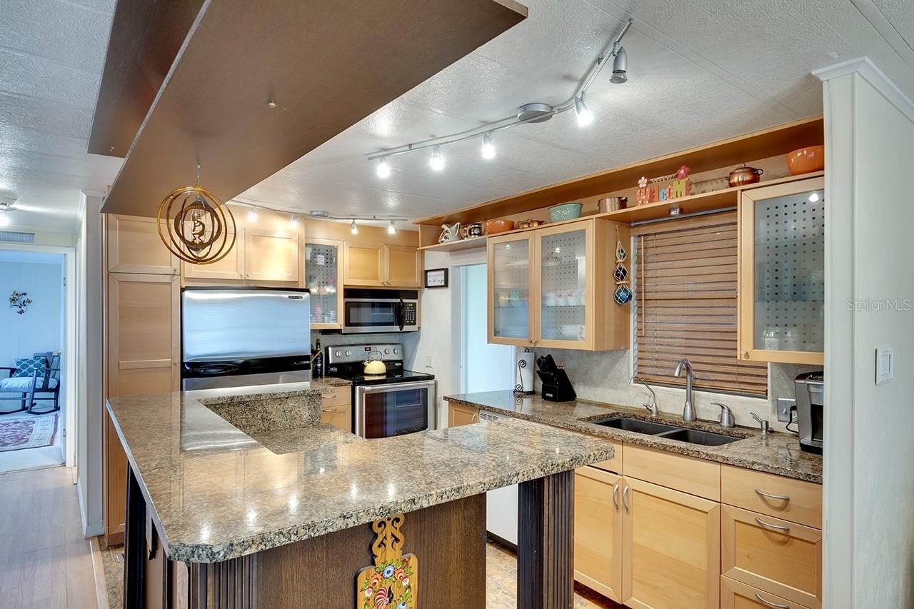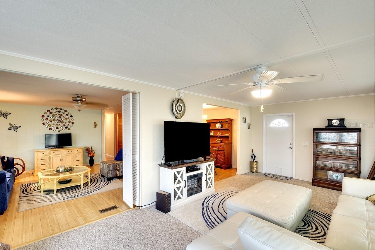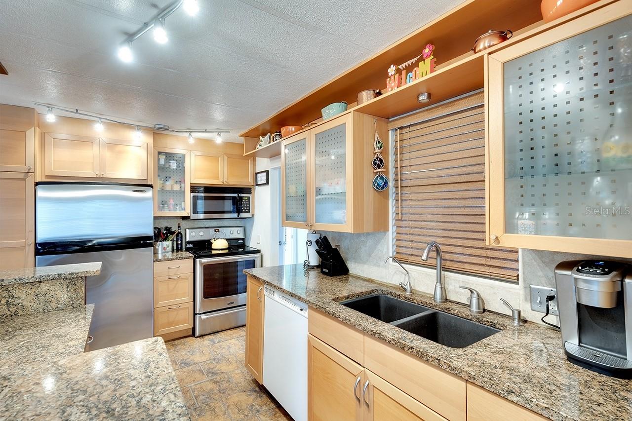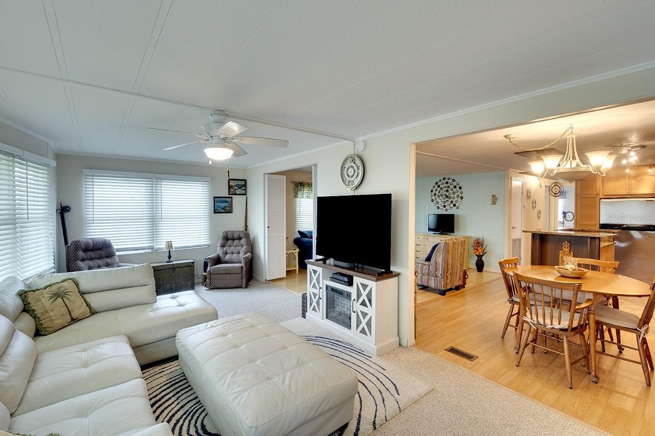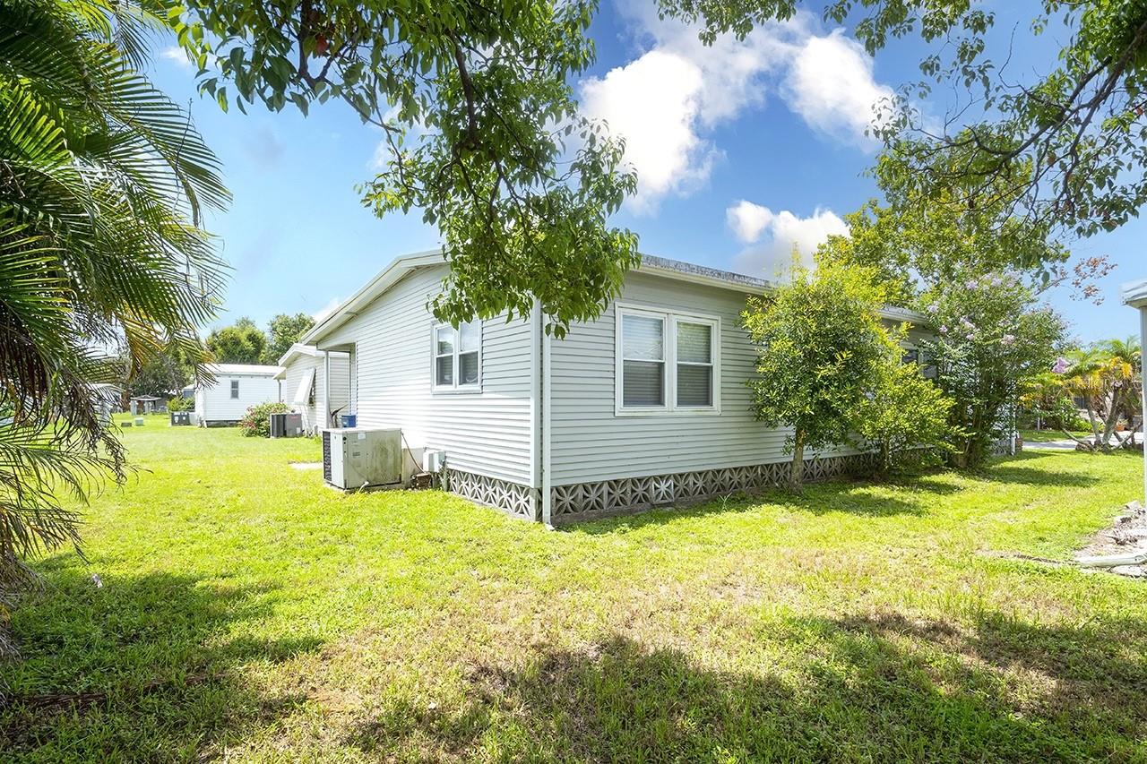 NO LOT RENT, YOU OWN THE LAND! This Charming home is move-in-ready. Located in the great family community of Shadow Brook, on a street that’s much like a cul-de-sac. This community is a hidden gem. The HOA Fees include WATER, WIFI & CABLE! All for only $217/MONTH, paid per quarter! The homeowners are on the HOA board, so their decisions are made “for the good of everyone”! It’s truly a special place that considers the residents first, because the decision makers are residents, too. There are no extra or hidden costs here. Once you’re in this great community, you can enjoy a VERY low-cost of living. This home is really spacious, nearly 1600sqft, 3 bedrooms/2 baths. The third bedroom currently doubles as a big office with its own exterior door. The focal point & gathering place in this home is the GREAT ROOM with its open floorplan that boasts a Family Room, dining area, UPDATED KITCHEN with beautiful granite island & countertops & cabinets that light up. AND, there’s a big SECOND LIVING ROOM as well! The inside laundry room has lots of extra cabinets & space. The Shed & Lanai with its slate tile floor, are both accessible from inside the house as well. There is also enough room for 2 vehicles across the front driveway, so you won’t need to jockey cars around each other. These special features make life easier. Ductwork was upgraded November 2024! The owner will consider leaving most of the furniture. Don't miss this opportunity to live in a family and pet-friendly community at a very affordable price.