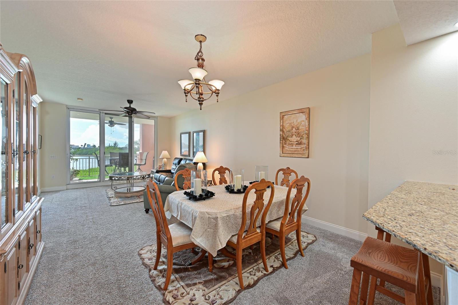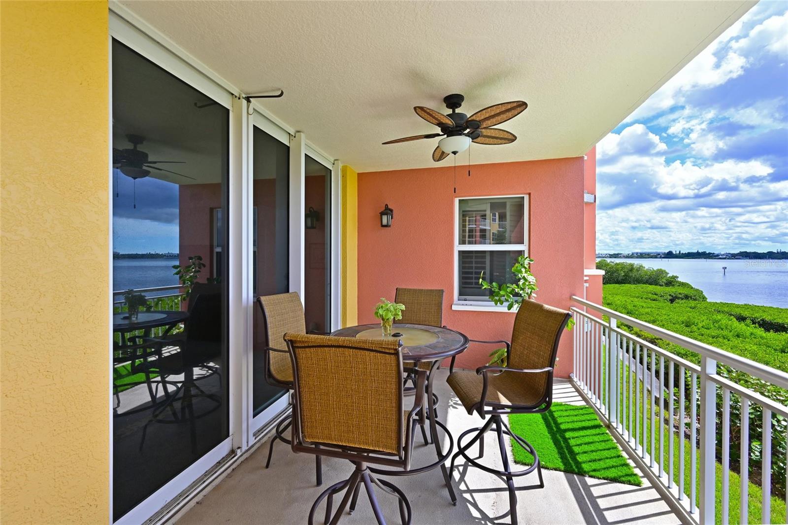 Luxury condo located on the north banks of the Manatee River has a captivating view of the water. Uniquely designed community offers boating and fishing with easy access to Gulf of Mexico, intercostal waterway and Tampa Bay. Guard-Gated neighborhood includes maintenance free living designed to take full advantage of the stunning waterfront views. A secure building entry has protected assigned parking for residents and ample guest parking, plus 2 electric car charging stations. This 2 Bedroom 2 bath with a Den features a split floorplan for optimal privacy. Spacious entry welcomes you with upgraded tiled flooring and a view of the river as you walk in. The laundry room will capture your attention with cherry cabinets. Kitchen is fully equipped with granite counters, SS appliances, new microwave, breakfast bar and eat in area. Gorgeous view from the kitchen and lots of cabinets and counter space. Popular Great Room plan and inviting dining room has great natural light in this open concept plan, perfect for entertaining. The Den has versatility for a home office or a secondary living space. Master Bedroom is oversized with a walk in closet and Master bath features garden tub, walk in shower, dual vanities and framed mirrors. Step out on to the terrace and experience Florida's wildlife along the River. So many features of this home like 5 ¼” baseboards, fire sprinklers, New AC, new toilets, Washer 2022, Dryer 2024, upgraded faucets and plantation shutters. Amenities include a clubhouse, pool/spa, fitness center, cabana with outdoor grills and dining area, tennis courts. Enjoy a stroll to the waterside onsite restaurant “Dockside” with live music, Bar & Grill. Pet-friendly community. Subject to availability, the marina has a variety of slip sizes for rent or purchase and can accommodate large boats. With an 18 foot deep man-made hurricane protected harbor, Riviera Dunes Marina is one of the best marinas on the Florida’s Gulf Coast. Great proximity to downtown Bradenton with restaurants, Riverwalk and weekend Farmer’s Market. Minutes to the beautiful blue Gulf waters on Anna Marie and Siesta Key.