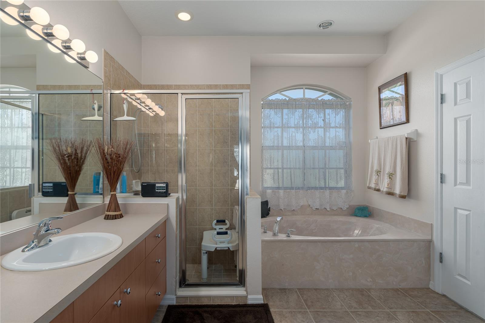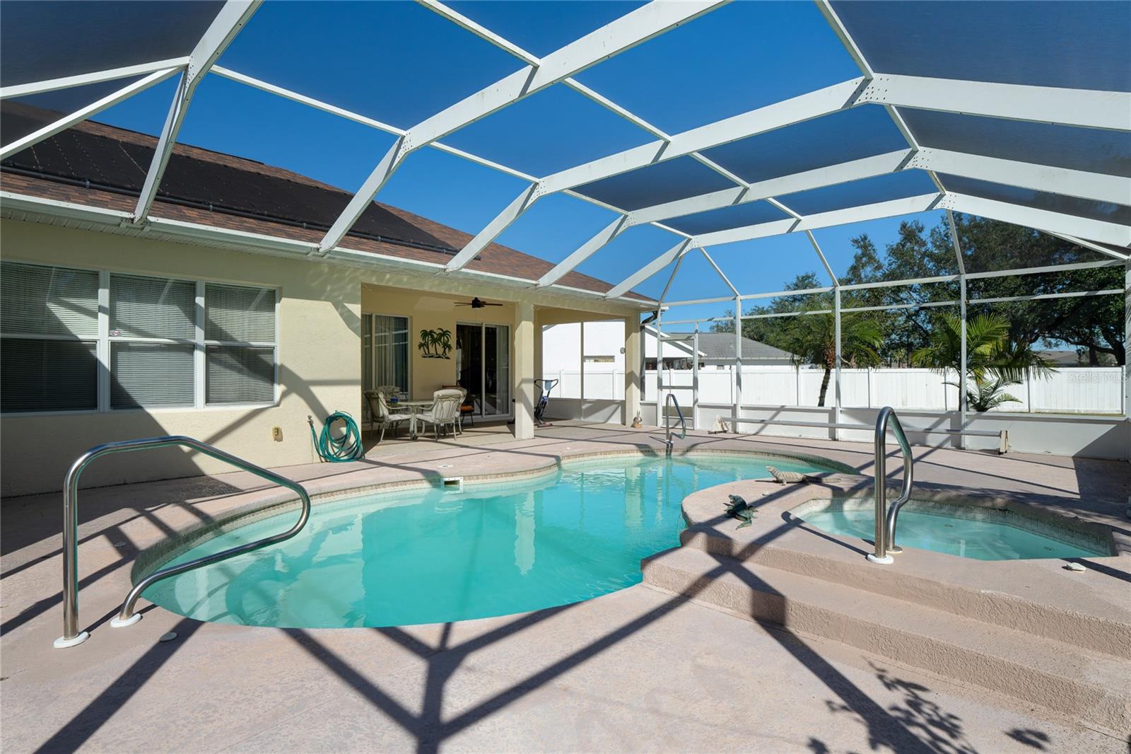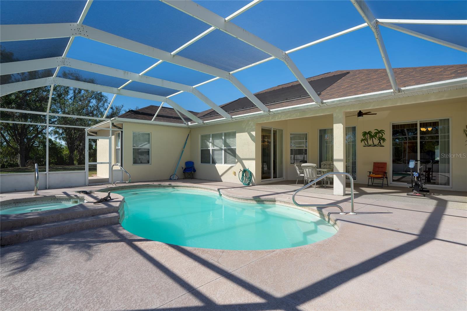 ANOTHER MAJOR PRICE IMPROVEMENT!! ADDITIONAL SECTION OF PRIVACY FENCE NOW INSTALLED!!! This meticulously maintained home in the popular Sugar Mill Lakes neighborhood has all the elements needed to enjoy the Florida lifestyle! The home features 4 bedrooms, 2 full bathrooms, 2 car garage, formal living and dining room, family room/kitchen with breakfast bar, spacious primary bedroom with large walk-in closet and en-suite bath with garden tub and stall shower, ceiling fans in all rooms, NEW ROOF, large, screened lanai with heated, saltwater pool, spa, and sits on a little over half an acre. Community amenities include a tennis court, half basketball court, and playgrounds. NO CDD FEE and LOW HOA FEE, easy commute to Bradenton, Sarasota, Tamps, St Pete, and world class beaches make this the perfect place to call home. COME CLAIM YOUR SLICE OF PARADISE!!! Note: Sellers would prefer to sell property furnished. Property tax does not include Homestead exemption since owners are not fulltime residents. RENTALS NOT PERMITTED.