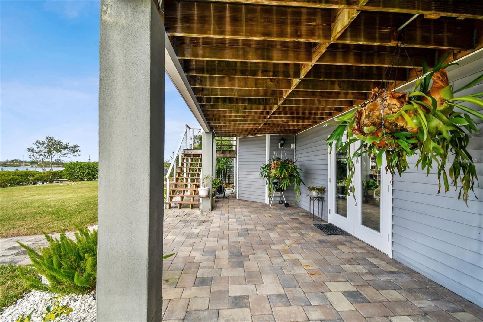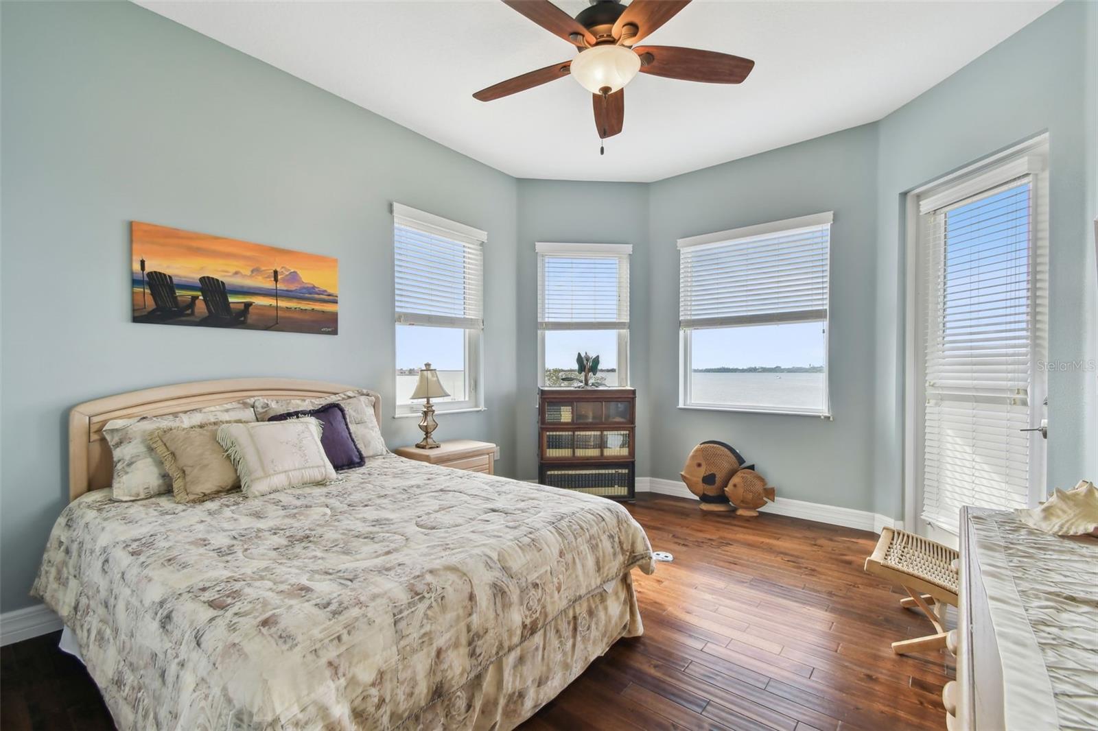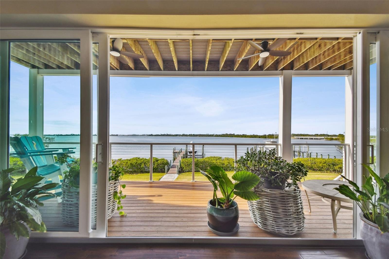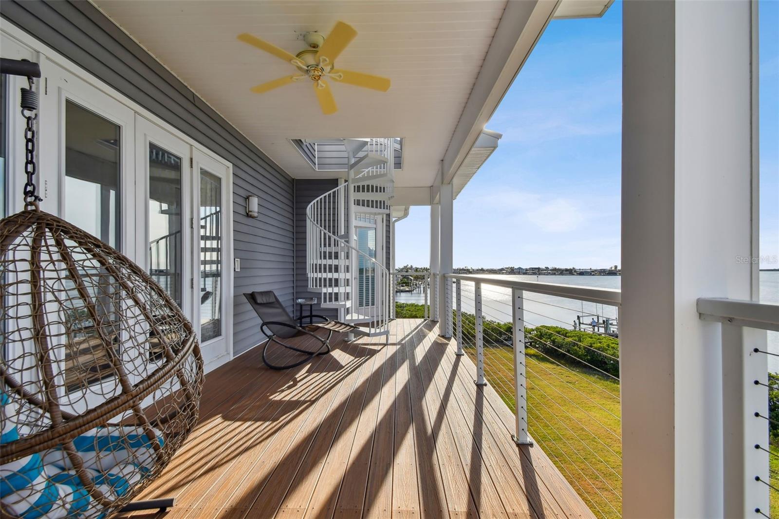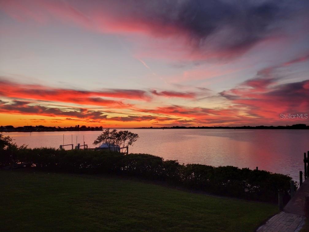 Experience breathtaking sunsets every evening from your custom-built, modern Key West-style waterfront home in the exclusive, gated community of Terra Ceia Bay Estates, featuring only ten residences. Arrive by boat via Tampa Bay's open waters to your private 90-foot dock with a 10,000 pound boat lift, or park in your expansive five-car garage equipped with ample storage. An elevator conveniently takes you to any of the home’s three levels. The mid-level main entrance welcomes you to an open-concept living area with stunning 180° water views, showcased through disappearing four-panel pocket sliding glass doors. The living room boasts a spacious wood-burning fireplace with a custom wood mantle, granite hearth, and built-ins, all beneath soaring 10-foot coffered ceilings with in-ceiling Bose surround sound speakers. These high ceilings continue throughout the home, complemented by ¾-inch solid Acacia hand-scraped hardwood floors, along with marble and travertine tile accents in the kitchen and bathrooms. The gourmet kitchen is a chef’s dream, offering a large walk-in pantry, granite countertops, under-cabinet and valance lighting, a touchless Kohler faucet, a generously sized island with bar seating, and a breakfast nook perfect for entertaining. It’s outfitted with high-end appliances, including a double oven, a five-burner low-profile electric cooktop, and a microwave drawer—ideal for hosting gatherings or preparing meals for family and friends. Adjacent is a formal dining room with crown molding and its own private balcony. On the third floor, the primary suite serves as a luxurious retreat, featuring a tray ceiling, a mirrored dressing area, and glass French doors leading to a private deck. A spiral staircase ascends to a crow’s nest, 40 feet above ground, where you can enjoy sunsets with panoramic views of the bay and Skyway Bridge. The ensuite bathroom offers heated travertine floors, a double vanity with granite countertops, a 12-jet Jacuzzi tub with an inline whirlpool heater, and an oversized walk-in shower with dual rainheads, four body sprays, and a shower wand. A nearby laundry room adds convenience, while an additional bedroom on this level includes a private bath with mosaic tile accents and a spacious wardrobe closet. Additional features of the home include solid core 8-foot interior doors, whole-house dimmable LED lighting, ceiling fans throughout, metal roofing, vinyl siding, Icynene attic spray foam insulation, a security system, PGT hurricane-rated impact windows and doors, see-through cable railing, and Trex composite decking. Outdoor amenities include dock lighting, a remote GEM boat lift controller, a 50A/30A shore power tower, and an in-ground sprinkler system. The home is located just 25 minutes from downtown St. Petersburg, 35 minutes from Tampa International Airport, and 20 minutes from University Mall. The HOA fee of $500/month covers community pool access, lawn and shrub maintenance, fertilization, and irrigation water.