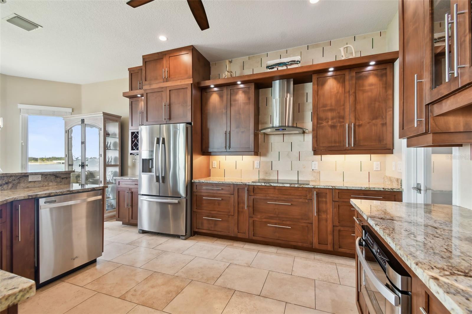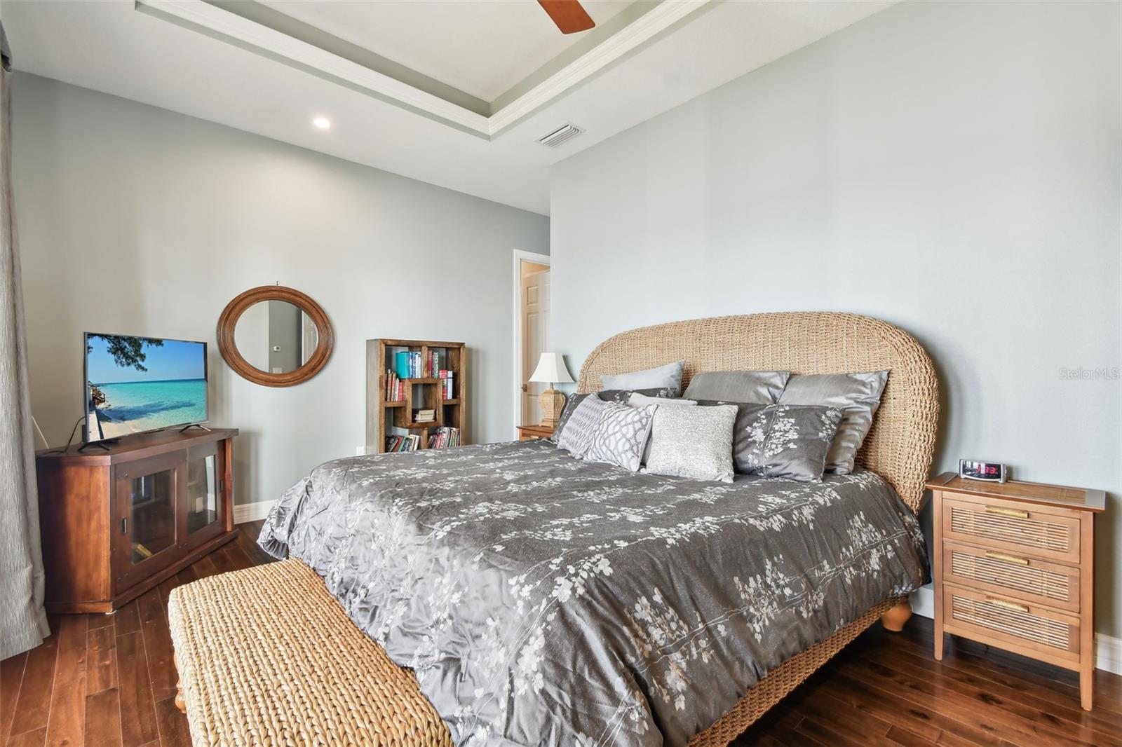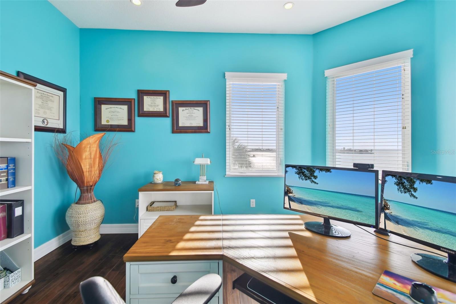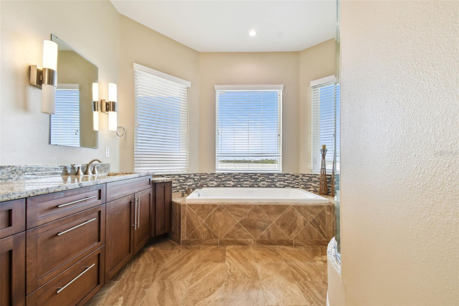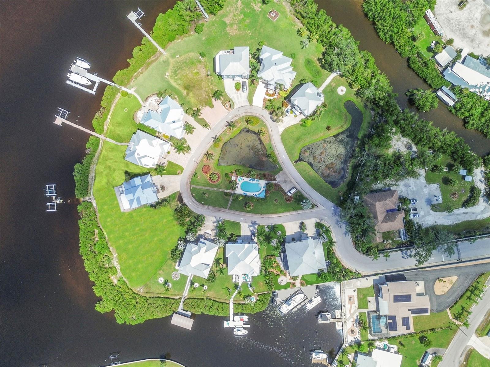 Experience breathtaking sunsets every evening from your custom-built, modern Key West-style waterfront home in the exclusive, gated community of Terra Ceia Bay Estates, featuring only ten residences. Arrive by boat via Tampa Bay's open waters to your private 90-foot dock with a 10,000 pound boat lift, or park in your expansive five-car garage equipped with ample storage. An elevator conveniently takes you to any of the home’s three levels. The mid-level main entrance welcomes you to an open-concept living area with stunning 180° water views, showcased through disappearing four-panel pocket sliding glass doors. The living room boasts a spacious wood-burning fireplace with a custom wood mantle, granite hearth, and built-ins, all beneath soaring 10-foot coffered ceilings with in-ceiling Bose surround sound speakers. These high ceilings continue throughout the home, complemented by ¾-inch solid Acacia hand-scraped hardwood floors, along with marble and travertine tile accents in the kitchen and bathrooms. The gourmet kitchen is a chef’s dream, offering a large walk-in pantry, granite countertops, under-cabinet and valance lighting, a touchless Kohler faucet, a generously sized island with bar seating, and a breakfast nook perfect for entertaining. It’s outfitted with high-end appliances, including a double oven, a five-burner low-profile electric cooktop, and a microwave drawer—ideal for hosting gatherings or preparing meals for family and friends. Adjacent is a formal dining room with crown molding and its own private balcony. On the third floor, the primary suite serves as a luxurious retreat, featuring a tray ceiling, a mirrored dressing area, and glass French doors leading to a private deck. A spiral staircase ascends to a crow’s nest, 40 feet above ground, where you can enjoy sunsets with panoramic views of the bay and Skyway Bridge. The ensuite bathroom offers heated travertine floors, a double vanity with granite countertops, a 12-jet Jacuzzi tub with an inline whirlpool heater, and an oversized walk-in shower with dual rainheads, four body sprays, and a shower wand. A nearby laundry room adds convenience, while an additional bedroom on this level includes a private bath with mosaic tile accents and a spacious wardrobe closet. Additional features of the home include solid core 8-foot interior doors, whole-house dimmable LED lighting, ceiling fans throughout, metal roofing, vinyl siding, Icynene attic spray foam insulation, a security system, PGT hurricane-rated impact windows and doors, see-through cable railing, and Trex composite decking. Outdoor amenities include dock lighting, a remote GEM boat lift controller, a 50A/30A shore power tower, and an in-ground sprinkler system. The home is located just 25 minutes from downtown St. Petersburg, 35 minutes from Tampa International Airport, and 20 minutes from University Mall. The HOA fee of $500/month covers community pool access, lawn and shrub maintenance, fertilization, and irrigation water.