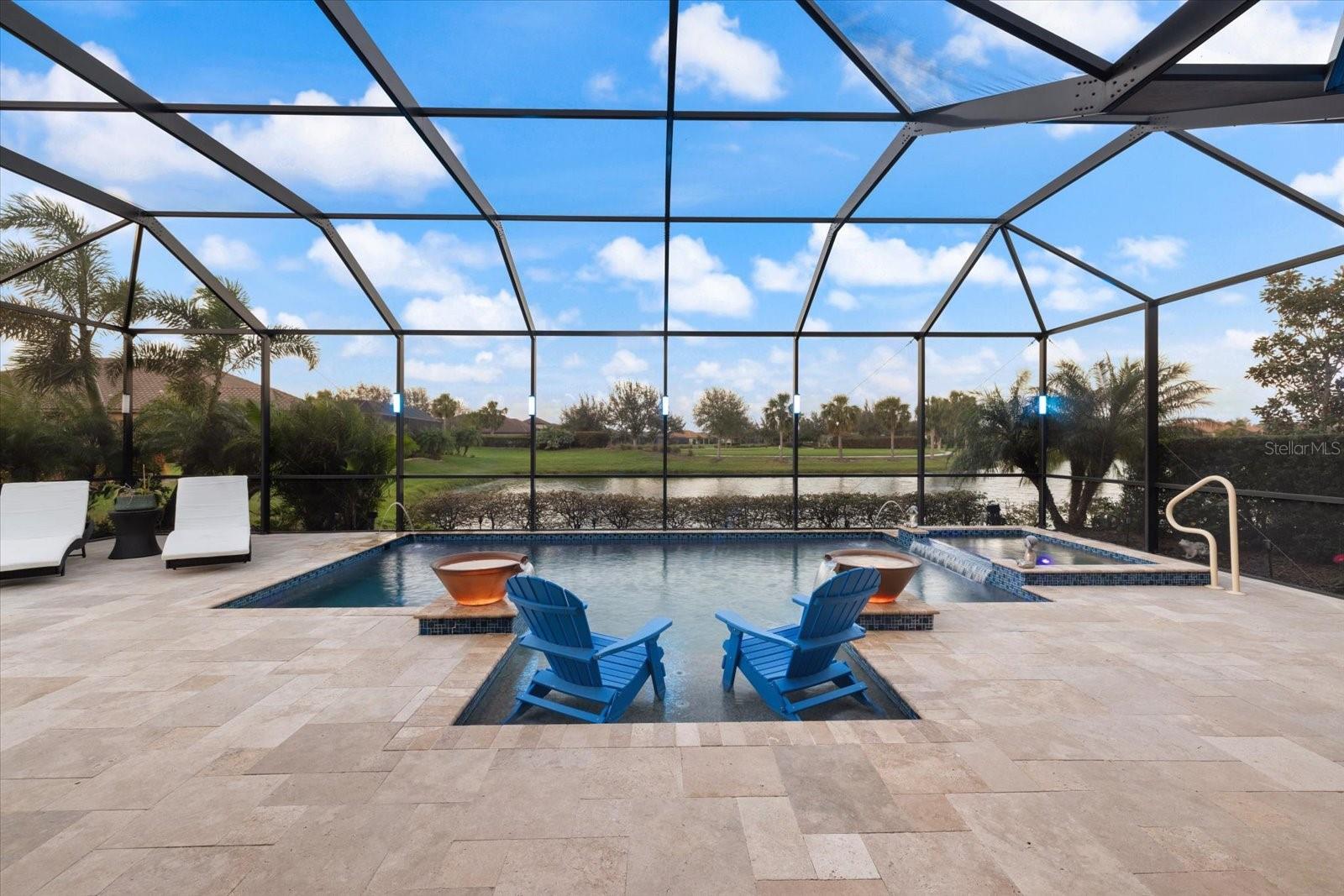 Do not wait for the opportunity to see this stunning home with a private pool offers the perfect blend of comfort, luxury, and relaxation in the exclusively gated community of Esplanade at Artisan Lakes. The highly sought after Palazzio model features optional 4 beds, 3 bath situated on a private lot with no rear neighbors and overlooking a peaceful pond. The home's striking curb appeal will captivate you with its pavered driveway, lush landscaping, Mediterranean style elevation with stone accent, & ceramic tile roof. As you step into the double door foyer, your eyes will instantly be drawn ahead to the triple sliders showcasing your private pool oasis. All floors are porcelain tile or pergo flooring for durability and cleanliness. A casual dining area to your left is close to all the action. Situated just off the foyer is the study/media/gym room complete with double glassed French door entry. At the heart of the home, the open concept gathering room flows seamlessly into the oversized gourmet kitchen with another pocket sliding door providing easy access to your outdoor kitchen and overlooking the pool surrounded by travertine decking. Your gourmet kitchen is PERFECT for entertaining & includes 42" cabinets w/roll out drawers, Brazilian Quartzite counters, gas cooktop w/vent hood, wall oven, microwave and additional seating at the HUGE center island with waterfall quartzite, & dedicated pantry. The expansive gathering room includes sliders that lead to the lanai as well as a coffered ceiling and crown moldings, adding height & elegance to this space. Step outside to your massive screened-in lanai, featuring your saltwater pool with gas heater, hot tub, and sun shelf with bubblers, deck jets and Magic bowls. Surrounded by lush tropical landscaping and LED cage lighting as well as wood pine ceiling treatment. It’s the perfect setting for outdoor entertainment and enjoying the serene views. The impressive oversized Primary Retreat offers a tranquil haven & includes a coffered ceiling, crown molding and a HUGE walk-in closet with fantastic built-ins. Your en-suite Primary Bath includes extended vanity w/granite counters, double sinks, HUGE walk-in shower and linen closet. Two spacious bedrooms with crown molding are situated just off the foyer to your right with a full bath in between. The 4th bedroom with crown molding is located to the left of the foyer including its own en-suite bathroom perfect for guests. All windows throughout the home are decorated with very stylish plantation shutters. The oversized laundry room includes a washer & dryer, utility sink w/lower cabinet, & access to the garage. Situated in the highly desirable Esplanade at Artisan Lakes, this maintenance free community enjoys lower HOA fees. Conveniently located to St. Petersburg, Tampa or Sarasota. The community offers spectacular resort style amenities including pools, hot tubs, pickleball, tennis, events, clubs, shows, bocce ball and firepits. The Moccasin Wallow corridor is a hot spot for development with many shops, restaurants and essential services coming to the immediate area.