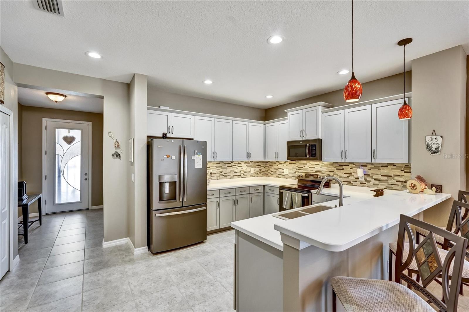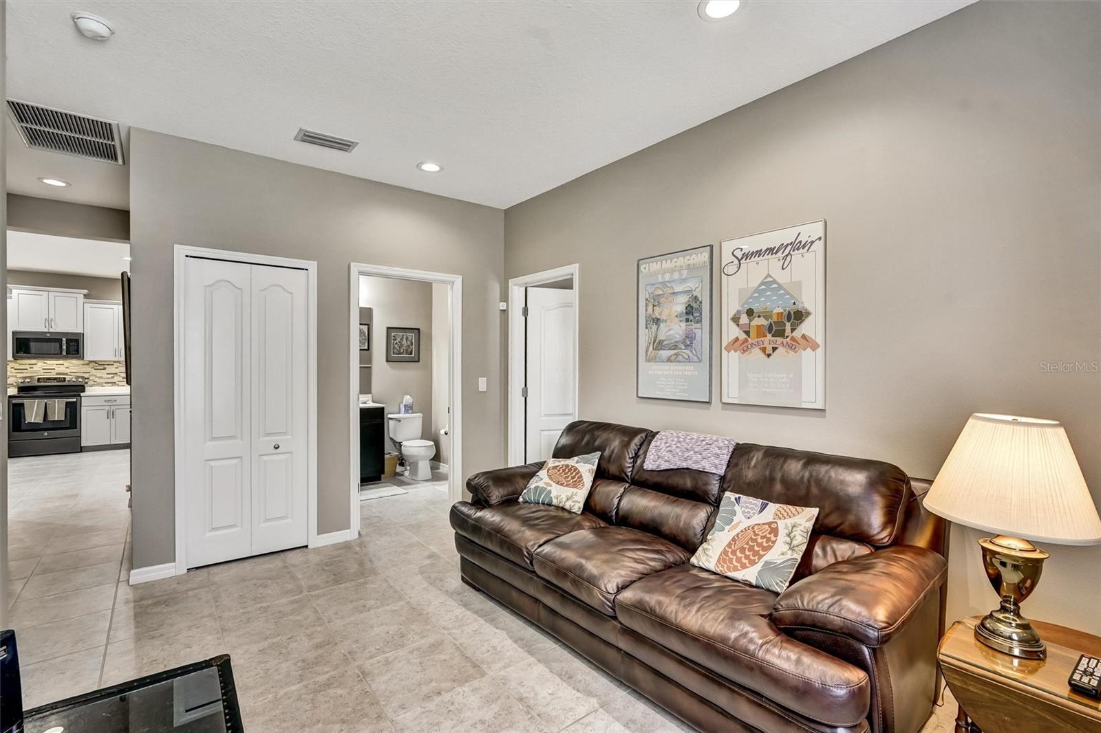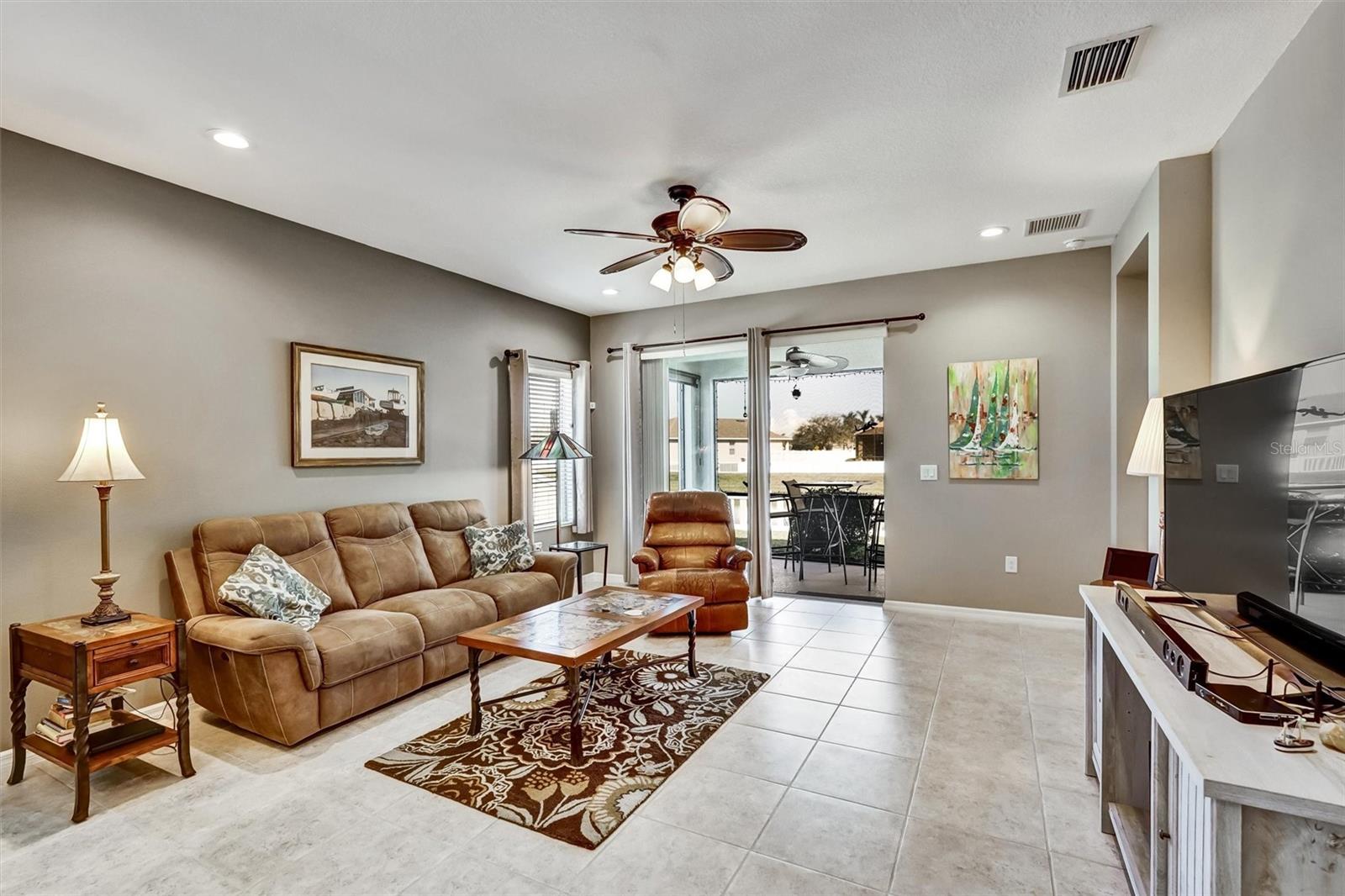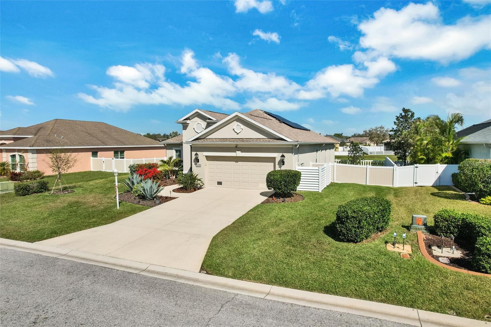 Major price Improvement! Move-In Ready 3-Bedroom plus Den, plus Office and 2-Bathrooms. Welcome to this lovingly maintained 3-bedroom, 2-bathroom home with a versatile den—perfect for an office, playroom, or guest space! This home features an open-concept living area with a bright and airy feel, plenty of natural light, and many updates. The kitchen is a chef’s dream, boasting stainless steel appliances, ample countertops and cabinet space, and a breakfast bar. The primary suite is a private retreat with a walk-in closet, water closet bathroom, dual sinks, and stall shower. Two additional bedrooms are spacious and comfortable, ideal for family or guests. Enjoy outdoor living in the screened lanai and beautiful water-view backyard, perfect for entertaining or relaxing. Located in Sugar Mills Lakes, this home is close to shopping, dining, parks, and top-rated schools. Many outstanding features include a new roof installed in 2024, including paid solar panels servicing the entire home, designer ceramic tile throughout the home except for bedrooms 2 and 3, a decorative oval glass entry door, a fenced rear yard, and an outdoor storage shed. Don’t miss this incredible opportunity—schedule your showing today!