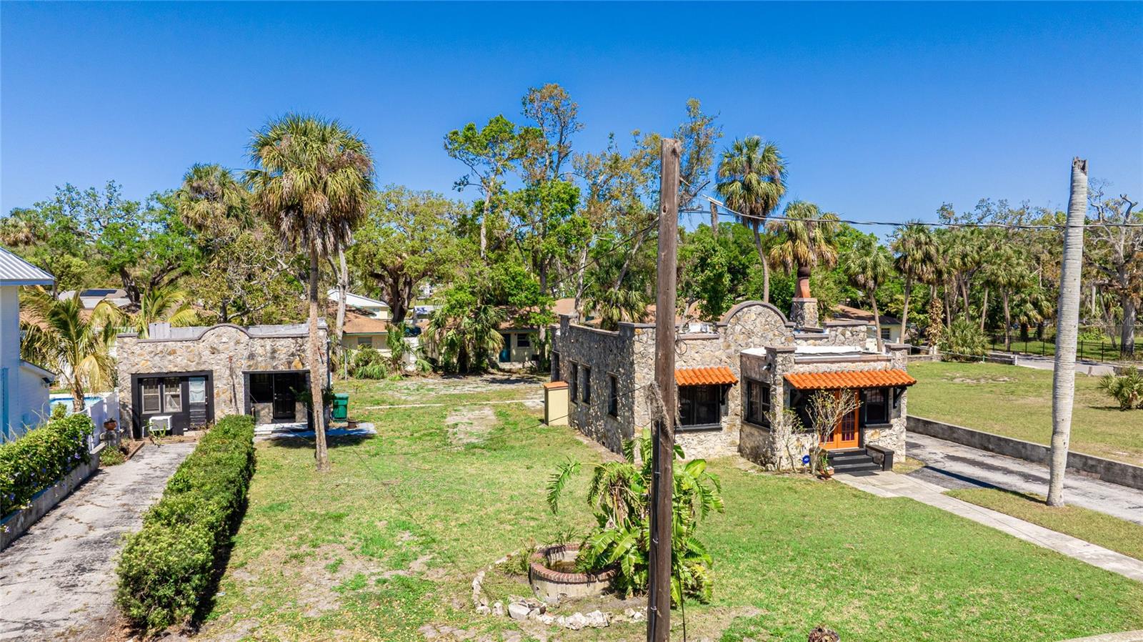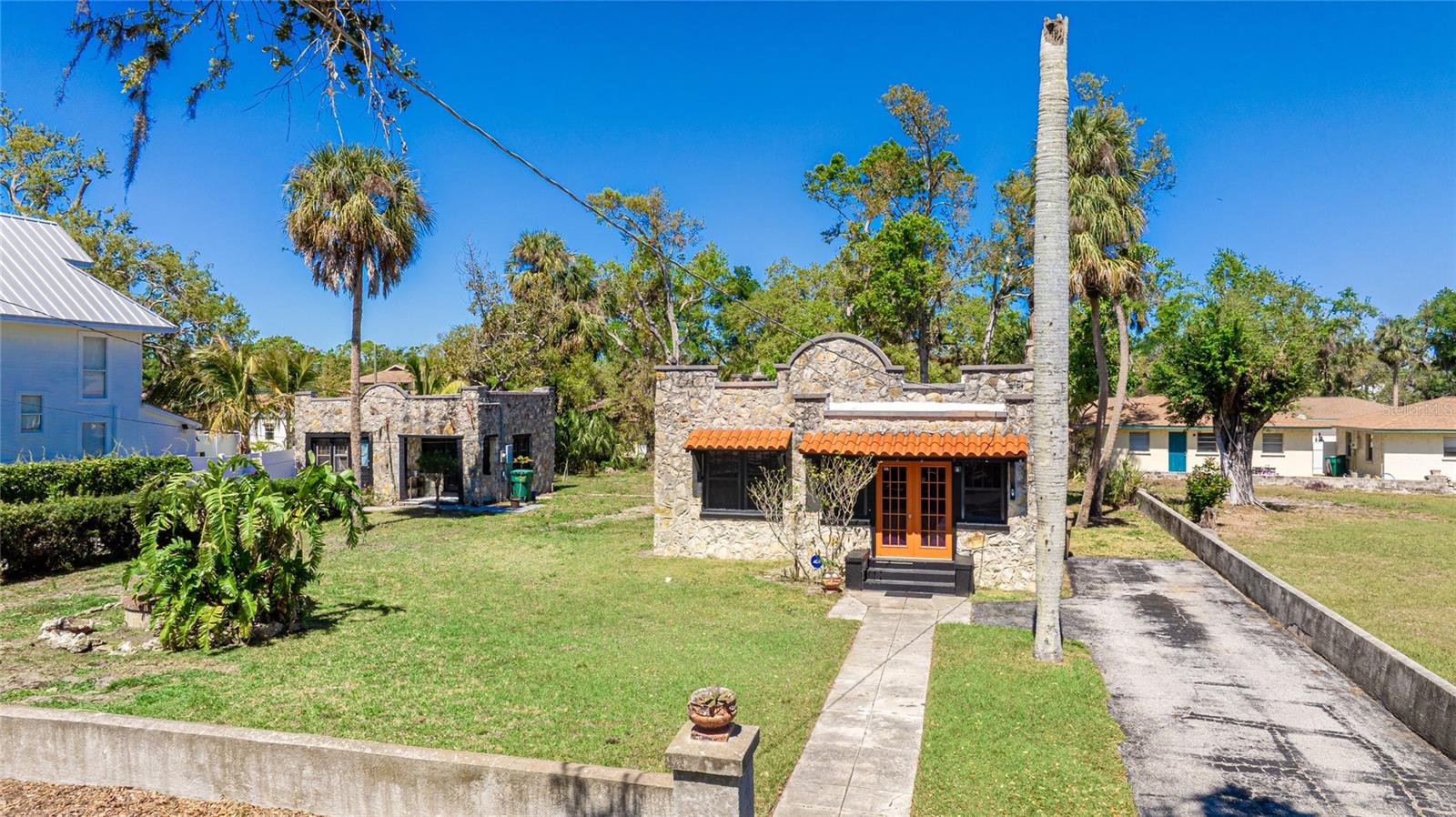 Under contract-accepting backup offers. One or more photo(s) has been virtually staged. CASH ONLY! Step into a timeless classic filled with warmth, character, and charm. This historic property has gracefully stood the test of time and is ready for its next chapter. Welcome to the "Castles by the Sea," a rare opportunity to own two 1925 homes in the heart of Historic Palmetto. Nestled on a generous lot, these castle-like residences combine enduring character with limitless potential. Whether you envision a full-time residence, a profitable investment, or a combination of both, this property offers incredible flexibility. The main home exudes vintage charm, featuring a cozy wood-burning fireplace, a bright breakfast nook, and spacious living areas that blend historic appeal with modern potential. With one bedroom and one bathroom, it provides the perfect canvas to embrace 1920s elegance while adding your personal touches and contemporary updates. Equally enchanting, the guest house offers a versatile studio layout with its own private driveway, full kitchen, and bathroom, ideal for guests or rental income. Free from rental restrictions, this property allows for short-term rentals, making it a lucrative opportunity for investors or homeowners seeking flexibility. Perfectly situated just minutes from the scenic Manatee River, local dining, shopping, and entertainment, and within easy reach of Bradenton, St. Pete, and Sarasota, the "Castles by the Sea" offer the perfect balance of historic charm and modern convenience.