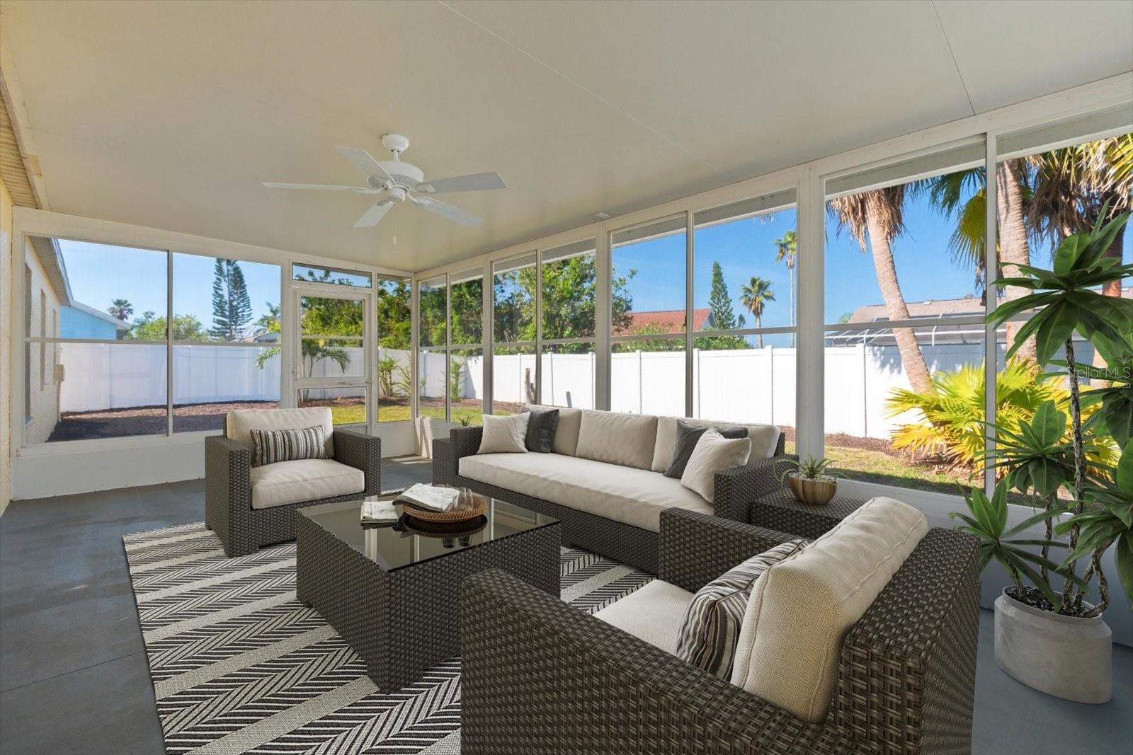 One or more photo(s) has been virtually staged. BACK ON THE MARKET AFTER BUYER FINANCING NOT APPROVED! Move-In Ready 3-Bedroom Home in Bayou Estates North – Recently Remodeled! Welcome to this beautifully updated 3-bedroom, 2-bath home with a 2-car garage in the conveniently located Bayou Estates North community. With a thoughtfully designed open floor plan, this home boasts high vaulted ceilings, creating a spacious and airy feel throughout. The combined entry, living, and dining areas seamlessly flow into the eat-in kitchen, which features a breakfast bar, granite countertops, a pantry closet, ample storage, and newer stainless steel appliances. Double sliding doors lead to the newly rescreened covered lanai with new vinyl panels in the sliders and a ceiling fan—perfect for year-round enjoyment. The spacious primary suite offers a generous walk-in closet and an ensuite bath with a walk-in shower. Two comfortable guest bedrooms share a full bathroom with a tub/shower combination. Professionally cleaned tile flooring runs through the main living areas, while plush new carpeting adds warmth to all three bedrooms. A long list of recent updates makes this home truly move-in ready, including a freshly painted exterior, newly textured and painted ceilings, neutral interior paint, upgraded 5 ¼” baseboards throughout, new lighting, ceiling fans and blinds, a brand-new hot water heater and a new garage door opener. The roof was replaced in 2016, and the A/C was updated in 2018. Outside, the large fully vinyl-fenced backyard provides privacy and space for outdoor activities. With low HOA fees of just $25/month, no CDD fees, and no flood zone concerns, this home is a fantastic option for first-time buyers, seasonal residents, or investors. Located just minutes from major routes to Tampa, St. Pete, Sarasota, and the Gulf Coast beaches, this hidden gem is also close to the Manatee River, public boat ramps, marinas, shopping and dining in the charming downtowns of Palmetto and Bradenton. Don’t miss this incredible opportunity—schedule your showing today!