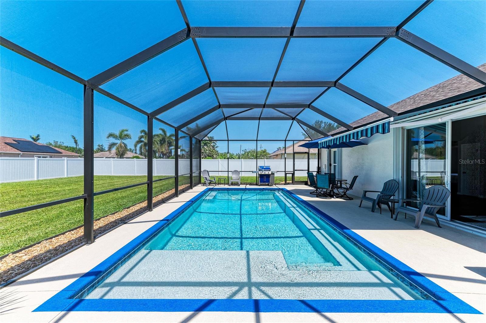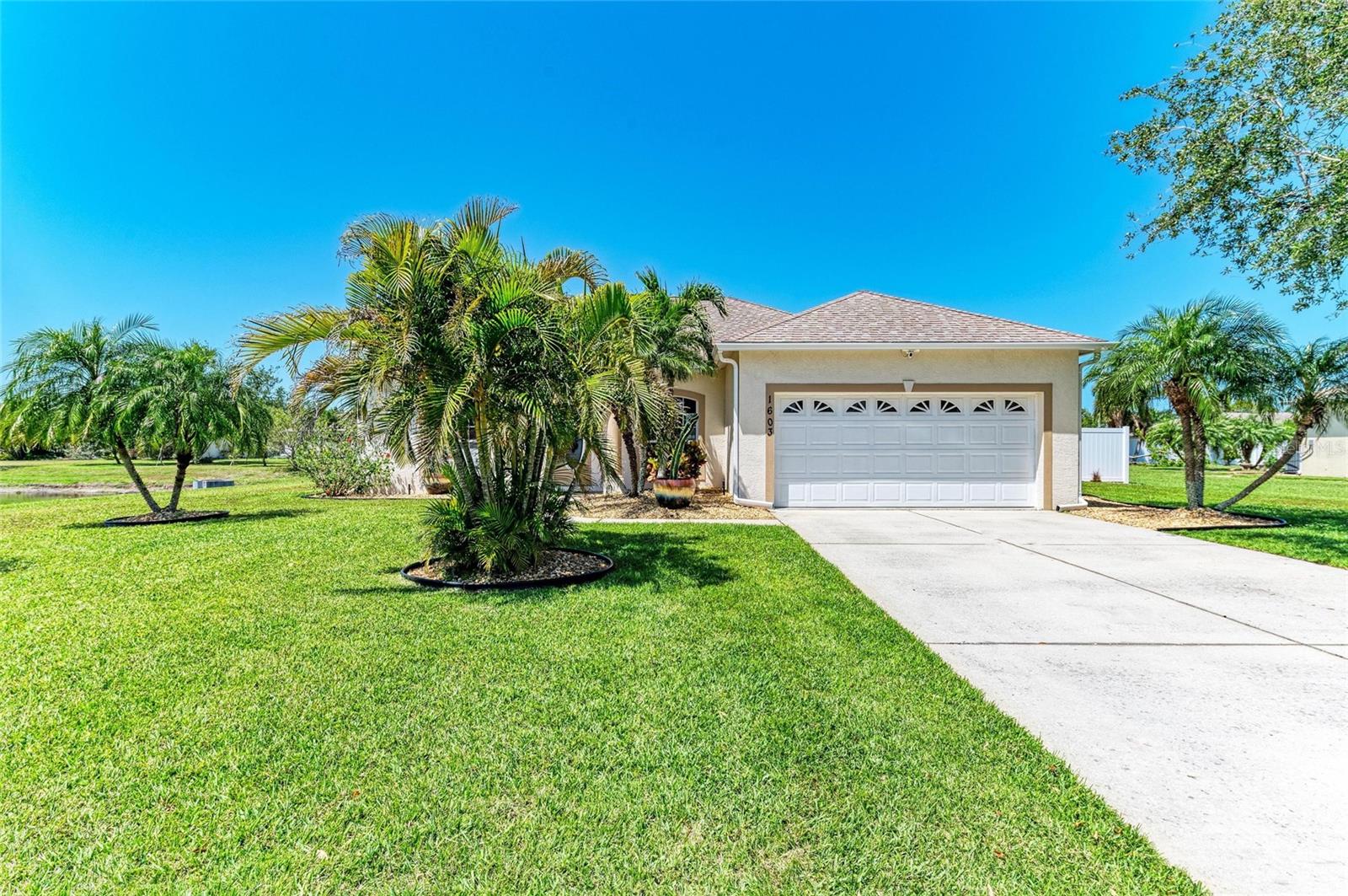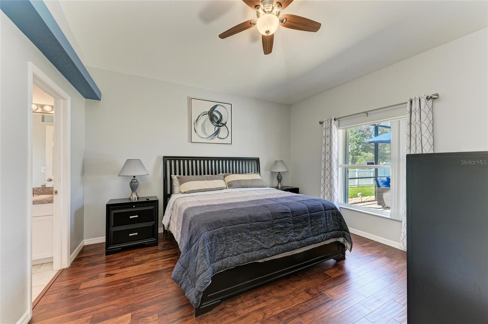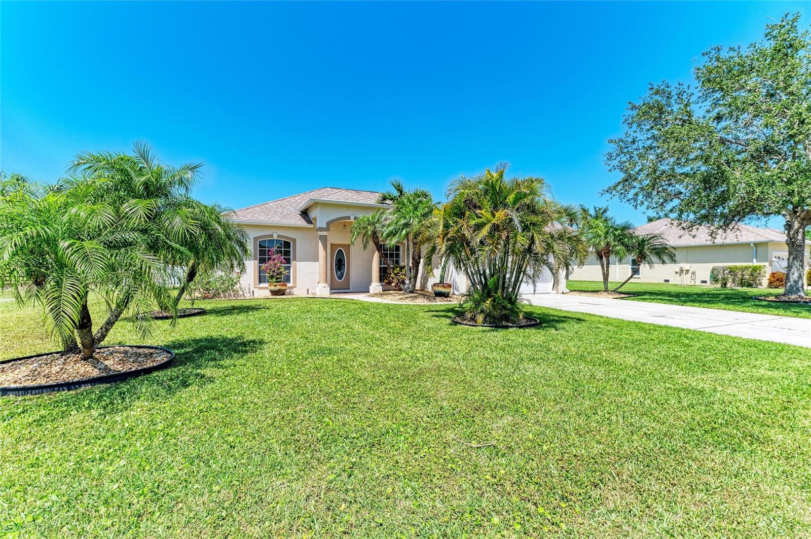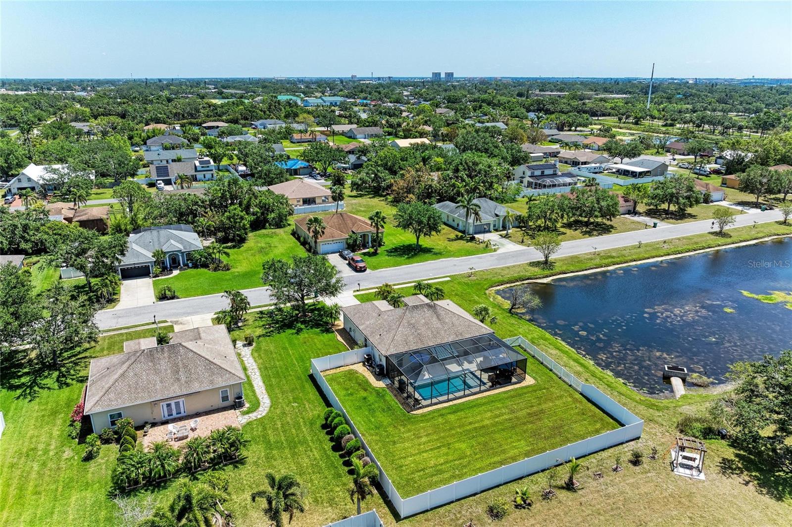 Welcome to Palm Lake Estates - a pleasant, quiet community of 36 homes conveniently located to shopping amenities and schools while opening the door to the natural world opportunities of Emerson Point Preserve at the tip of Snead Island. Situated on an oversized lakefront parcel, this lovely home provides comforts and vistas. Volume ceilings and openness define this three bedroom/two bath home with spacious den. Wood plank flooring flows throughout, enhanced by fresh neutral walls with coastal blue accents, attractive ceiling fixtures and light filled space. The kitchen features plentiful cabinetry and an island for communal gathering. The expansive living room overlooks a new large screened lanai and heated salt water pool. Stylish outdoor furniture beckons all - to a day of relaxation, exercise, entertaining. The backyard is completely fenced with new vinyl fencing while still affording a view of the lake beyond. This lovely home also offers a two car garage, laundry room, storm shutters, and attractive awnings. Offered TURN-KEY FURNISHED less personal exceptions.