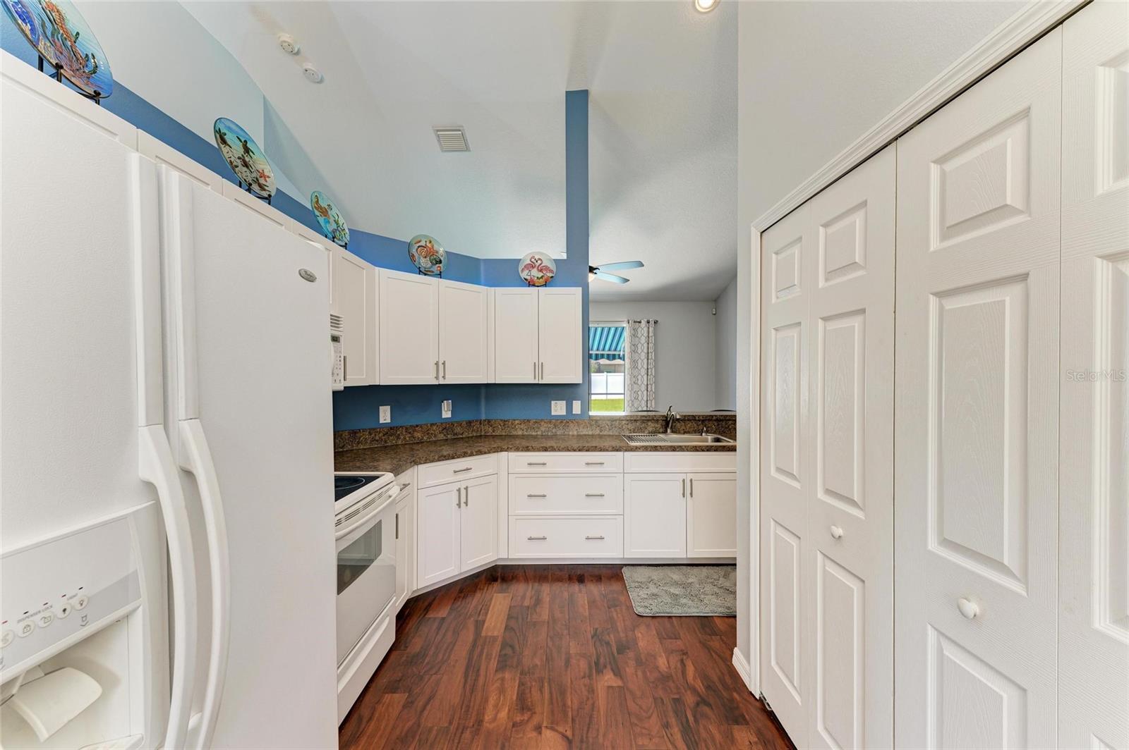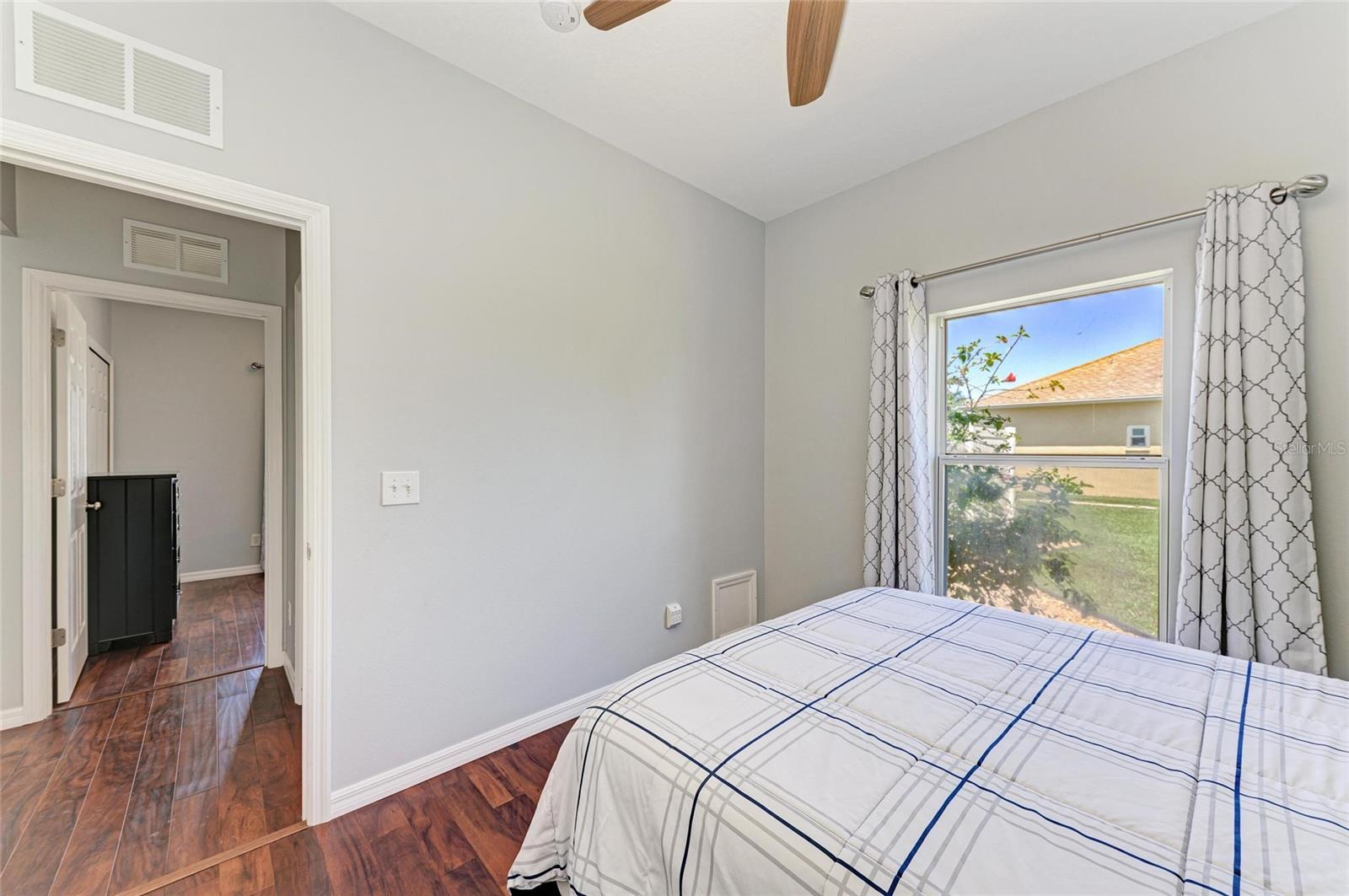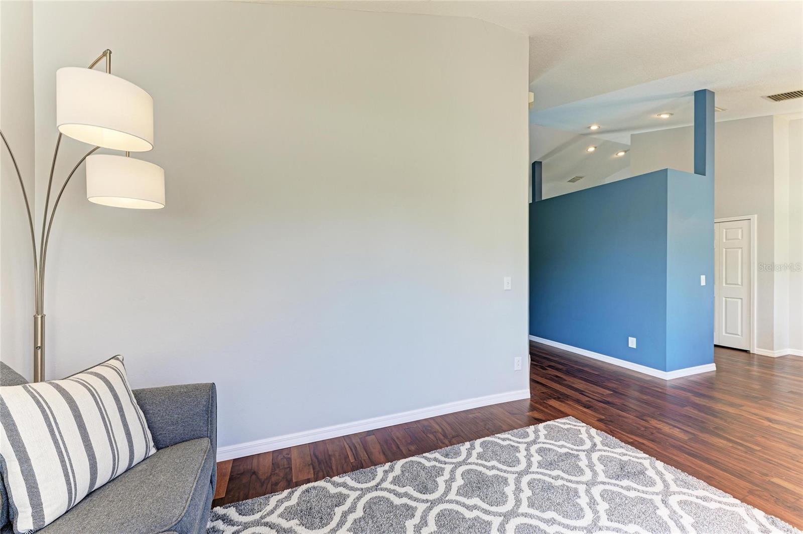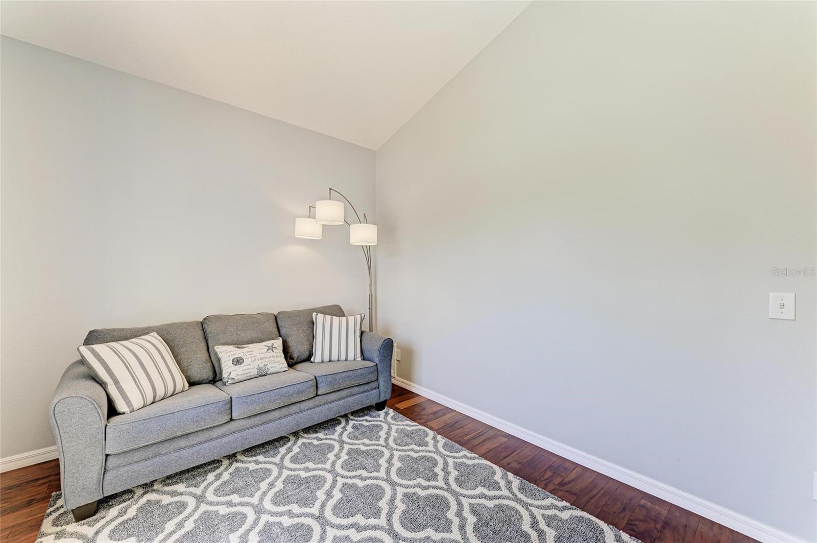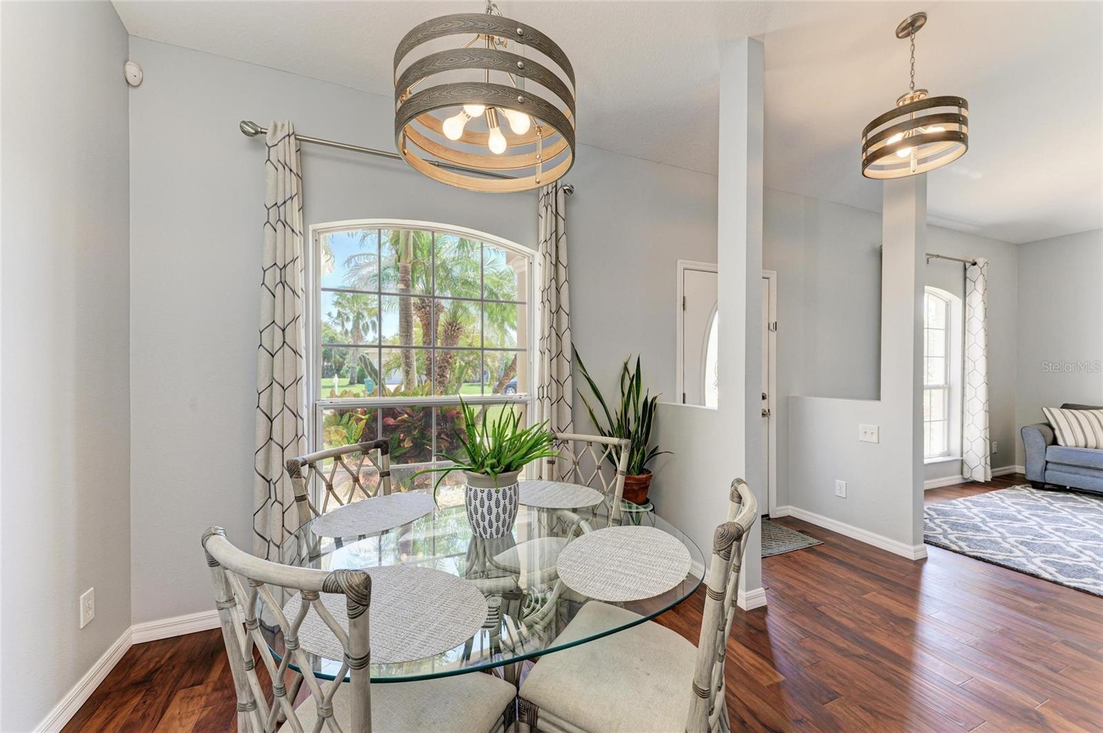 Welcome to Palm Lake Estates - a pleasant, quiet community of 36 homes conveniently located to shopping amenities and schools while opening the door to the natural world opportunities of Emerson Point Preserve at the tip of Snead Island. Situated on an oversized lakefront parcel, this lovely home provides comforts and vistas. Volume ceilings and openness define this three bedroom/two bath home with spacious den. Wood plank flooring flows throughout, enhanced by fresh neutral walls with coastal blue accents, attractive ceiling fixtures and light filled space. The kitchen features plentiful cabinetry and an island for communal gathering. The expansive living room overlooks a new large screened lanai and heated salt water pool. Stylish outdoor furniture beckons all - to a day of relaxation, exercise, entertaining. The backyard is completely fenced with new vinyl fencing while still affording a view of the lake beyond. This lovely home also offers a two car garage, laundry room, storm shutters, and attractive awnings. Offered TURN-KEY FURNISHED less personal exceptions.