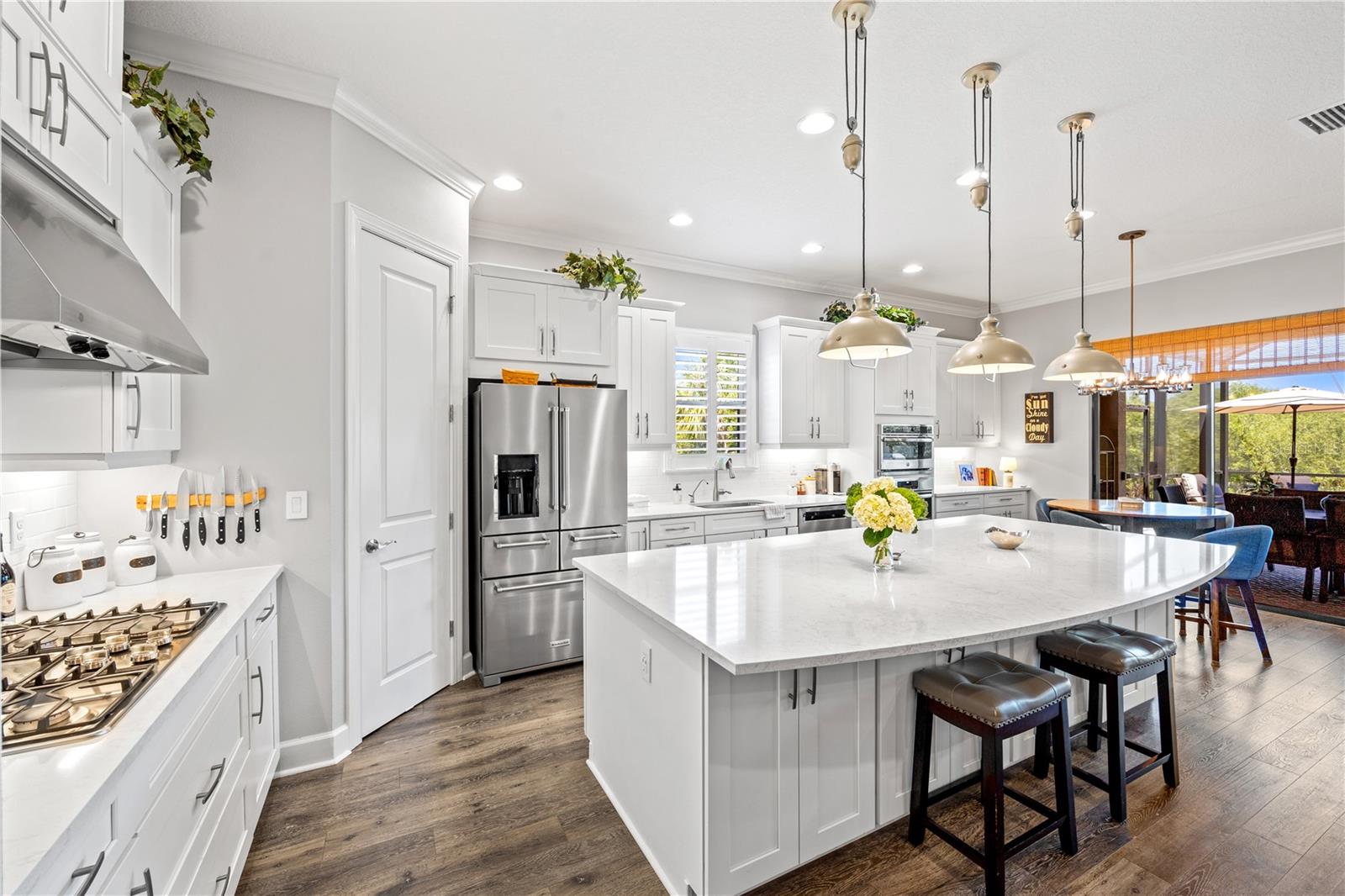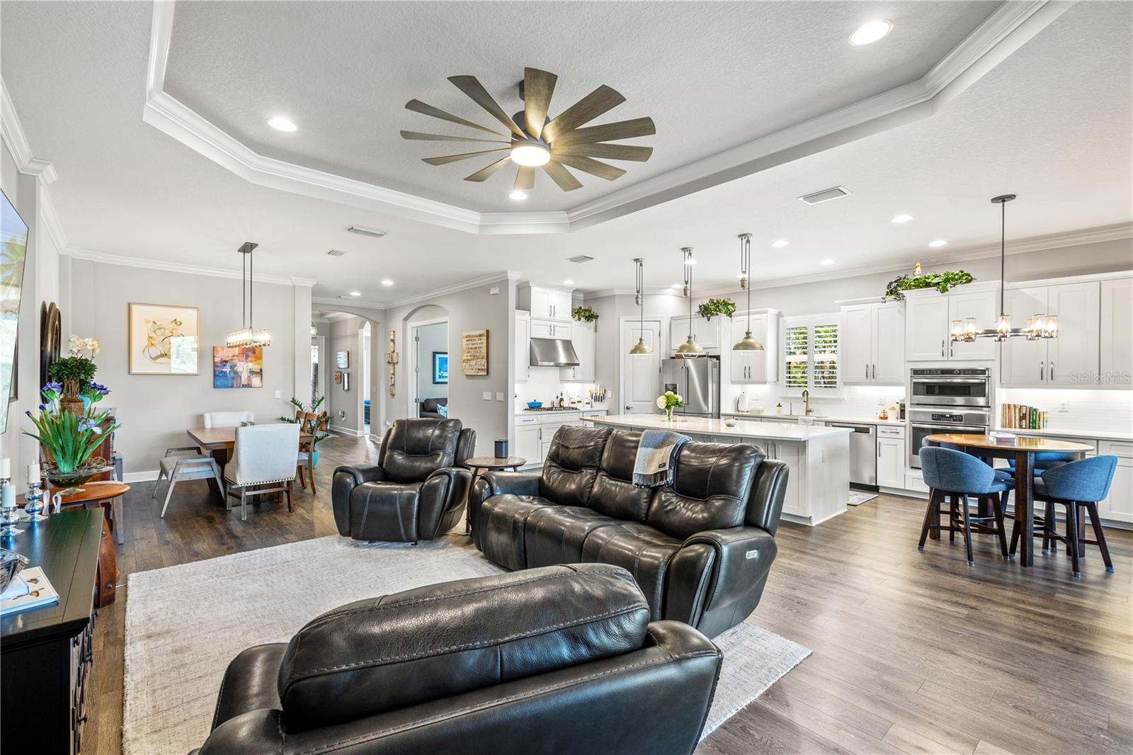 Gorgeous, Upgraded Home with Assumable 2.8 Interest Rate - Resort Style Florida Living in the gated community Esplanade at Artisan Lakes! This stunning 3-bedroom, 3-bath home with office/den is loaded with upgrades and shows like a model. Nestled on a premium lot with serene pond and conservation views, this property offers a unique sense of privacy on a spacious lot in a beautifully planned community - all in a no-flood, no-evacuation zone. Experience superb craftsmanship not found in new home builds. The open floor plan is thoughtfully designed with attention to detail from tray ceilings, luxury vinyl flooring, plantation shutters, finely crafted moldings, custom lighting, and stylish fans throughout. The gourmet kitchen features quartz countertops, 42" wood cabinetry, professional series stainless steel appliances, and an added casual dining area. The sunlit living areas flow effortlessly for entertaining and everyday comfort. The custom lanai with outdoor kitchen, fire pit is perfect for relaxing or entertaining. The home includes custom laundry, an extended 2-car garage, and zero-entry access front and back. Smart features include electronic locks, switches, and a Generac generator for peace of mind. Amenities include: 2 resort-style amenity centers, pools and spas, pickleball and tennis courts, fitness center, and a full calendar of activities. The HOA is all-inclusive and covers lawn maintenance, cable/internet, all amenities, and more - offering excellent value. This home and community is a lifestyle upgrade located conveniently to Tampa, St Pete, Sarasota, and the Coastal Beaches. This is an exceptional, must-see property!