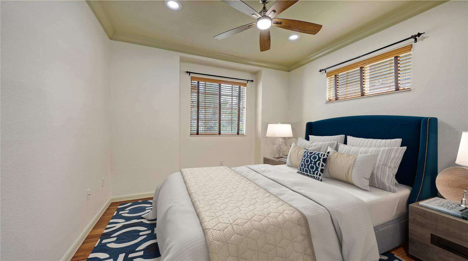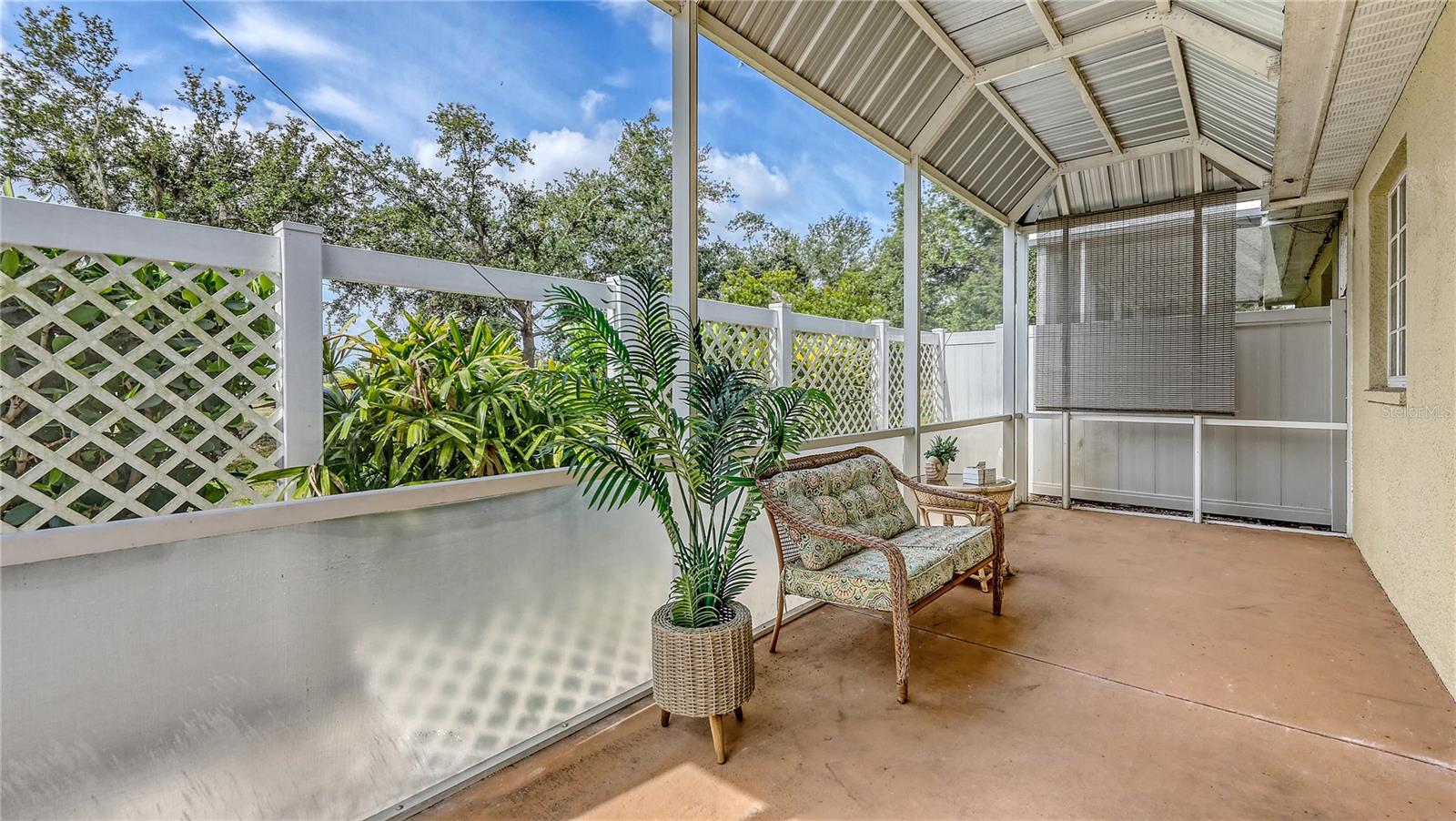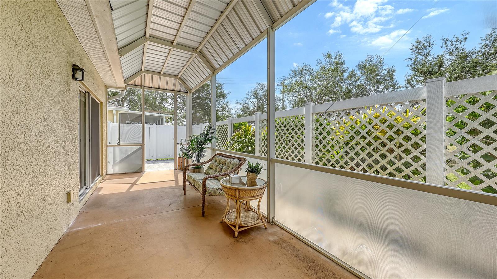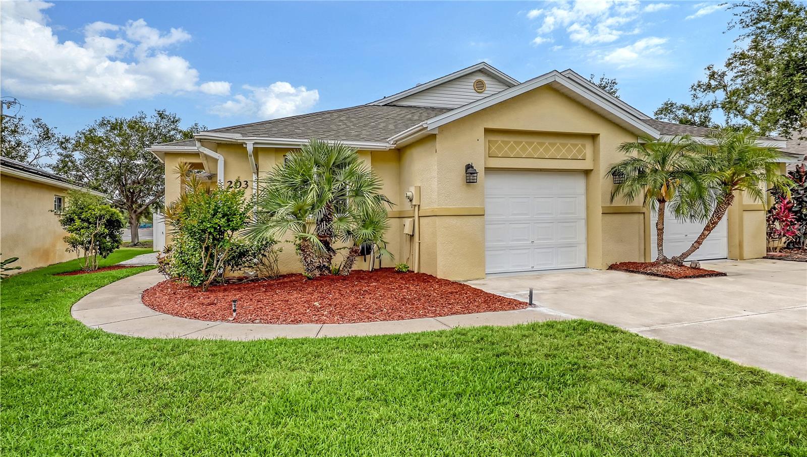 One or more photo(s) has been virtually staged. Welcome to your serene sanctuary at 203 28th St W—a beautifully updated home nestled in a charming community boasting low HOA fees and no CDD costs. From the moment you approach, you're greeted by meticulously maintained landscaping, lush greenery, and an inviting Zen garden vibe that promises privacy, relaxation and tranquility within your screened lanai. This inviting residence showcases fresh interior paint and stylishly updated door handles throughout, providing a modern touch that complements the newly installed roof. Once inside you will discover an airy, open floor plan highlighted by vaulted ceilings and stunning wood-look flooring, creating an atmosphere of effortless elegance. The heart of the home is the thoughtfully updated kitchen featuring an eye-catching shiplap breakfast bar, sleek cabinetry, trendy backsplash, and contemporary lighting—ideal for both everyday living and entertaining guests. Retreat to the spacious bedrooms, each thoughtfully designed with ample storage, ensuring comfort and convenience. The attached one-car garage is both practical and organized, complete with built-in cabinets and an overhead storage rack for optimal space utilization. Perhaps the home's rarest gem is found outdoors—a serene, screened lanai and private backyard patio, complete with highly coveted rear water hose access, a unique feature seldom found in the Vilas at Oak Bend, providing added convenience to water your garden in your outdoor paradise. Perfectly suited for morning meditations, intimate gatherings, or simply unwinding after a long day, this outdoor oasis truly captures the essence of peaceful living. This residence offers not just a home, but a lifestyle—move-in ready and perfectly positioned for those seeking harmony, convenience, and beauty in one remarkable package.
