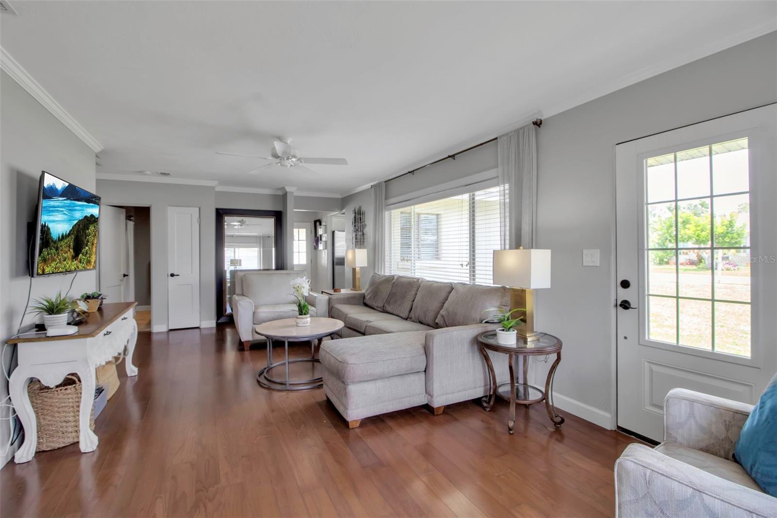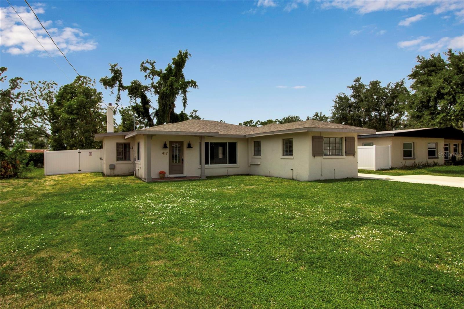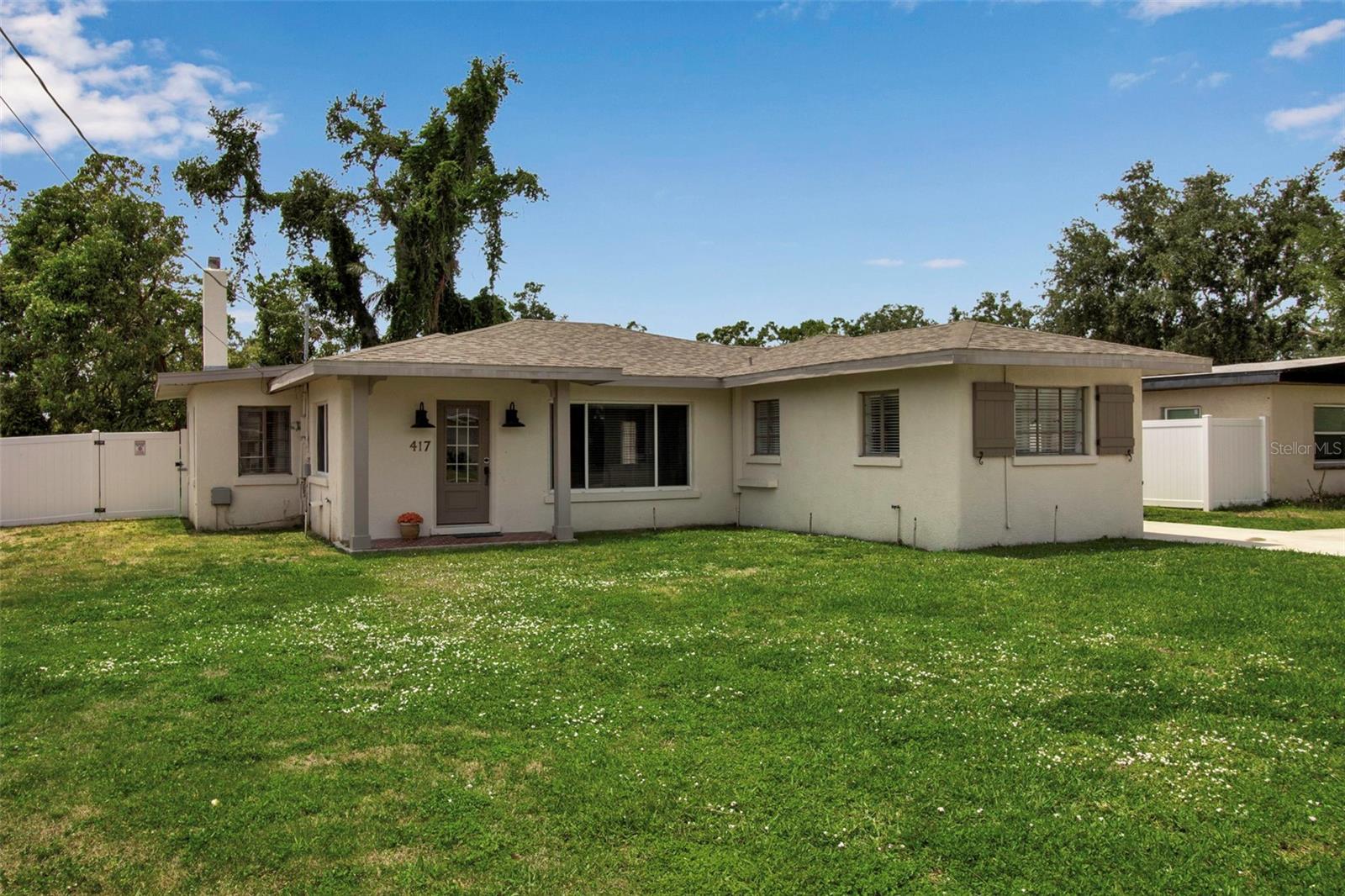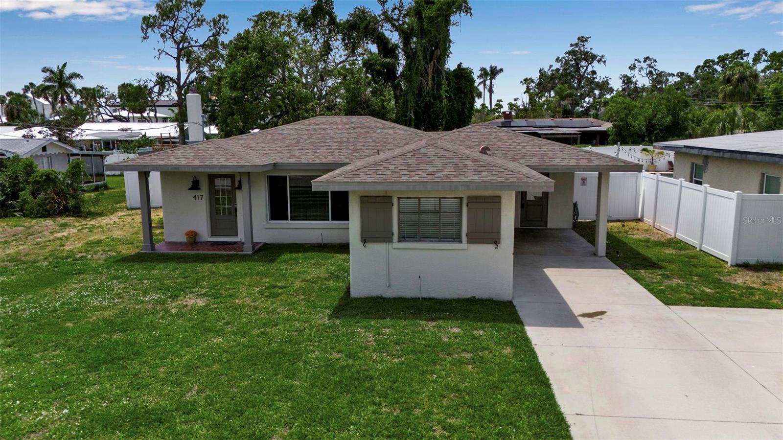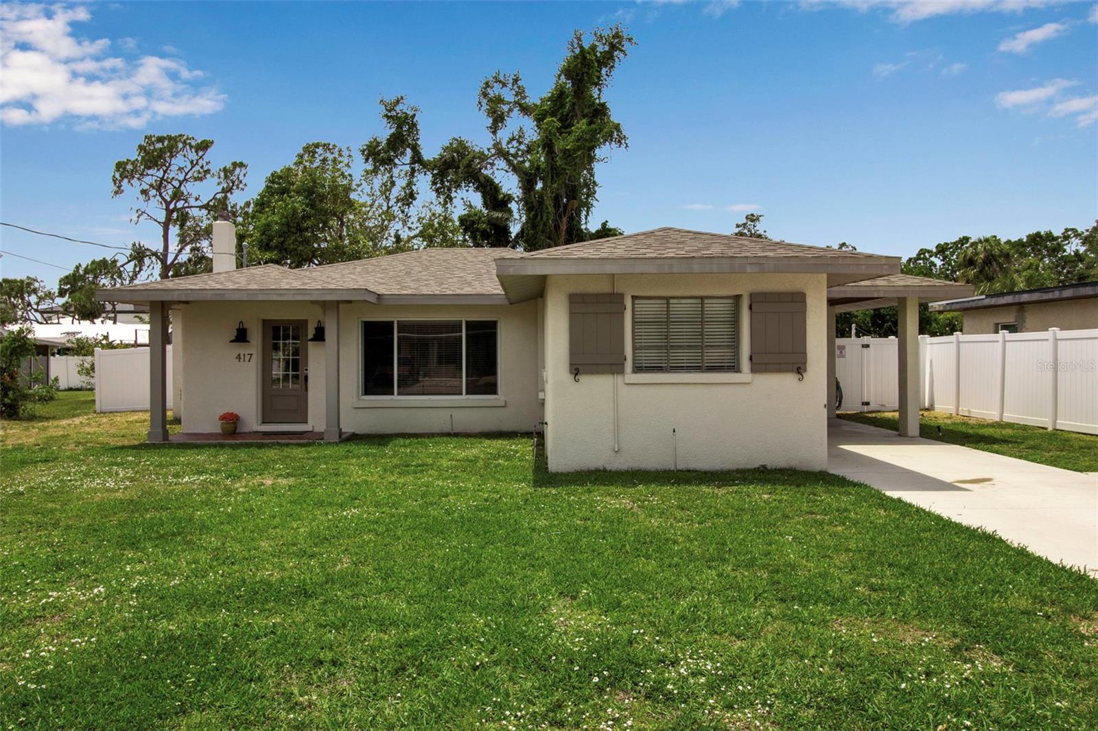 Welcome to this beautifully updated 2-bedroom, 1-bath single-family home nestled on an oversized, fenced lot in a quiet neighborhood near the breezy Manatee River. Step inside to discover a stylish interior featuring engineered hardwood flooring throughout and several new windows that fill the home with natural light. The kitchen is a standout with its sleek stainless steel appliances, gas range, crisp bright shaker-style cabinetry, granite countertops, and an extended cabinet area perfect for a coffee bar or additional storage. The open layout provides comfortable living space, ideal for relaxing or entertaining. An enclosed storage room off the carport houses the washer and dryer, offering a convenient laundry area with space for tools or seasonal items. A second bonus storage room has also been thoughtfully added to the rear of the home, providing even more flexible space for hobbies or organization. Roof was replaced in 2018. Enjoy the peace and charm of this lovely neighborhood just moments from riverfront breezes, parks, and local amenities. Don’t miss this opportunity to own a move-in ready home with modern features!