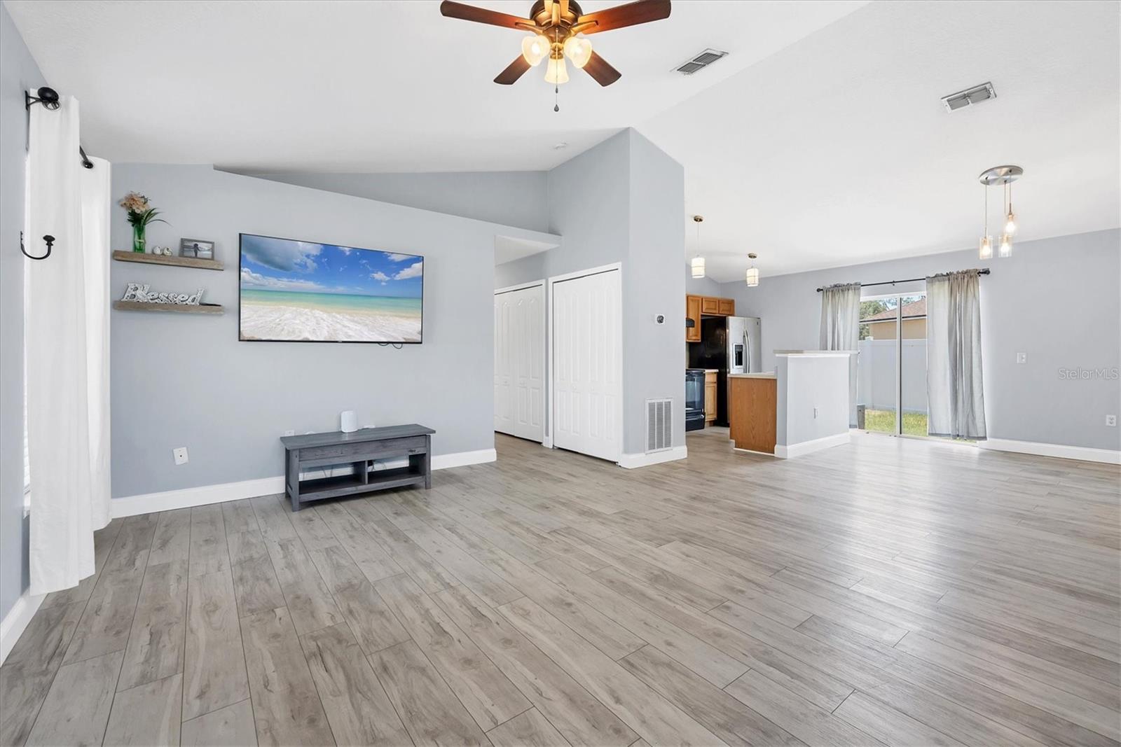 One or more photo(s) has been virtually staged. Welcome to your dream Florida oasis! This stunning 3-bedroom, 2-bath home in North Palmetto perfectly blends space, style, and convenience. As you step inside, you'll discover bright, airy rooms that make you feel right at home. The thoughtful floor plan features vaulted ceilings, a spacious Great Room, and a delightful eat-in Kitchen/Dining Room combo, complete with sliding doors that open to the backyard, allowing an abundance of natural light to fill the living spaces. This layout is ideal for entertaining friends and family. The Primary Suite includes a generous built-in closet and an ensuite bathroom with a walk-in shower. The two additional bedrooms provide comfortable accommodations for guests or can serve as a quiet workspace for your home office. A fully fenced in back yard offers privacy and a great outdoor space to relax. This move-in ready home is equipped with all the essentials, including indoor laundry and a two-car garage for your convenience. Nestled in the Gillette Grove community, you’ll benefit from no CDD fees and a low HOA, all while being just minutes from US 41 and I-75, making your commute to Tampa or Sarasota easy. With nearby shopping, dining, and gas stations, this home is perfect for retirees, snowbirds, first-time buyers, or small families. Is this home your perfect match? Book a showing today.