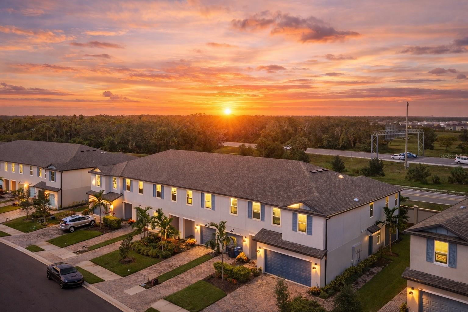 Built in 2023 and move-in ready, this upgraded 3-bedroom, 2.5-bath townhome with a 1-car garage offers modern construction without the wait. Located in the gated community of Trevesta, the home features plank ceramic tile flooring, impact windows, a gourmet kitchen, barn door accents, ceiling fans, and a saltwater water softener system. A covered, screened patio extends the living space and captures Florida sunsets with ease. The second level is anchored by a spacious primary suite with walk-in closet and private bath featuring a walk-in shower and separate water closet. Two additional bedrooms share a full bath with dual sinks, and the upstairs laundry room adds everyday convenience. A main-level half bath serves guests and common living areas. Trevesta delivers a resort-style lifestyle with a clubhouse, pool, fitness center, and playground, all within a centrally located community offering convenient access to Bradenton, Sarasota, Tampa, St. Petersburg, and Gulf Coast beaches. Ideal for buyers seeking newer construction, low maintenance living, and immediate occupancy in a well-established neighborhood.