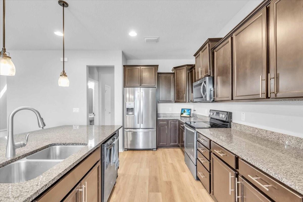 Welcome to this inviting lakefront home offering the perfect blend of comfort, style, and peace of mind. With 3 bedrooms, 2.5 bathrooms, and a spacious loft, this residence was thoughtfully designed to fit both everyday living and entertaining.The open-concept main floor showcases a bright family room, dining area, and a modern kitchen with stainless steel appliances, ample cabinetry, and a large center island that serves as the heart of the home. New luxury vinyl plank flooring, plush carpet, and a brand-new AC system ensure a fresh and worry-free lifestyle for the next owner. Upstairs, the generous primary suite features an en suite bath with a soaking tub, walk-in shower, and dual sinks, creating a private retreat. Two additional bedrooms and a versatile loft provide flexible living space for family, guests, or a home office. Step outside to a fenced backyard overlooking the lake which is the perfect setting for morning coffee or evening relaxation. This home also comes with hurricane shutters, offering added safety and peace of mind. The HOA makes life even easier with access to a clubhouse, resort-style pool, fitness center, and scenic walking paths, so every day feels like a getaway. With major updates already complete and community amenities at your fingertips, this home is truly a stress-free, move-in-ready opportunity for today’s buyer.