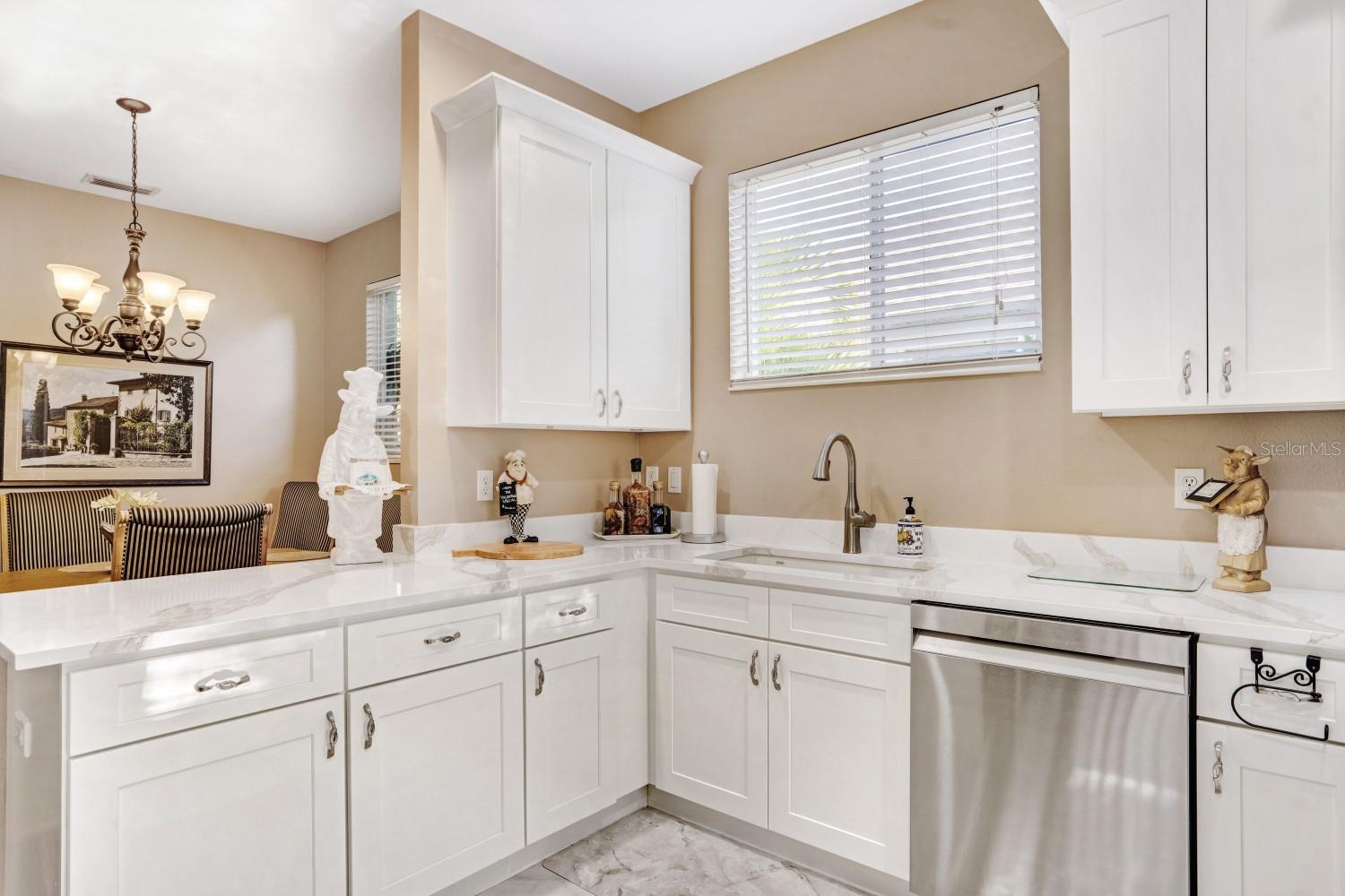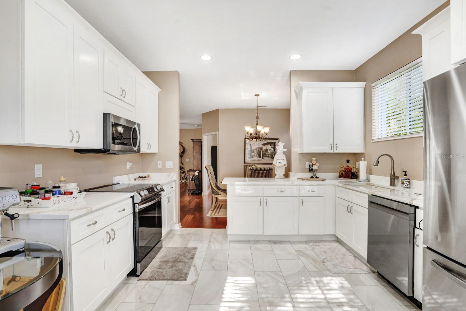 REMODELED AND MAINTAINED METICULOUSLY, SHOWS LIKE A MODEL HOME ** SERENE LOCATION IN SOUGHT-AFTER IMPERIAL LAKEWOODS ** OPEN FLOOR PLAN with BEAUTIFUL NATURAL LIGHTING and LUSH NATIVE LANDSCAPE THROUGHOUT THIS PRIVATE LOT ** Look no further than this freshly renovated 2-3 bedroom (+ office/den/3rd bedroom) 2 bath luxury home, with a 2-car garage. This is concrete block construction, all located on one floor (single story). The roof was replaced in 2020 which the insurance company will reward you for. In 2022 this home underwent an extensive renovation that included a brand-new kitchen and complete resurfacing of the hardwood flooring. The kitchen provides a coastal modern complexion with light shaker cabinets (premium 42” uppers), top-of-the-line cambria quartz countertops and a full-suite of stainless appliances. New tile flooring was installed in areas outside of the hardwoods including both bathrooms, along with new carpeting in the bedrooms. Simply put, this home is built for entertaining friends and family with an abundance of joyful natural light, expansive patio that is fully screened and a beautiful new kitchen.. Fairways at Imperial Lakewoods is sought-after due to its prime location directly off I-75, providing quick access to St Pete or Sarasota. Grocery shopping (Publix) sits directly outside the neighborhood with new construction schools and numerous golf courses within minutes. This floor plan lends itself perfectly to the second homeowner or primary residence that desires low insurance costs and energy efficient utilities. Call Today to View ** Priced to Sell