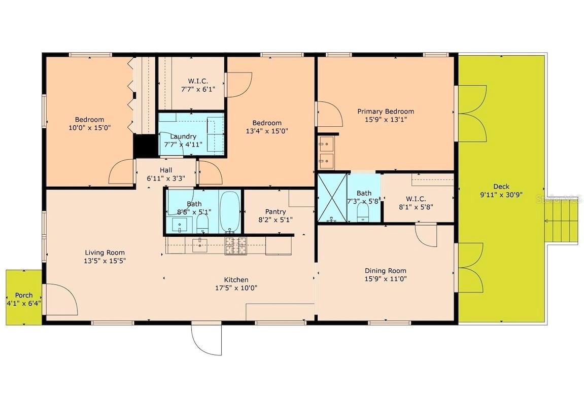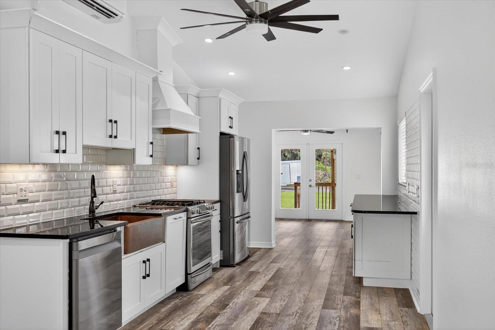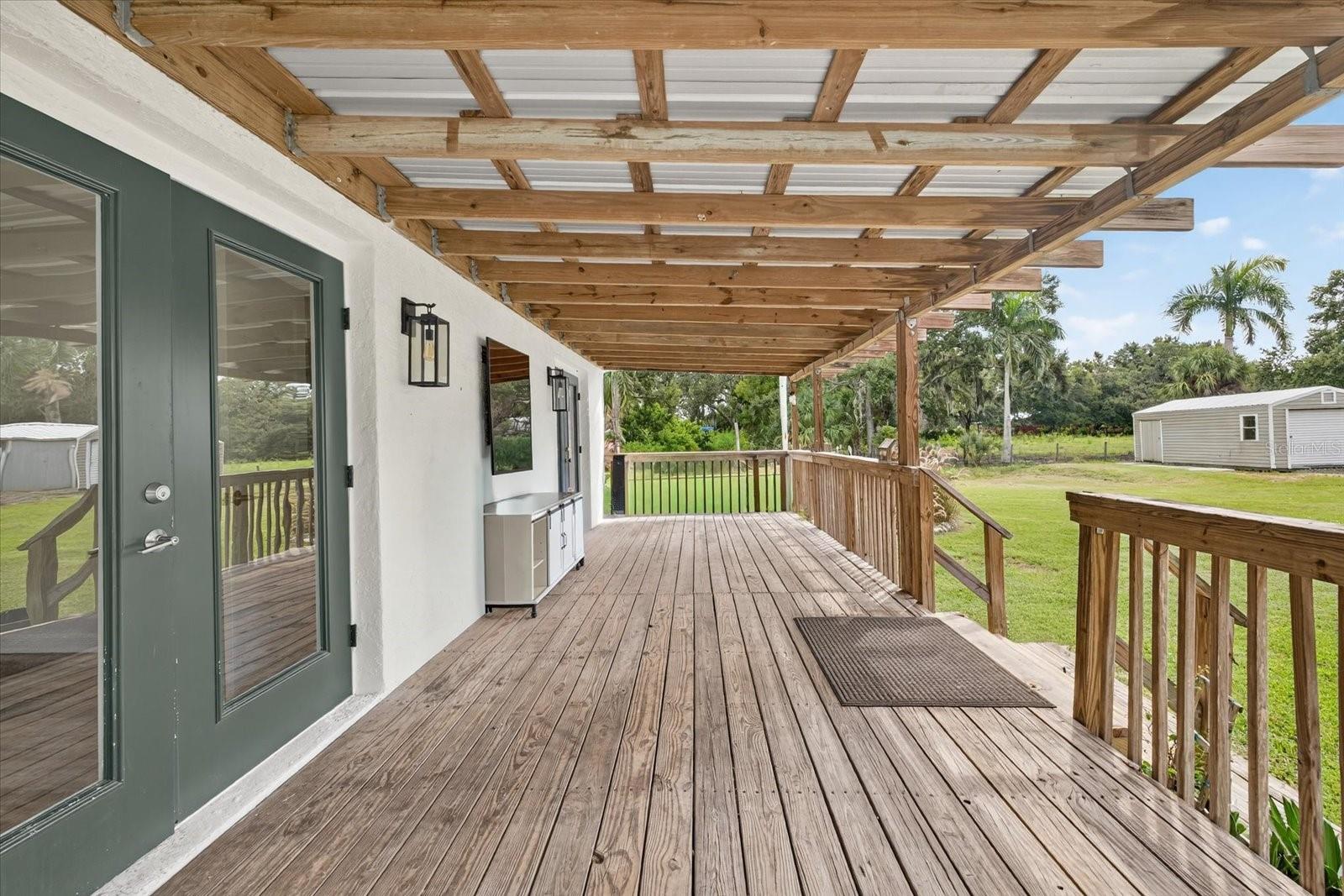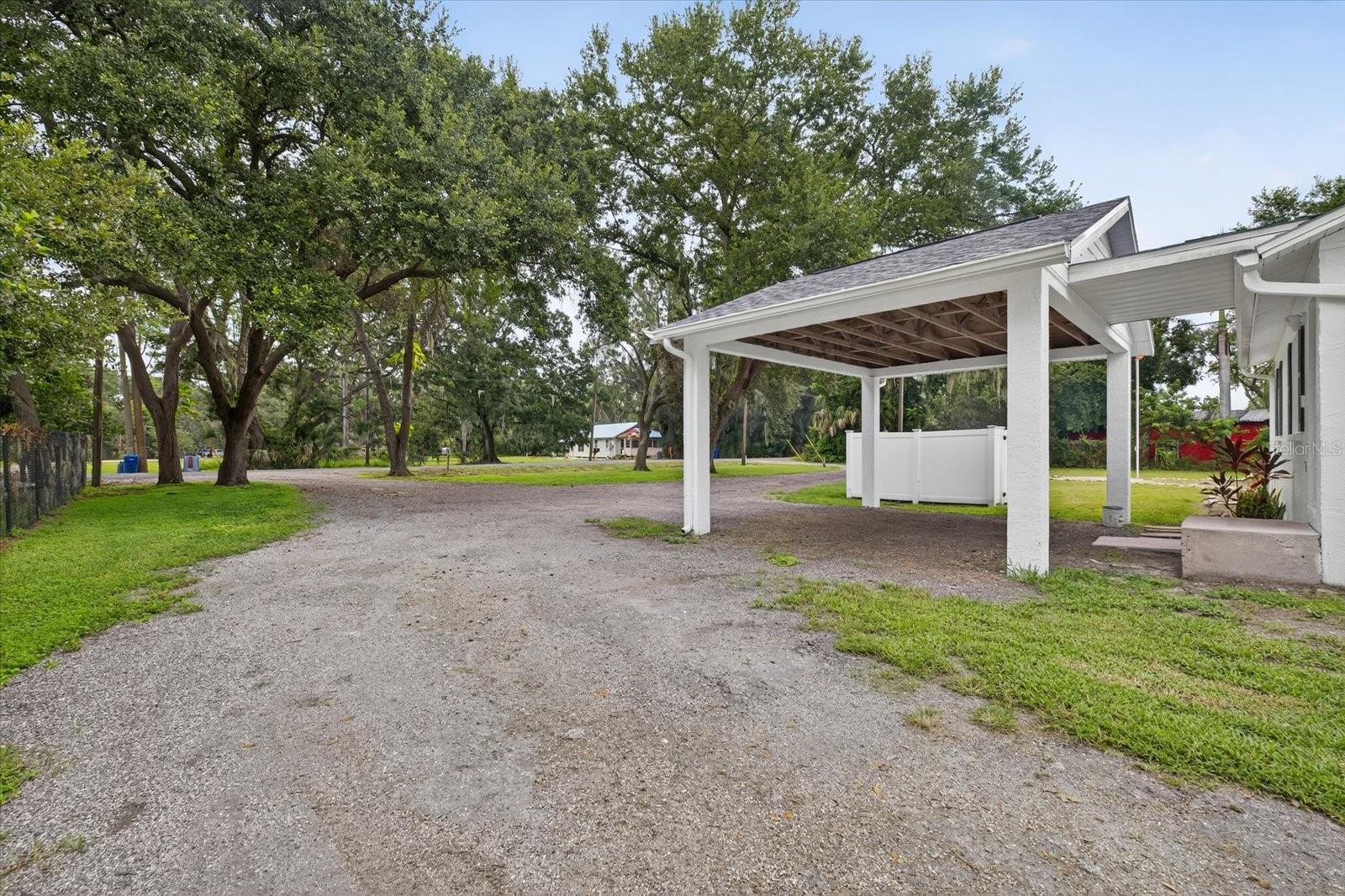 Private, quiet one-acre property in the heart of expanding residential and commercial development—greatly functional layout and endless potential. This 3 bed 2.5 bath home features an updated kitchen with walk-in pantry, renovated baths including a spacious primary shower with dual sinks, two walk-in closets plus custom shelving in every closet, and a centrally located laundry room with custom cabinetry. A large back porch serves as the perfect gathering space overlooking a fully fenced yard. Huge circle driveway and back yard drive-through access. Outdoor living shines with a 1,300 sq. ft. putting and chipping green, axe-throwing board, chicken coop, and dog pen. Three versatile outbuildings expand the use of the property: two are air-conditioned, one for storage/garage, and one is built as a true armory with steel bars throughout the walls, ceilings, doors, and windows plus battery-backup security. Another with a cozy front porch and half bath is ideal for a home gym, office, or hobby space. Energy efficiency upgrades include spray-foam attic insulation and a whisper-quiet, zone-controlled ductless mini-split system (~5 yrs), paired with newer appliances (washer, dryer, refrigerator, dishwasher ~3 yrs) and a roof about 7 yrs. Conveniently located yet tucked away, this property offers a lot today with endless potential for tomorrow.