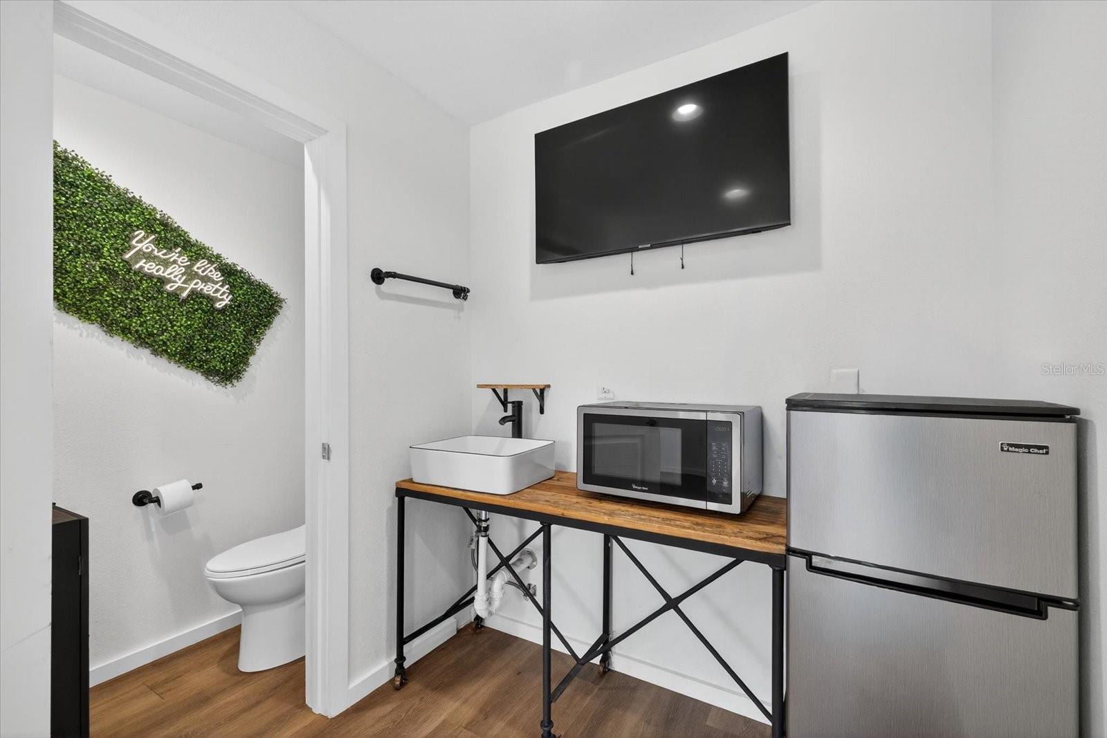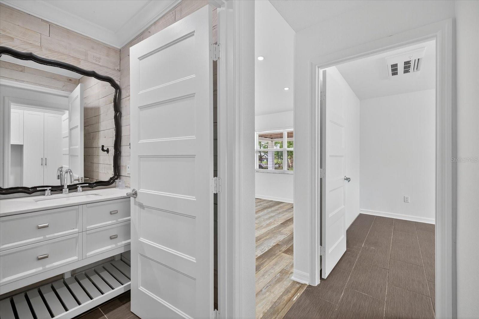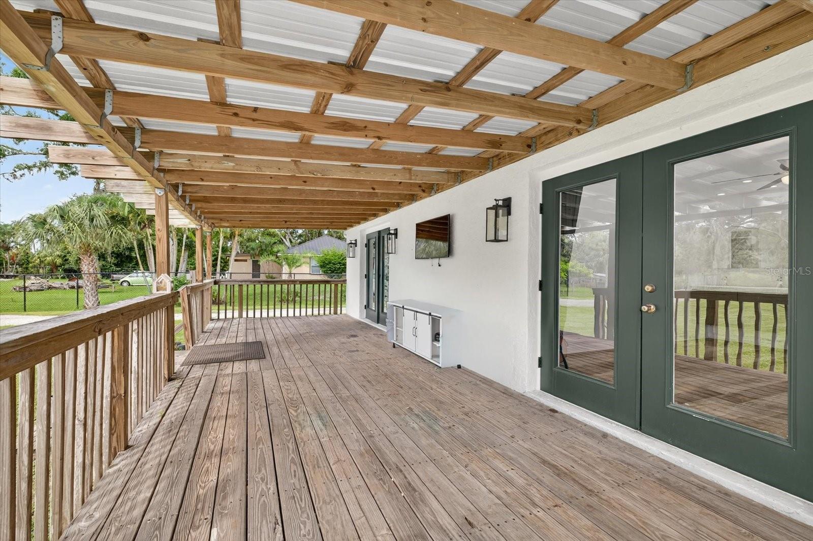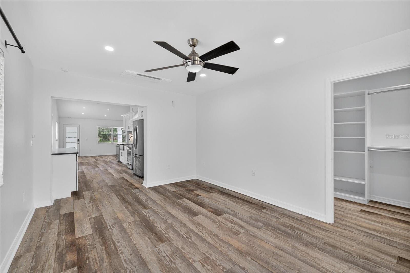 Private, quiet one-acre property in the heart of expanding residential and commercial development—greatly functional layout and endless potential. This 3 bed 2.5 bath home features an updated kitchen with walk-in pantry, renovated baths including a spacious primary shower with dual sinks, two walk-in closets plus custom shelving in every closet, and a centrally located laundry room with custom cabinetry. A large back porch serves as the perfect gathering space overlooking a fully fenced yard. Huge circle driveway and back yard drive-through access. Outdoor living shines with a 1,300 sq. ft. putting and chipping green, axe-throwing board, chicken coop, and dog pen. Three versatile outbuildings expand the use of the property: two are air-conditioned, one for storage/garage, and one is built as a true armory with steel bars throughout the walls, ceilings, doors, and windows plus battery-backup security. Another with a cozy front porch and half bath is ideal for a home gym, office, or hobby space. Energy efficiency upgrades include spray-foam attic insulation and a whisper-quiet, zone-controlled ductless mini-split system (~5 yrs), paired with newer appliances (washer, dryer, refrigerator, dishwasher ~3 yrs) and a roof about 7 yrs. Conveniently located yet tucked away, this property offers a lot today with endless potential for tomorrow.