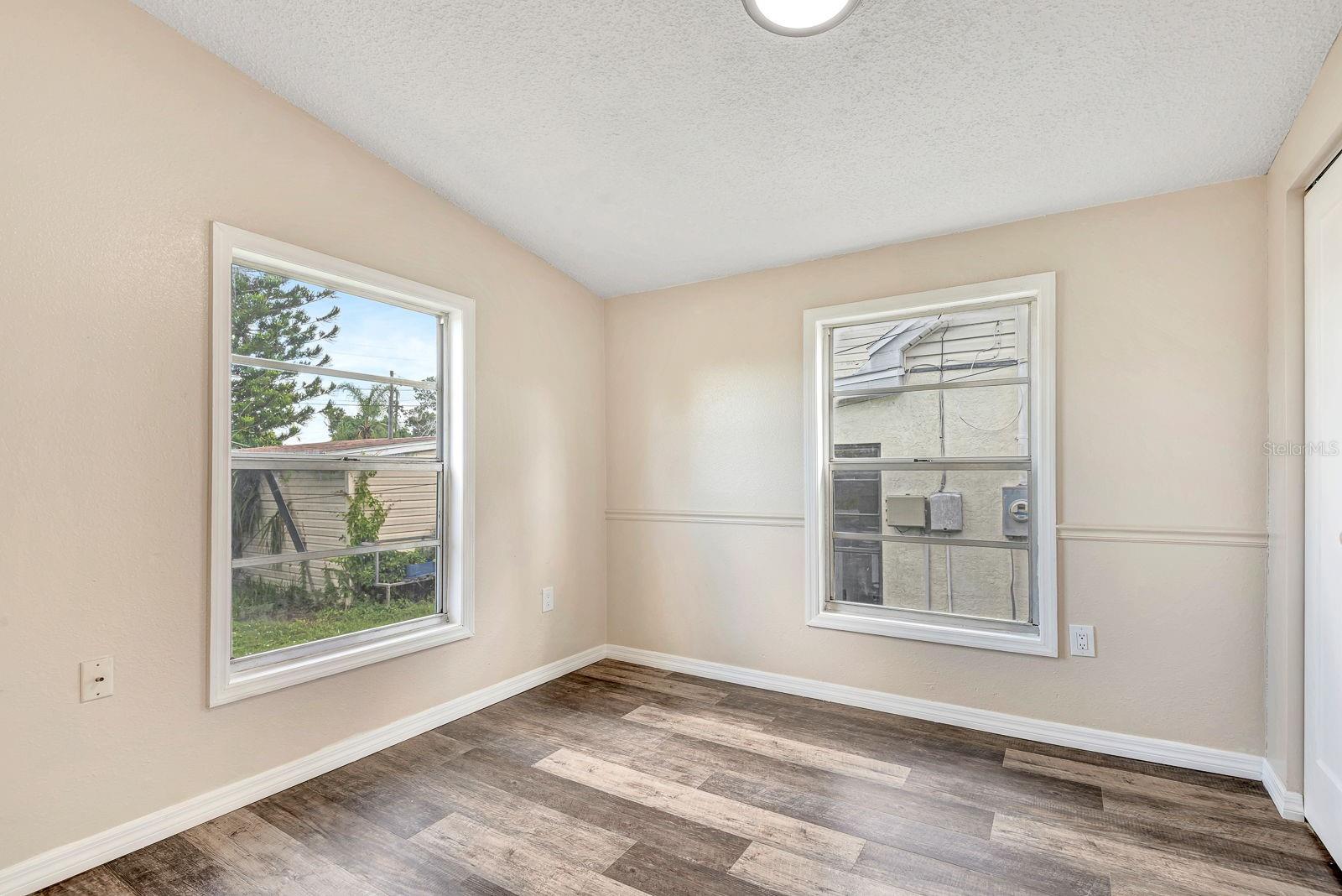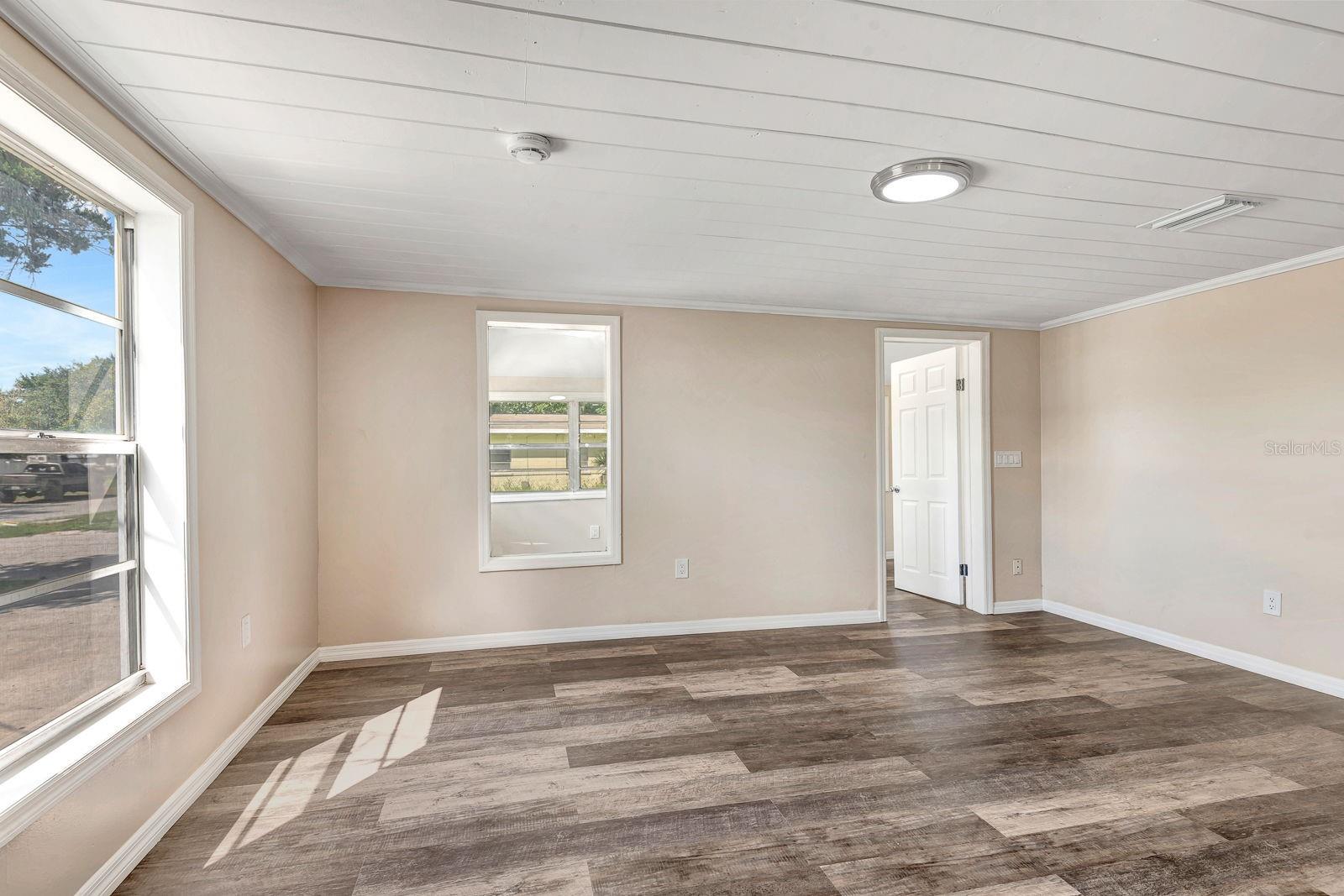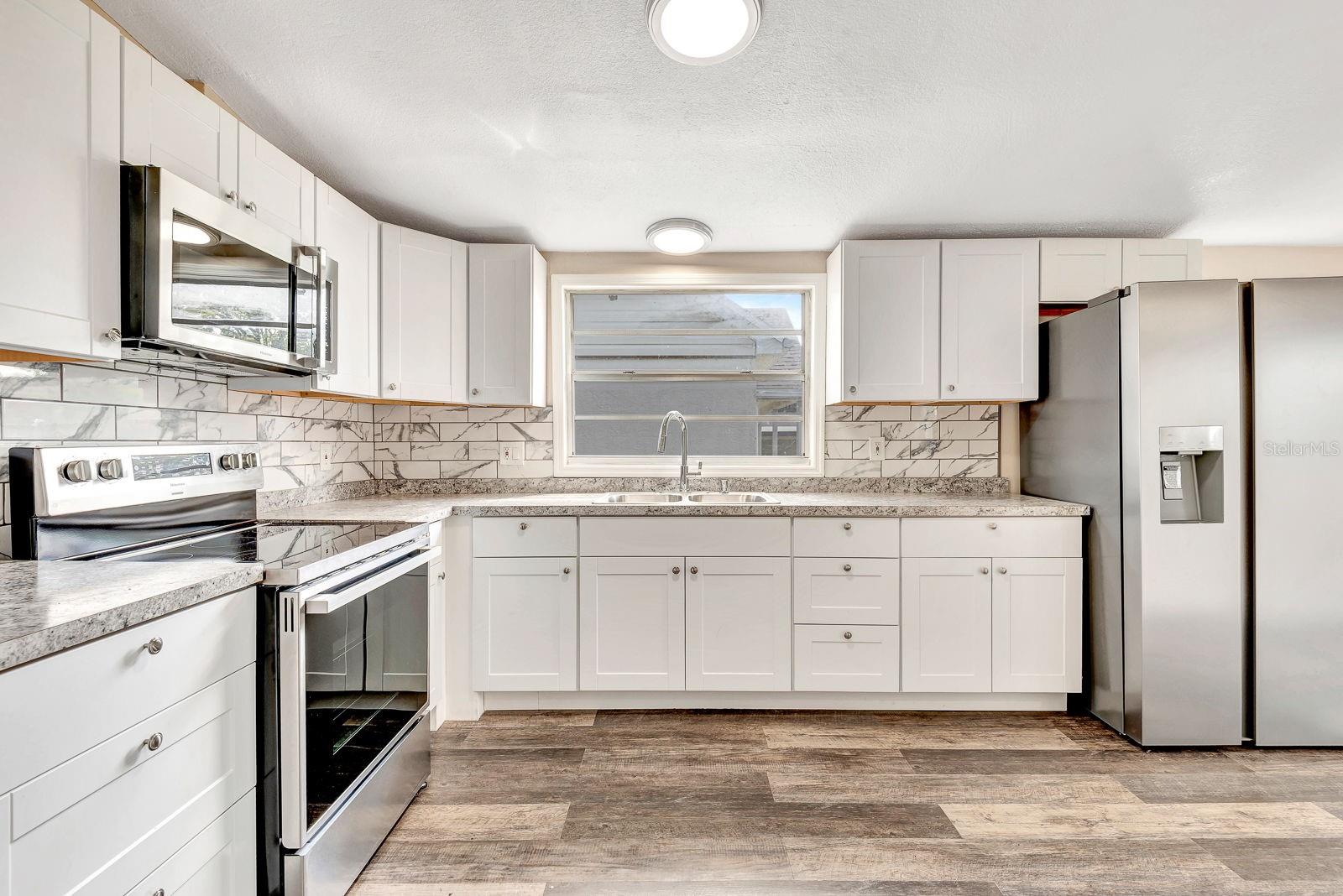 One or more photo(s) has been virtually staged. Modern style meets classic charm in this beautifully updated Palmetto home. Step onto the welcoming covered porch and into a spacious eating area and freshly renovated kitchen with sleek new appliances and a stylish ceramic tile backsplash. Brand-new, easy-care vinyl flooring flows throughout, creating a clean and modern feel. The roomy living room is perfect for relaxing or entertaining, and an enclosed flex area adds extra living space for an office, playroom, or den. Two full bathrooms feature updated tile around generous tubs, while the primary bath includes a large laundry area for added convenience. Outside, enjoy a big yard with plenty of parking and an oversized shed with a new roof—ideal for storage. Need more room inside? Pull-down stairs lead to extra attic storage space. Additional updates include a new water heater and fresh interior AND exterior paint. Close to downtown Palmetto’s shops, dining, and the scenic Manatee Riverfront, this move-in-ready home blends comfort and style, waiting for you to make it your own.