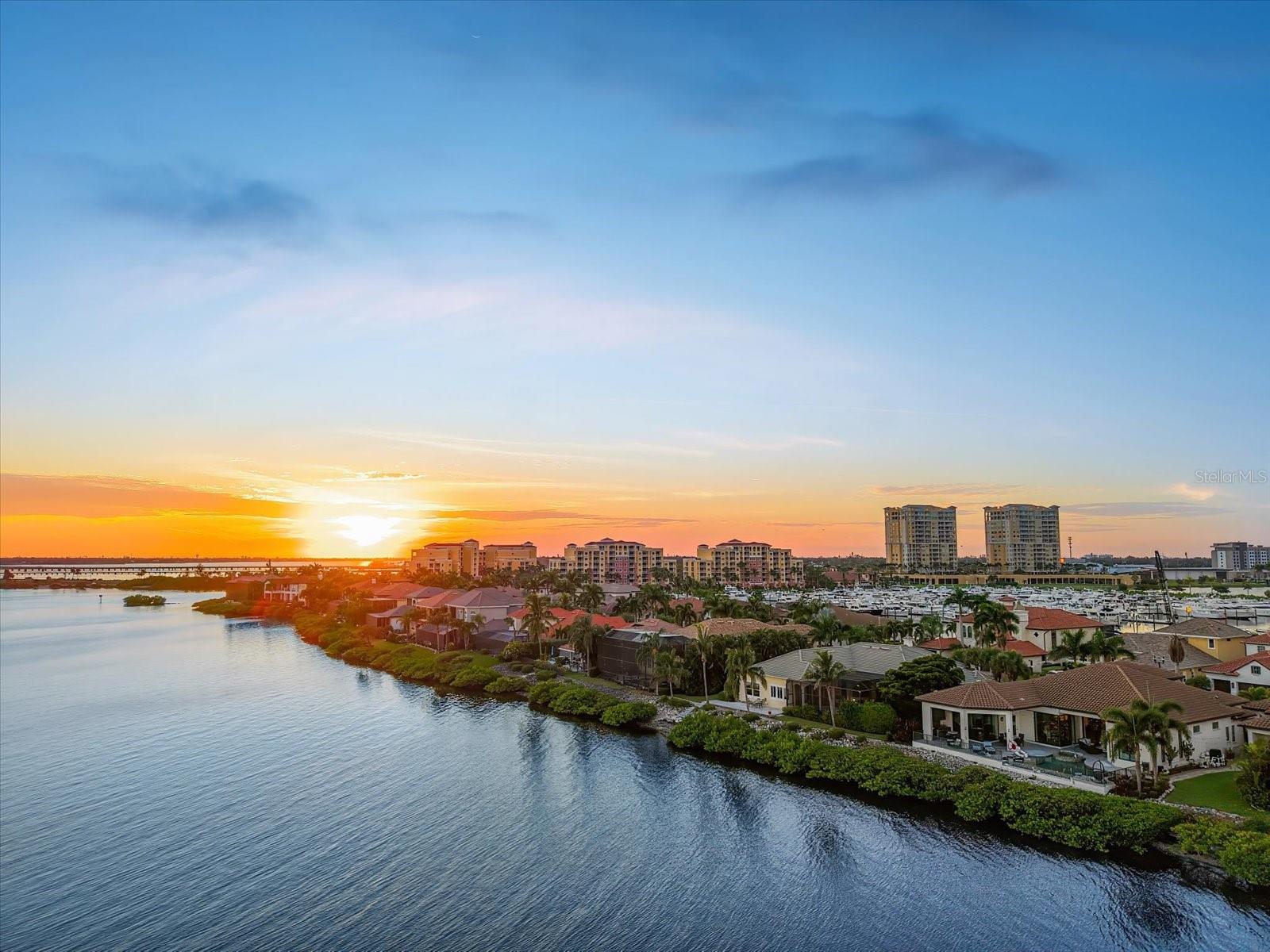 Imagine a picturesque John Canon home nestled within the exclusive gated community of the Island at Riviera Dunes, positioned on a double lot with expansive water frontage on the beautiful Manatee River. This luxurious residence offers breathtaking views that stretch across the horizon, showcasing water views and the beauty of the surrounding landscape. Designed with meticulous attention to detail, the home embodies a blend of elegance and modern comfort. Its architecture is characterized by clean lines, large windows, and spacious outdoor living areas that seamlessly merge with the interior spaces. The exterior features pristine landscaping, enhancing the property's allure and creating a tranquil oasis. Inside, the interior spaces are thoughtfully crafted with high-end finishes and sophisticated décor. From the gourmet kitchen, and the inviting living areas, to the tranquil primary ensuite, every room exudes a sense of luxury and warmth. Floor-to-ceiling windows frame stunning views from almost every room allowing the natural light to illuminate the space throughout the day. One of the most coveted features of this home is its deeded 62-foot boat slip in the neighborhood marina located right across the street from the residence. Not only does this deep-water hurricane shelter basin provide the deepest and most secure harborage in the area, but it also ensures direct access to Tampa Bay, the Intercoastal Waterway and the Gulf of Mexico. This prime location offers endless possible boating adventures for the avid yachter. The outdoor living spaces are designed for relaxation and entertainment, a sparkling pool, hot tub and outdoor kitchen create a fabulous retreat. Southern exposure at the back of the property provides steady warmth and light without the blazing heat of direct morning and afternoon exposure. Watch the sunset and sunrise from the private waterfront patio. Launch paddle boards and kayaks from the private beach or wade in and cast a line from your private beach area. Whether enjoying a quiet evening or hosting gatherings with friends and family, the outdoor areas offer the ideal setting for every occasion. Located within a private gated community, residents of the Island at Riviera Dunes enjoy exclusive amenities and a sense of security, ensuring a peaceful and prestigious lifestyle. With its prime waterfront location, stunning views, and luxurious amenities, this John Cannon home epitomizes waterfront living at its finest, promising a lifestyle of unparalleled beauty and comfort