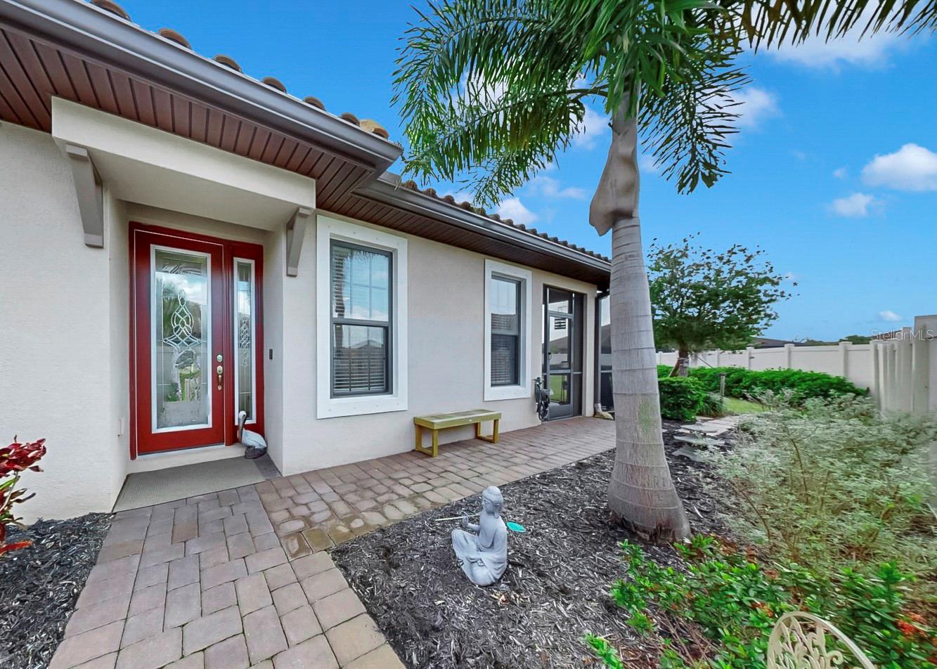 You won’t want to miss this beautifully upgraded Sandpiper Villa in Esplanade at Artisan Lakes, where thoughtful design, elegant finishes, and effortless Florida living come together seamlessly. Priced to sell, this 2-bedroom plus flex room villa offers a desirable split floor plan that provides both privacy and functionality. The versatile flex room is ideal for a home office, den, or a comfortable third sleeping space for visiting guests—making the home perfect for a seasonal getaway or a full-time residence. Custom built-ins in both bedrooms add style and smart storage, while tray ceilings with crown molding and 8’ doors throughout enhance the open, airy feel. A leaded-glass front door creates a warm and welcoming first impression. At the heart of the home, the open kitchen flows naturally into the living area—perfect for everyday living and entertaining alike. A separate dining space offers a more formal setting, while the expansive quartz countertop invites casual meals, conversation, and gatherings. The kitchen is beautifully appointed with stainless steel appliances, a gas cooktop, an upgraded large sink, and thoughtful finishes throughout. Smart lighting and dimmer switches allow you to easily set the mood, whether hosting guests or enjoying a quiet evening at home. Both bedrooms feature private en-suite bathrooms, offering comfort and convenience for owners and guests. The primary suite is a relaxing retreat with a walk-in shower featuring upgraded tile and a frameless glass enclosure. The second bedroom, tucked privately at the back of the home, includes its own en-suite with a large soaking tub—ideal for unwinding. A conveniently located half bath is perfect for visitors, and the adjacent laundry room offers built-in cabinetry and a sink for added functionality. Seamless indoor-outdoor living awaits as triple sliding glass doors open from the living area to the lanai, where you can relax or entertain while enjoying a larger-than-average villa lot with a private, landscaped backyard. A paver walkway with hard-wired lighting extends along the side of the home to the lanai, adding both elegance and easy access—perfect for embracing the Florida lifestyle. Additional highlights include a garage with epoxy flooring and built-in shelving, a tankless water heater, and gutters for added peace of mind. This maintenance-free villa allows you to truly enjoy resort-style living, with the HOA covering cable, internet, roof, and exterior painting—so you can spend more time enjoying your home and less time on upkeep. Esplanade at Artisan Lakes offers resort-style amenities, including two clubhouses with beautifully designed social and activity spaces. Residents enjoy two resort-style pools, a resistance pool, two spas, a state-of-the-art fitness center, movement studio, and outdoor recreation such as tennis, pickleball, bocce ball, and cornhole. Additional highlights include a fire pit, multiple lounging areas, both small and large dog parks, and a playground. A full-time lifestyle manager curates events, clubs, and activities, creating a vibrant community atmosphere. Conveniently located near I-75 and I-275, this home provides easy access to Tampa, St. Petersburg, Bradenton, Sarasota, airports, dining, shopping, golf, and the award-winning Gulf Coast beaches. Beautifully maintained, thoughtfully upgraded, and located in one of the area’s most desirable maintenance-free communities—this home is truly a must-see! *Attached video and 3D tour*