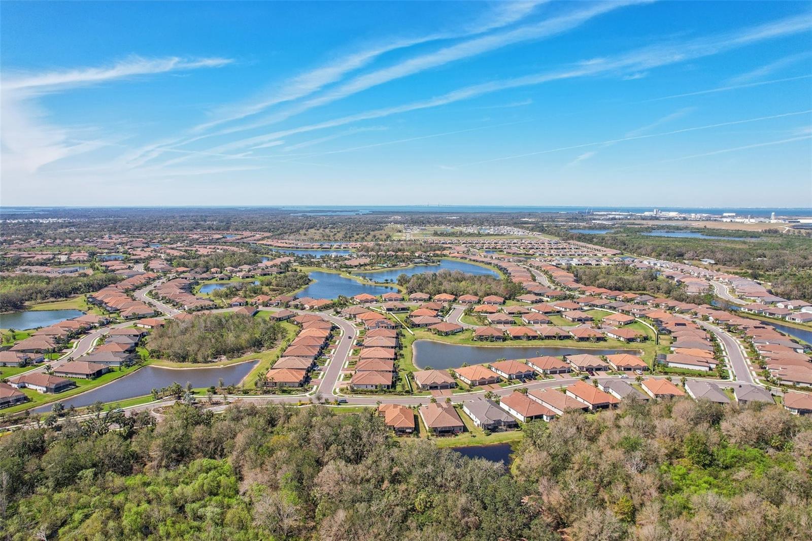 Positioned on one of the most coveted homesites in Esplanade at Artisan Lakes, this exceptional residence at 10802 Seasons Way offers a rare combination of privacy, premium upgrades, and resort-style living. Ideally located near the residents-only gate, the home sits on a tranquil pond-front lot with a lush, mature conservation backdrop—delivering serene views and enhanced privacy that are increasingly hard to find. This meticulously maintained 3-bedroom, 2.5-bath home with a private office/den and a true three-car garage is designed for both everyday comfort and elevated entertaining. Inside, the light-filled open floor plan is enhanced by crown molding, ceiling fans, surround sound, and expansive windows, including a large triple sliding glass door that seamlessly connects indoor and outdoor living. The gourmet kitchen is a standout feature, showcasing quartz countertops, premium stainless steel appliances, a spacious center island with breakfast bar seating, and a walk-in pantry—perfect for hosting and daily living alike. Step outside to your oversized covered lanai, where a fully equipped outdoor kitchen and fire pit create the ultimate entertaining environment, all overlooking peaceful water views and a protected conservation area. The luxurious primary suite serves as a private retreat with bay windows, dual vanities, a walk-in shower, and a generously sized walk-in closet. A den with French doors offers flexibility for a home office, media room, or quiet lounge. Notable upgrades include a whole-house emergency generator, central vacuum system, water softener, security cameras, upgraded rain gutters, enhanced landscaping, epoxy garage floors, built-in garage storage and work area, and both indoor and outdoor audio systems—ensuring peace of mind and effortless living. HOA fees include internet and cable TV, ground maintenance, and access to exceptional community amenities. Residents of Esplanade at Artisan Lakes enjoy a luxury clubhouse, resort-style pool, fitness center, spa, tennis and pickleball courts, scenic walking trails, and a dog park. Conveniently located near I-75 and I-275, this home offers easy access to Tampa, St. Petersburg, Sarasota, and Florida’s Gulf Coast beaches. Move-in ready and rich in upgrades, this home represents a rare opportunity to own a premium lot and luxury lifestyle in one of Palmetto’s most desirable communities. Schedule your private showing today and experience the elevated Esplanade lifestyle for yourself.