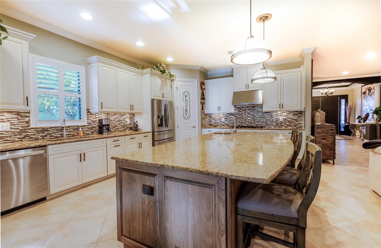 Florida Living at Its Finest: A Pallazio Estate That Redefines Luxury! Ever imagined a home where resort-style amenities, cutting-edge systems, and stunning design come together flawlessly? This Pallazio estate by Taylor Morrison, privately situated on a cul-de-sac with an oversized homesite in Artisan Lakes Esplanade, delivers exactly that- and more. Inside, every detail has been thoughtfully curated. Coffered and tray ceilings with accent beams, crown molding, plantation shutters, and custom closets throughout create a timeless, modern aesthetic. The renovated kitchen (2025) boasts refined cabinetry, premium finishes, and a clean palette, perfect for elegant entertaining or everyday living. Custom office cabinets, installed fans, and a whole-home sound system ensure comfort, convenience, and style throughout. State-of-the-art systems keep you secure and comfortable year-round: ADT security and cameras, whole-house generator, 5-ton 19 SEER Rheem heat pump A/C (2025), hurricane-impact windows, hurricane screens in the lanai, whole-house water softener, and a pest defense system. Every upgrade has been intentionally selected to support peace of mind and effortless living. The 2-car garage featuring tandem parking is a showpiece with epoxy flooring, 44' of racking- perfect for luxury vehicles, storage, or a personal workspace. Step outside to your private Florida retreat. The Pebble Tec pool with a heat pump, cedar wood lanai ceiling, and professionally installed landscape and pool cage lighting set the stage for breathtaking evenings. Entertain in the high-end summer kitchen with premium appliances and custom cabinetry, or enjoy the installed outdoor speakers while soaking in your resort-style oasis. Every element of this outdoor space- from lighting to finishes- was carefully crafted for entertainment, relaxation, and style. Additional premium upgrades include: accent beams in the main living area and primary bedroom, plantation shutters, custom closets, interior and exterior painting (2022), installed gutters, new interior light fixtures, whole-house generator, and more- ensuring this home is truly turnkey. Living in Artisan Lakes Esplanade means enjoying two private clubhouses, resort-style pools and spas, a fitness center, pickleball courts, scenic walking trails, and a vibrant social calendar, all just minutes from Gulf Coast beaches, dining, and travel corridors. This is more than a home- it's a statement of refined living, privacy, and elevated lifestyle. Every corner, every upgrade, and every detail has been intentionally designed to deliver a home that wows- inside and out. Welcome to your ultimate Florida retreat.