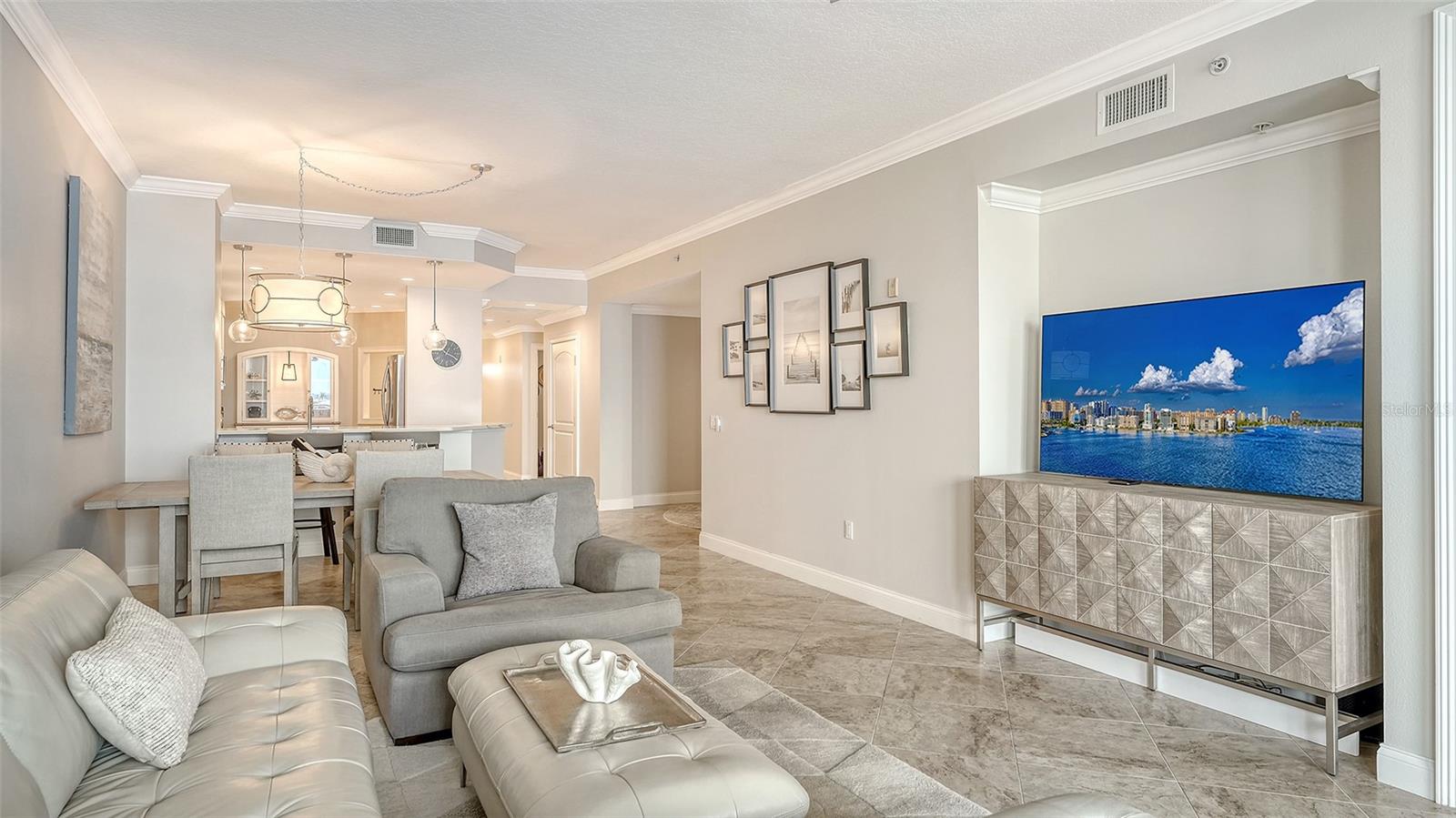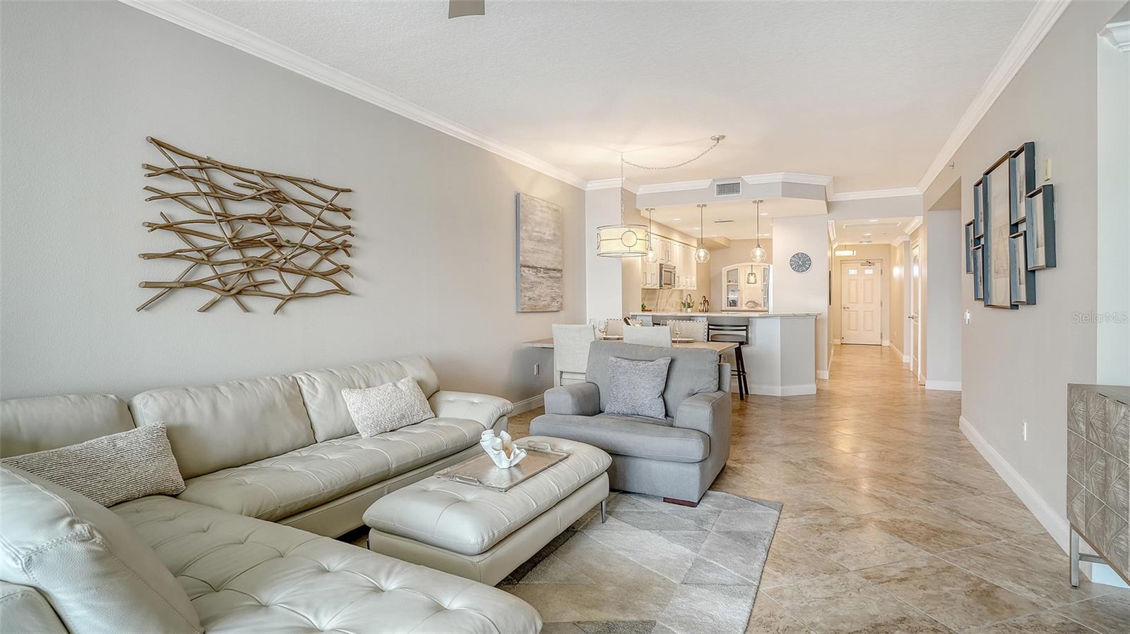 Discover a blend of coastal charm and modern sophistication in this stunning, FULLY-FURNISHED, third-floor residence at Laguna in Riviera Dunes. This 2-bedroom, 2-bath condo with a spacious den offers 1,758 square feet of thoughtfully designed living space, all set against the backdrop of captivating marina views. Every glance out the window reveals a picture-perfect scene, framed by IMPACT RATED WINDOWS AND DOORS that provide both beauty and peace of mind. The split floor plan ensures privacy and functionality, creating a natural flow between the serene primary suite and the inviting guest quarters. At the heart of the home, a beautifully REMODELED KITCHEN gleams with QUARTZ COUNTERTOPS, STAINLESS STEEL APPLIANCES, and custom touches that make it as practical as it is stylish. With an eat-in kitchen nook, a dedicated dining room, and a casual bar seating area, you’ll enjoy versatile spaces perfect for entertaining or relaxing with morning coffee and evening wine. The open-concept layout is enhanced by high ceilings and abundant natural light, creating an airy, uplifting atmosphere throughout. A private laundry room adds everyday convenience, while a NEW ROOF (2025) NEW HVAC (2022) and NEW HOT WATER TANK (2024) ensure year-round comfort. The spacious den equipped with a MURPHY BED offers flexible living options—ideal for a home office, media room, or third bedroom. One covered parking space (under building) is included for your convenience. Best of all, this residence is being offered fully furnished, making it effortlessly move-in ready. Whether you’re seeking a full-time residence or a luxurious seasonal escape, this condo captures the essence of waterfront living in one of the Gulf Coast’s most desirable communities. Laguna is a premier waterfront condominium community ideally situated within Riviera Dunes, one of Florida’s finest DEEP-WATER MARINAS, making it a perfect choice for boating enthusiasts. Nestled along the scenic Manatee River, this exclusive enclave offers a rare combination of luxury, serenity, and convenience. Residents enjoy breathtaking views of the river, marina, and stunning Gulf Coast sunsets from the comfort of their private balconies. The community itself is gated and secure, with amenities that include a resort-style heated pool and spa, fitness center, tennis courts, and a clubhouse for social gatherings and events. Adding to the appeal is the on-site waterfront restaurant, Dockside Social Bar + Kitchen. This stylish dining destination offers a relaxed yet vibrant atmosphere with indoor and outdoor seating, live music, and a diverse menu offering something for everyone. In addition to its boating and dining attractions, Laguna’s location provides easy access to downtown Bradenton, Sarasota, and St. Petersburg, offering a rich mix of dining, shopping, cultural attractions, and entertainment. This is more than just a home—it’s a lifestyle. Come experience the elegance, ease, and coastal beauty that await you at Laguna in Riviera Dunes.