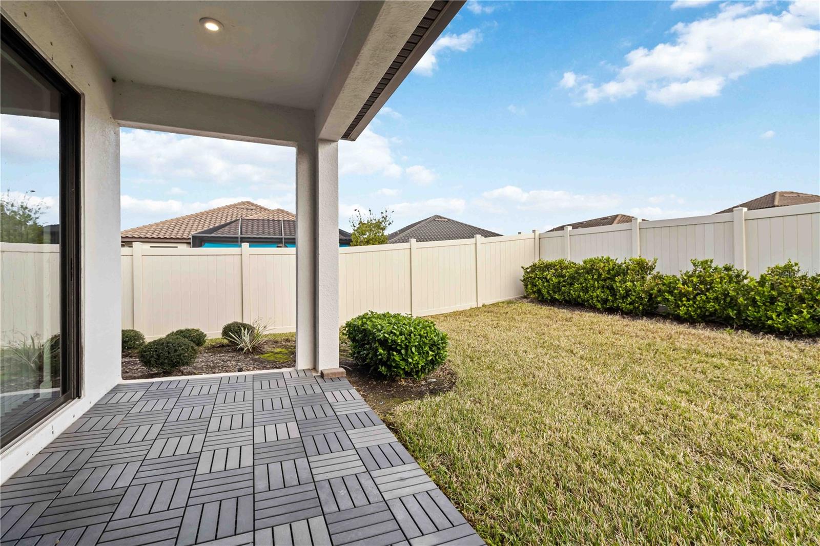 HURRICANE-HARDENED HOME | NO FLOOD ZONE | LOW INSURANCE | MOVE-IN READY. Meticulously maintained and loaded with high-end upgrades, smart technology, and thoughtful enhancements throughout. Located in a desirable community with HOA-covered amenities including roof, exterior paint, yard maintenance, and more &mdash offering low-maintenance ownership and exceptional value. The gourmet kitchen features double ovens, six full-size burners with cast-iron grill and griddle plates, oversized smart refrigerator/freezer with hot and cold water and ice, pull-out heavy-duty drawers, pull-out trash cabinet, filtered water spout, and updated microwave/convection oven. Solid wood shelving in all closets and pantry. Spacious laundry room with built-in cabinetry and countertop. Remote-controlled ceiling fans in every room including the lanai. Smart heavy-duty washer and dryer included. Bonus room with French doors ideal for office, flex space, or easily converted to a third bedroom. All showers feature glass doors for a clean modern finish. Whole-home air purification system integrated into the AC with UV light, plus whole-home water purification system. Smart appliances throughout and wooden shades. Exterior upgrades include sealed driveway and garage floor, full gutter system, screened entry door, and floored lanai. Garage offers built-in shelving, hidden overhead storage, bike holders, and smart keypad garage door opener. Safety features include professionally wired alarm system with window and door sensors, wired indoor and outdoor security cameras (no batteries), panic alarm in secondary bedroom, connected fire alarm system, and upgraded hurricane protection contributing to lower insurance premiums. Truly turnkey and ready for immediate occupancy.
