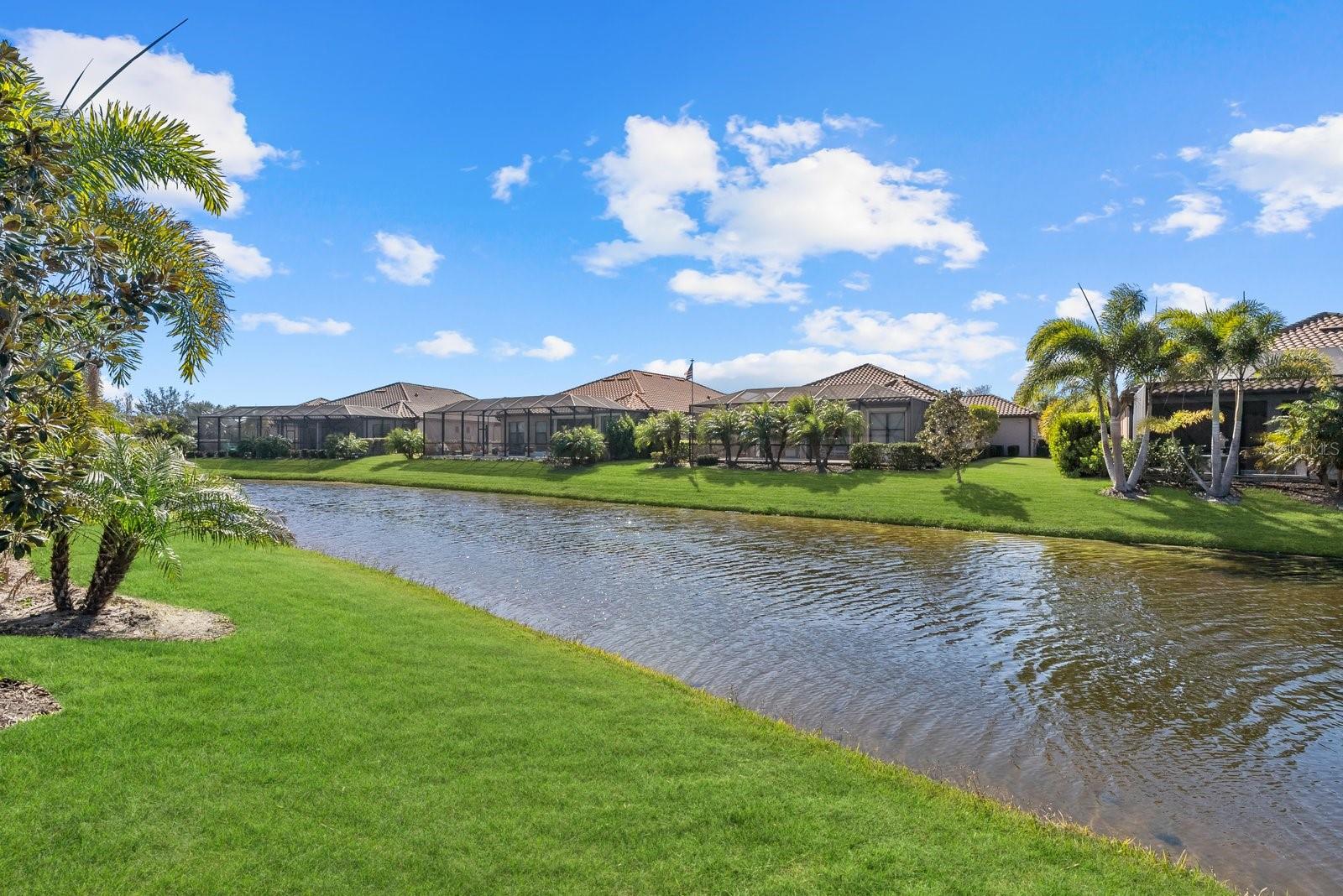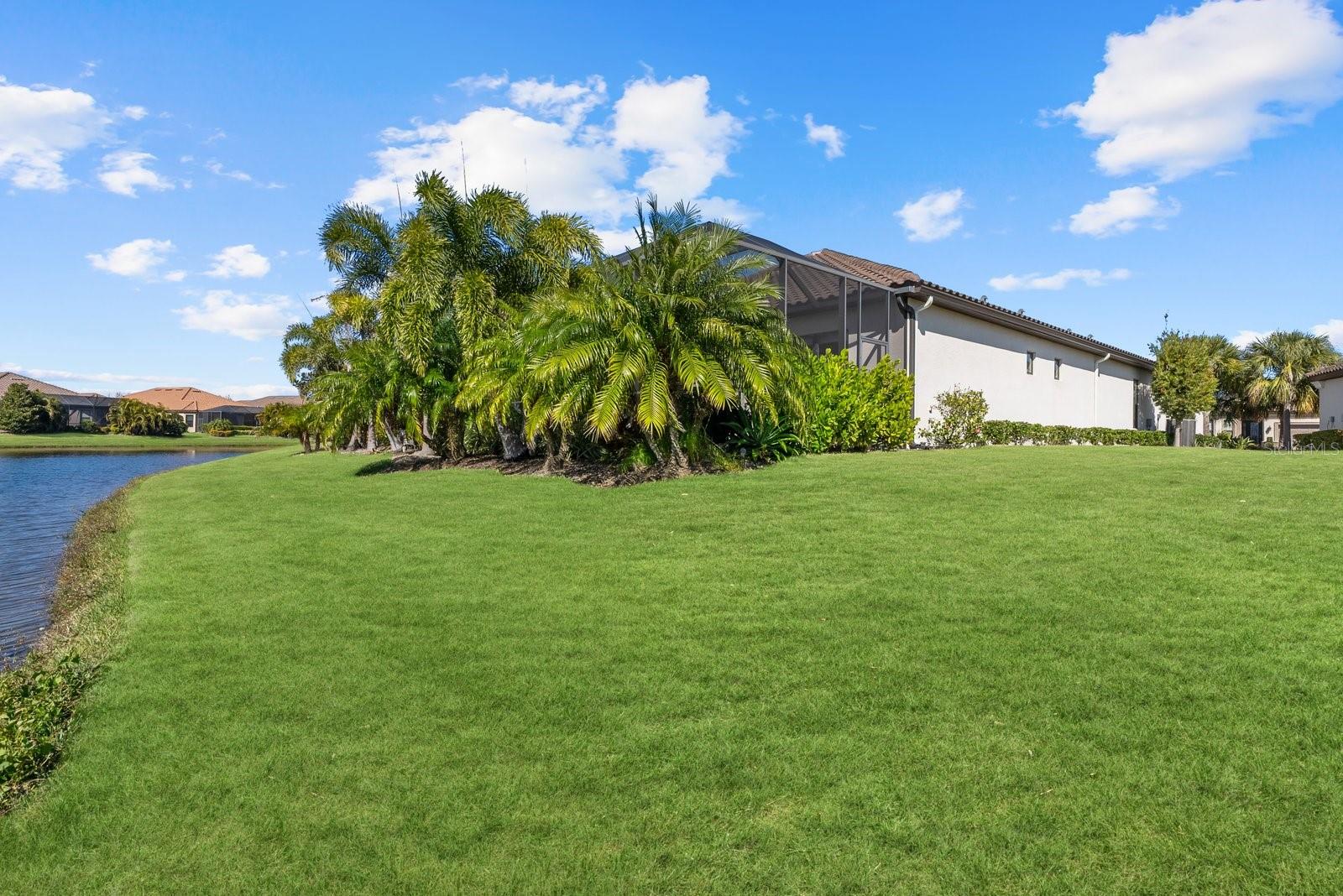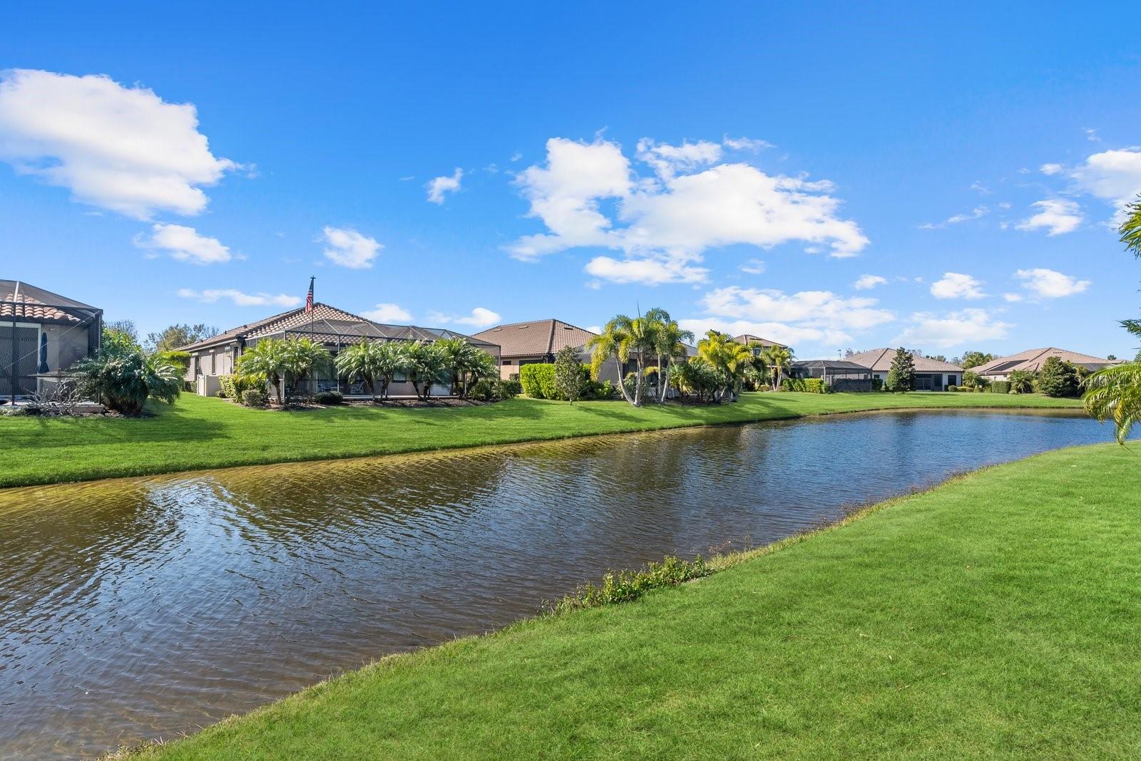 This is not your average builder home. A whole lot of upgrades and model-worthy finishes await you. From the moment you arrive, the expanded paver driveway, professional landscaping/lighting, and striking glass-insert front door signal that every detail of this Pallazio floor plan has been thoughtfully curated — and the interior delivers on that promise in every room. Set within the sought-after, gated community of Esplanade at Artisan Lakes in the heart of Parrish's rapidly growing corridor, this home sits at an elevation of 33 feet — meaning no flood insurance required — on a generous, private .24-acre pie-shaped lot with tranquil pond views. This street is also less frequented due to the cul-de-sac. Step inside and you're greeted by designer lighting, marble tile accent walls, and custom mirrored dining space. The kitchen is loaded with storage and its extra large island is the centerpiece for entertaining. The main living area is equipped with professional 7.0 surround sound system, motorized shades flow seamlessly across the great room and kitchen, and ceiling fans and TVs are installed throughout — nothing was left as an afterthought. The attention to detail continues throughout the home with an instant hot water system, reverse osmosis water filtration, and full cabinetry in the laundry room. The secondary bathroom has been recently upgraded well beyond standard finishes, and hurricane-impact glass windows and doors throughout provide peace of mind. The primary suite and bathroom provides spacious relaxation along with views of the pool and palm trees. Out back, the space is nothing short of a private retreat. A 625 sq. ft covered lanai extends your living space outdoors, where a heated saltwater pool with autofill system and a fully equipped outdoor kitchen await — all framed by peaceful pond views, lush tropical landscaping and the generous privacy that a pie-shaped lot affords. Whether you're entertaining or simply unwinding, this space was built for both. Even the garage received the upgrade treatment — epoxy-coated floors, extended garage length, two overhead storage racks, and a 50-amp generator plug make it one of the most functional in the neighborhood. A recent Wind Mitigation Report is also available, offering potential savings on homeowner's insurance. Beyond the home itself, Esplanade delivers a true resort lifestyle with maintenance-free living, two amenity centers, three pools, eight pickleball courts, four tennis courts, and a vibrant social calendar. All of this in one of Florida's fastest-growing communities, with new hospitals, expanding dining and retail, and easy access to I-75, I-275, and US-41 — putting St. Petersburg, Tampa, Sarasota, and the Gulf Coast beaches well within reach. Furniture and rugs available separately — potential turnkey opportunity.