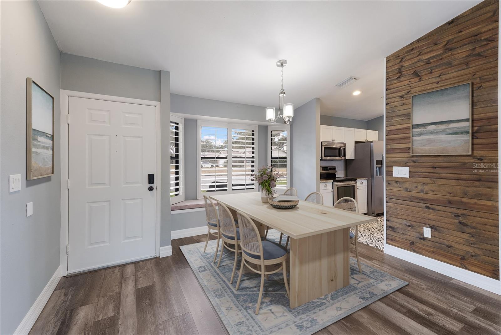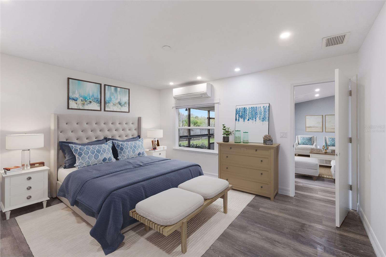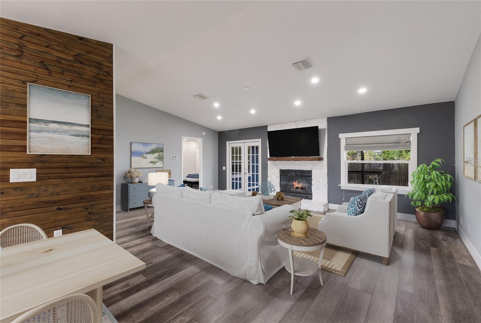 Welcome to this beautifully updated 3-bedroom, 2-bathroom home with a two-car garage in the well-established and quiet community of Villages of Thousand Oaks. Offering a functional split-bedroom floor plan and thoughtful upgrades throughout, this home is truly move-in ready and designed for both everyday living and entertaining. The spacious great room showcases an upgraded kitchen featuring white shaker-style cabinetry, stainless steel appliances, granite countertops, and a breakfast bar with additional seating. Vaulted ceilings and luxury vinyl plank flooring enhance the open living and dining areas, while a charming wood-burning fireplace adds warmth and character. The interior has been recently freshly painted, creating a clean and inviting feel throughout. The primary suite is a true retreat, complete with a walk-in closet, updated vanity, walk-in glass-enclosed shower, and a dedicated mini-split A/C system—ideal for those who prefer a cooler sleeping environment year-round. Two guest bedrooms are privately situated on the opposite side of the home and share an updated second bathroom. Step outside to your ultra-private backyard oasis featuring a large covered porch, open paver-brick patio, and a fully fenced yard with no rear neighbors—perfect for relaxing or entertaining. Gutters have been installed around the entire home for added protection and functionality. The two-car garage is a standout feature, complete with built-in storage, a workbench, and its own mini-split A/C system—creating a comfortable, climate-controlled space ideal for hobbies, projects, or additional workspace. Additional upgrades provide long-term peace of mind, including attic rafters treated to help prevent termites for the life of the wood and blown-in insulation throughout the entire home—including the garage and interior walls—for improved energy efficiency and comfort. Residents of Villages of Thousand Oaks enjoy access to a community clubhouse, pool, and tennis courts. Conveniently located in the heart of the Palmetto/Parrish/Ellenton area, you’ll be just minutes from parks, playgrounds, new shopping, dining, and everyday conveniences. This home offers the perfect combination of upgrades, privacy, efficiency, and location.