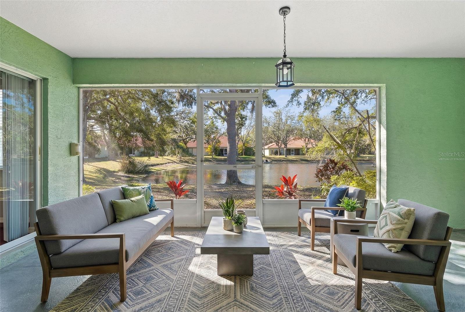 One or more photo(s) has been virtually staged. Tucked inside the quiet community of The Palms of Manatee, this beautifully redesigned end-unit villa welcomes you with abundant natural light, thoughtful upgrades, and true pride of ownership. The flexible floor plan offers 2 BEDROOMS plus a BONUS DEN/FLEX ROOM is perfect for a home office, reading retreat, or guest space. The primary suite features a custom built-in cabinet wall, providing generous and beautifully integrated storage. The sunshine fills the open living spaces, creating a warm and inviting atmosphere. The heart of the home is the exceptional custom chef’s kitchen — featuring an impressive 87 cabinets and drawers, offering storage rarely found in a villa. Designed for both serious cooking and effortless entertaining, it includes a KitchenAid warming drawers, SubZero cooling drawers, convection oven, and high-end dishwasher. Every detail was selected with both function and quality in mind. Step outside to the screened and covered patio overlooking a peaceful pond — an ideal spot for morning coffee, quiet evenings, or simply enjoying the tranquil water view year-round. Stained concrete floors add character and durability, with carpet currently installed in select rooms for comfort (and easily removable if a buyer prefers the concrete finish throughout). The hot water heater was replaced in 2022. This specific HOA includes just 18 units. The Low monthly fee of $386 covers cable, grounds maintenance, roof maintenance and replacement, exterior paint and maintenance, building insurance, reserves, and scheduled power washing of driveways and homes — providing true low-maintenance living. Owners also have the option to join an additional HOA for access to the community pool. Conveniently located with easy access to the Sunshine Skyway Bridge, Bradenton, and Palmetto, yet peacefully positioned within a small, quiet neighborhood. For the buyer who loves to cook, host, or simplify life without sacrificing quality — this villa offers comfort, charm, and thoughtful design in all the right places.