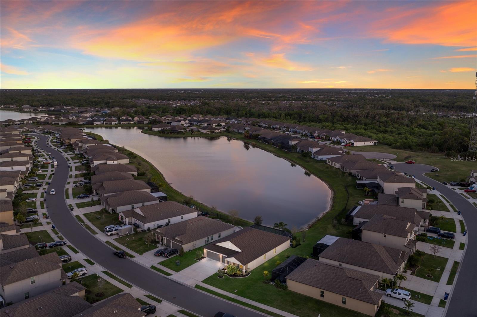 Imagine ending your day with the glow of the sunset reflecting off the lake while the pool water gently ripples beside you. That everyday moment becomes reality in this beautifully maintained home in Trevesta. This charming four-bedroom, three-bathroom pool home with a three-car garage sits on a peaceful lake, offering tranquil water views and a setting that feels both private and relaxing. From the moment you arrive, the beautiful curb appeal sets the tone for what awaits inside—a home that has been lovingly cared for and gently lived in, with pride of ownership evident throughout. Inside, the spacious floor plan is centered around a bright open-concept kitchen, living, and dining area, creating the perfect layout for everyday living and effortless entertaining. The kitchen is the heart of the home, featuring an oversized granite island with breakfast bar seating, stainless steel appliances, classic subway tile backsplash, and rich wood cabinetry accented with dark hardware blending warmth with modern style. The spacious primary suite offers a peaceful retreat with an en-suite bathroom that includes a large walk-in shower, dual sinks with granite counters, and generous space to unwind at the end of the day. Step outside to experience the best of Florida living. The private pool with a paver pool deck overlooks the tranquil pond, creating the perfect backdrop for morning coffee, weekend gatherings, or quiet evenings enjoying the view. Located in the sought-after community of Trevesta, residents enjoy a wonderful amenity center with a clubhouse, fitness center, resort-style pool, and playground, offering something for everyone. Ideally situated with easy access to shopping and dining and convenient commuting via I-75, US-301, US-41, and I-275, the home is also located within A-rated school zones—making it an exceptional choice for both lifestyle and location. Warm, welcoming, and impeccably maintained, this home offers the perfect combination of space, comfort, and lifestyle in one of Palmetto’s most desirable communities.
