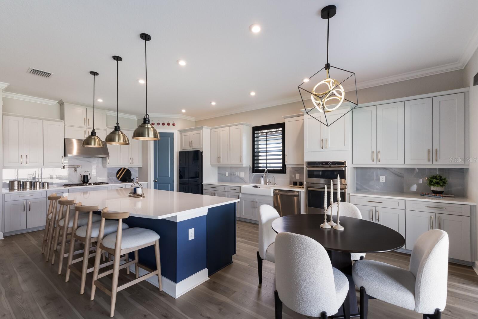 Welcome to 5510 Panella Court, an exceptional residence in the highly desirable Esplanade at Artisan Lakes community in Palmetto. Built in 2022 by Taylor Morrison, this stunning Pallazio floor plan offers nearly 3,000 square feet of beautifully designed living space with 3 bedrooms, 3 full bathrooms, and a spacious 3-car tandem garage. Perfectly positioned on an oversized preserve-view homesite at the end of a quiet cul-de-sac street with only eight homes, this property offers rare privacy and tranquil nature views. Inside, the home showcases over $175,000 in premium upgrades and thoughtful custom finishes throughout. Elegant features include crown molding, designer Sherwin-Williams paint, upgraded flooring, plantation shutters, electric shades, custom lighting, and designer ceiling fans. The open-concept layout creates a seamless flow between the gathering room, dining space, and gourmet kitchen—ideal for entertaining and everyday living. The chef’s kitchen is the heart of the home, featuring upgraded cabinetry, a large center island, Italian porcelain tile backsplash, pot filler, walk-in pantry, and high-end appliances. The spacious owner’s suite is a private retreat with double-door entry, a custom walk-in closet system, and a luxurious ensuite bath with dual vanities and a large walk-in shower. Two additional guest bedrooms provide comfort and privacy, including one with its own en-suite bath—perfect for visitors or multi-generational living. Additional upgrades include a whole-house central vacuum system, indoor/outdoor surround sound, water softener, extended paver driveway, 4-foot aluminum fencing, and a new recently added outdoor kitchen. The three-car tandem garage offers epoxy flooring and ample storage space. Residents of Esplanade at Artisan Lakes enjoy resort-style amenities including a clubhouse, fitness center, resort pool, tennis and pickleball courts, dog park, and beautifully maintained grounds. Conveniently located near Anna Maria Island, Sarasota, St. Petersburg, and Tampa, this home provides easy access to world-class beaches, dining, shopping, and major airports while offering the peaceful lifestyle of a private luxury community. This move-in ready home is the perfect blend of luxury, comfort, and Florida lifestyle.