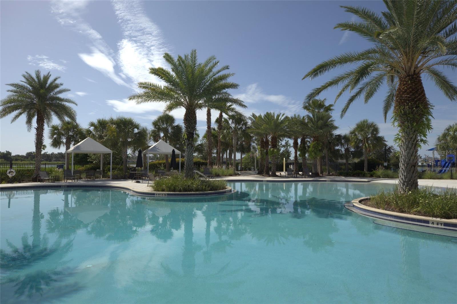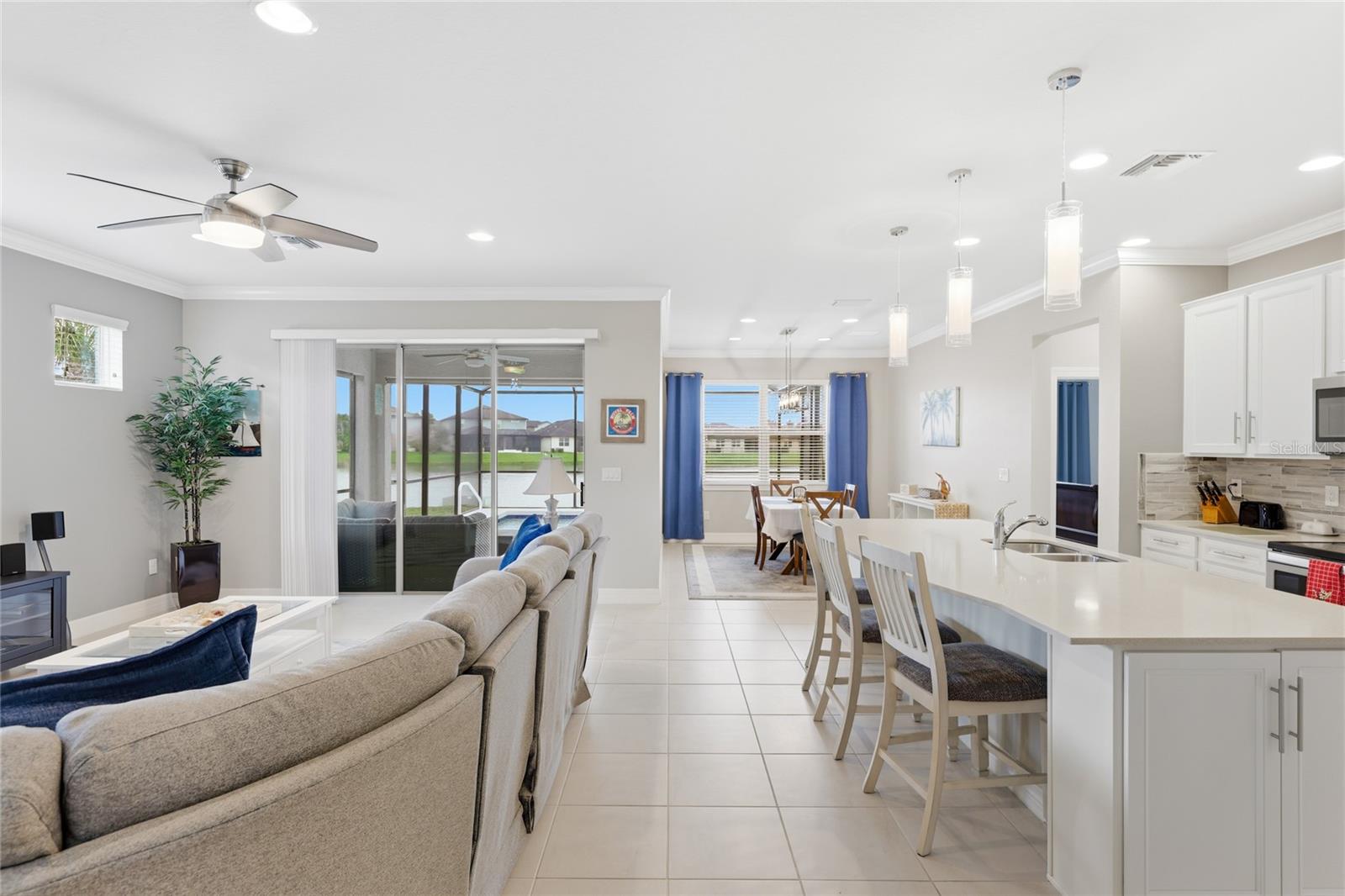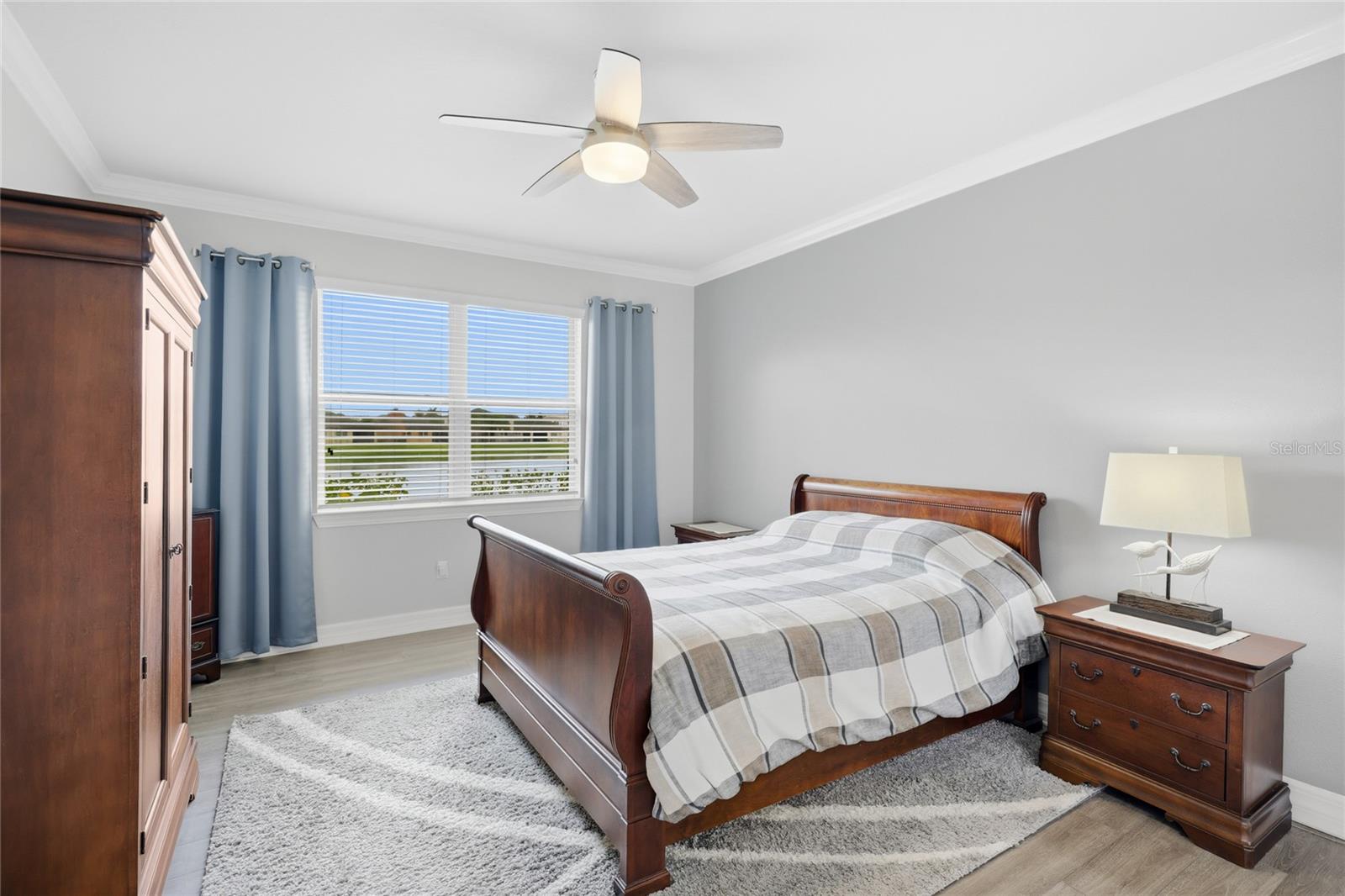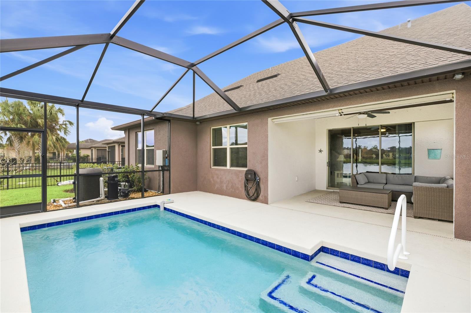 Enjoy what Florida living is all about in this GORGEOUS waterfront 4 bedroom 3 bath pool home showcasing the Summerwood Grand model, the largest floor plan available from Pulte homes, in this sought after Trevesta community! The front entrance features a welcoming covered front patio and custom leaded glass hurricane rated door that make a striking first impression as you enter into a home with amenities that include 9'4" soaring ceilings, elegant crown molding and a combination of larger 17x17 tiles and luxury vinyl plank flooring throughout the main living areas. Quartz countertops, tile backsplash, abundant cabinetry storage space, a walk-in pantry closet and a very charming breakfast nook overlooking the swimming pool can be found in the kitchen. The layout is well designed providing incredible views of the lake and swimming pool from the main living areas and primary bedroom that welcome the outdoors inside. The primary bedroom is very generously sized for your furniture needs and has an oversized walk in closet, a bathroom with dual sinks, grab bars and a step in shower. Wander upstairs and you'll find a large loft/bonus area for additional living space that includes a bedroom and ensuite bathroom that will be perfect for guests or multigenerational living. Outdoors you'll have the pleasure of enjoying a 2022 in-ground heated saltwater pool with an autofill system and a no-see-um mesh screen cage. The covered lanai features roll down shades to escape those warmer Florida afternoons when you're not lounging in your pool. Highlights include two 2026 A/C units, whole house gutters, Smart home system, RING, first level termite treated wood studs to 24 inch height, epoxy coated extended garage with shelving and a workbench area. Extra storage including a mini-frig can be found under the stairs too! The community amenities include a clubhouse on a huge 3 acre center overlooking a beautiful lake with a fitness center, splash pad, stunning resort style swimming pool with beach entry and cabana. Utilities are located underground. Lawn irrigation, bulk internet and basic cable are included with your $480 very reasonable quarterly fees. Social functions are planned by an activities coordinator and abound for all ages with planned events in this age and pet friendly subdivision where new friends are ready to be made. Quick access to I-75 makes it so convenient for your traveling to Tampa, St. Petersburg and Sarasota. This is an unbeatable location you won't want to miss!
