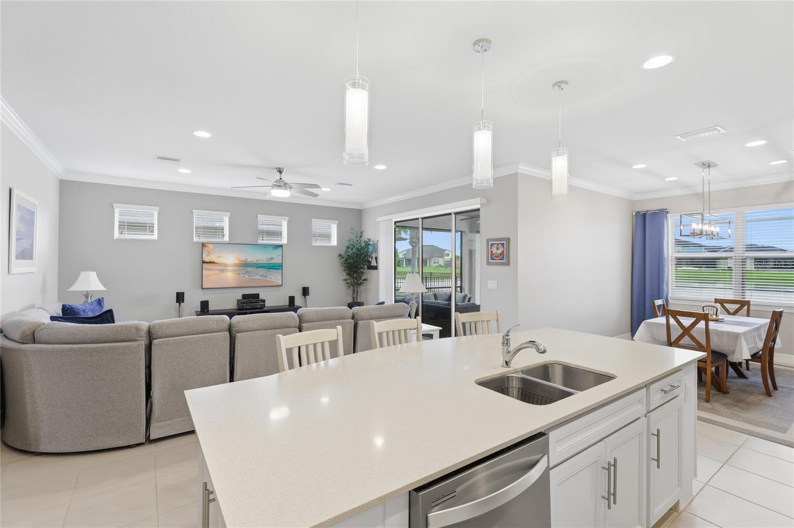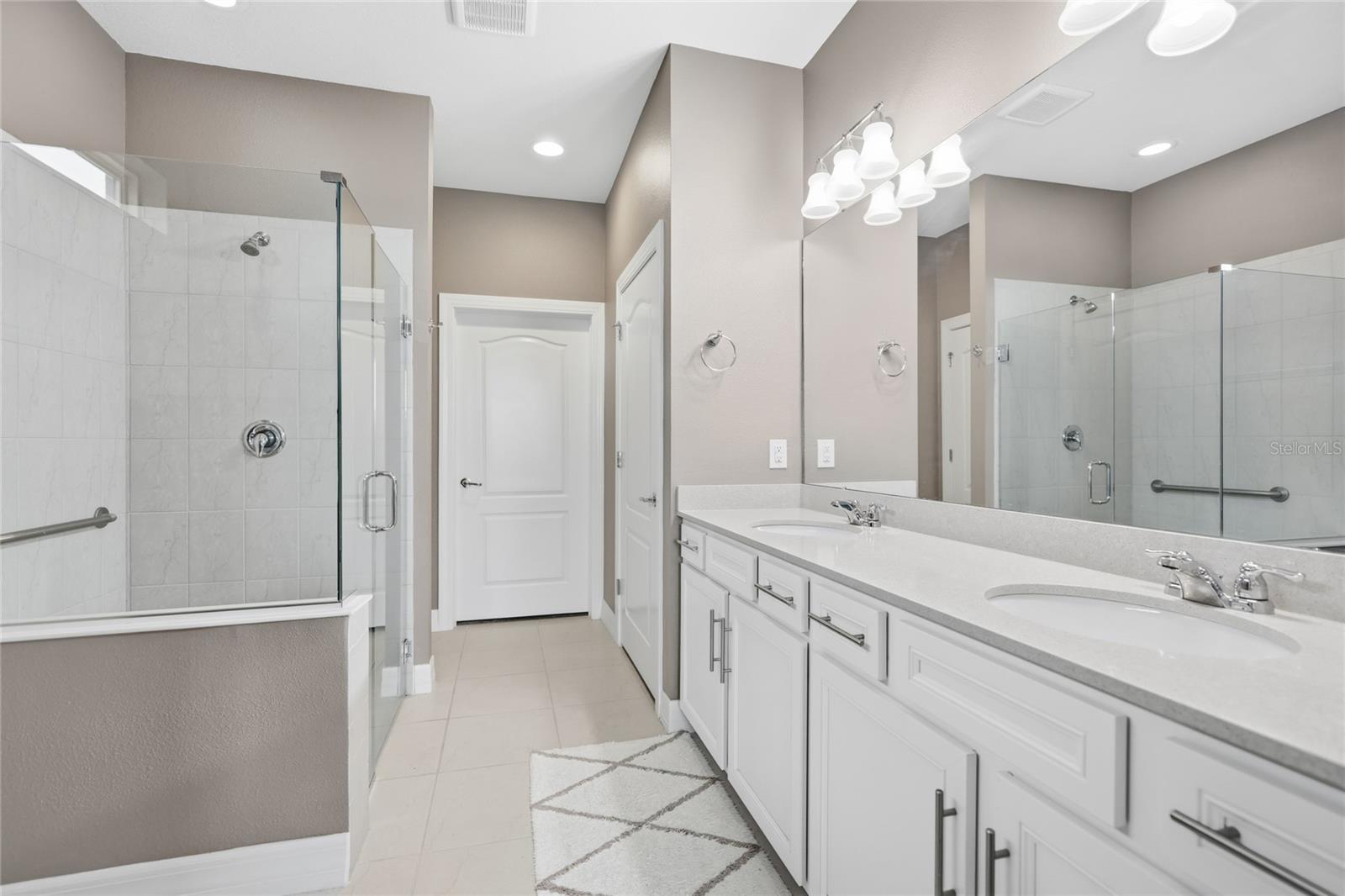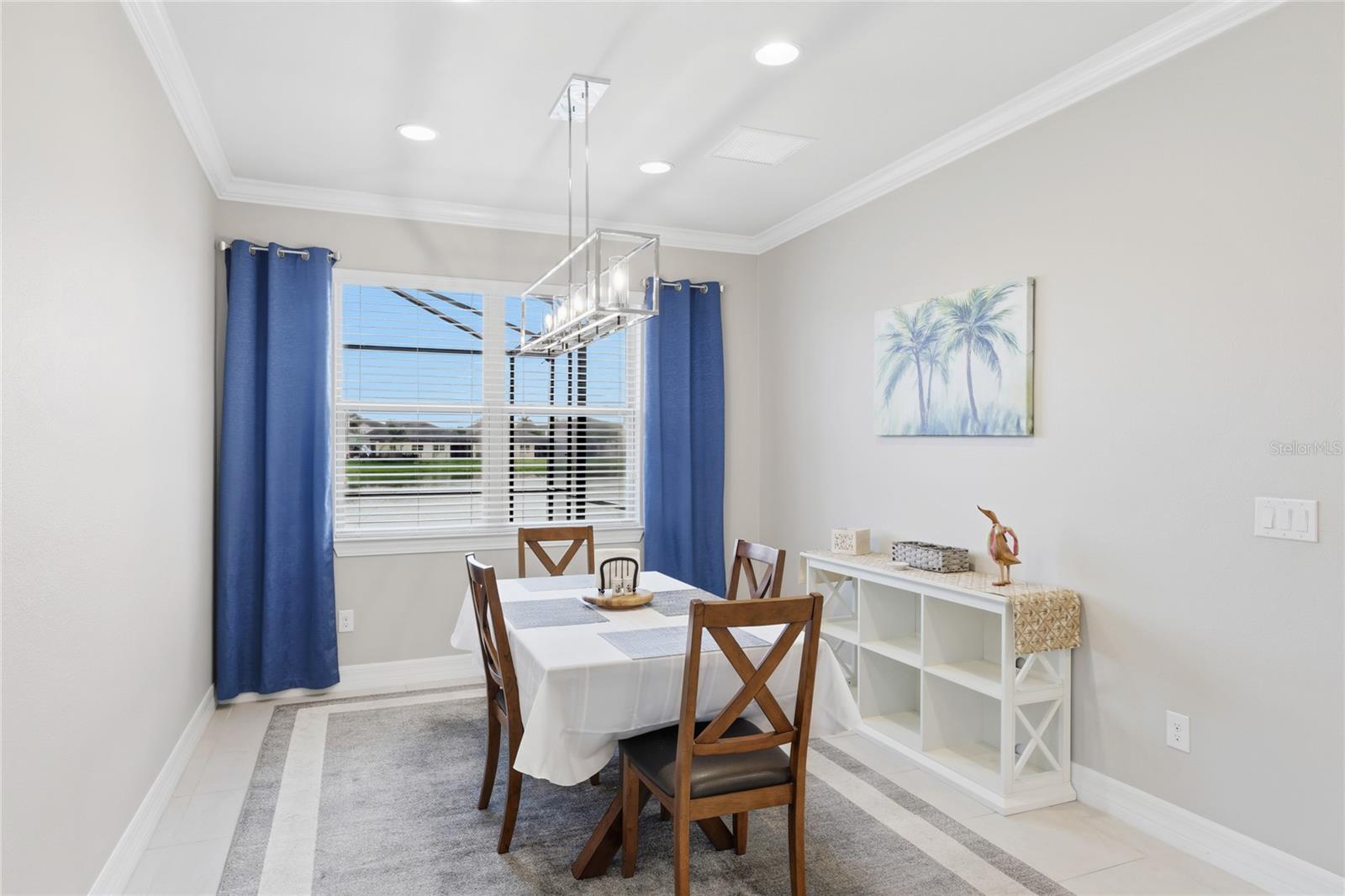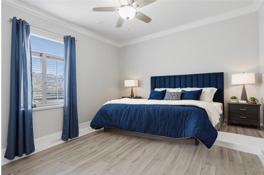 Enjoy what Florida living is all about in this GORGEOUS waterfront 4 bedroom 3 bath pool home showcasing the Summerwood Grand model, the largest floor plan available from Pulte homes, in this sought after Trevesta community! The front entrance features a welcoming covered front patio and custom leaded glass hurricane rated door that make a striking first impression as you enter into a home with amenities that include 9'4" soaring ceilings, elegant crown molding and a combination of larger 17x17 tiles and luxury vinyl plank flooring throughout the main living areas. Quartz countertops, tile backsplash, abundant cabinetry storage space, a walk-in pantry closet and a very charming breakfast nook overlooking the swimming pool can be found in the kitchen. The layout is well designed providing incredible views of the lake and swimming pool from the main living areas and primary bedroom that welcome the outdoors inside. The primary bedroom is very generously sized for your furniture needs and has an oversized walk in closet, a bathroom with dual sinks, grab bars and a step in shower. Wander upstairs and you'll find a large loft/bonus area for additional living space that includes a bedroom and ensuite bathroom that will be perfect for guests or multigenerational living. Outdoors you'll have the pleasure of enjoying a 2022 in-ground heated saltwater pool with an autofill system and a no-see-um mesh screen cage. The covered lanai features roll down shades to escape those warmer Florida afternoons when you're not lounging in your pool. Highlights include two 2026 A/C units, whole house gutters, Smart home system, RING, first level termite treated wood studs to 24 inch height, epoxy coated extended garage with shelving and a workbench area. Extra storage including a mini-frig can be found under the stairs too! The community amenities include a clubhouse on a huge 3 acre center overlooking a beautiful lake with a fitness center, splash pad, stunning resort style swimming pool with beach entry and cabana. Utilities are located underground. Lawn irrigation, bulk internet and basic cable are included with your $480 very reasonable quarterly fees. Social functions are planned by an activities coordinator and abound for all ages with planned events in this age and pet friendly subdivision where new friends are ready to be made. Quick access to I-75 makes it so convenient for your traveling to Tampa, St. Petersburg and Sarasota. This is an unbeatable location you won't want to miss!